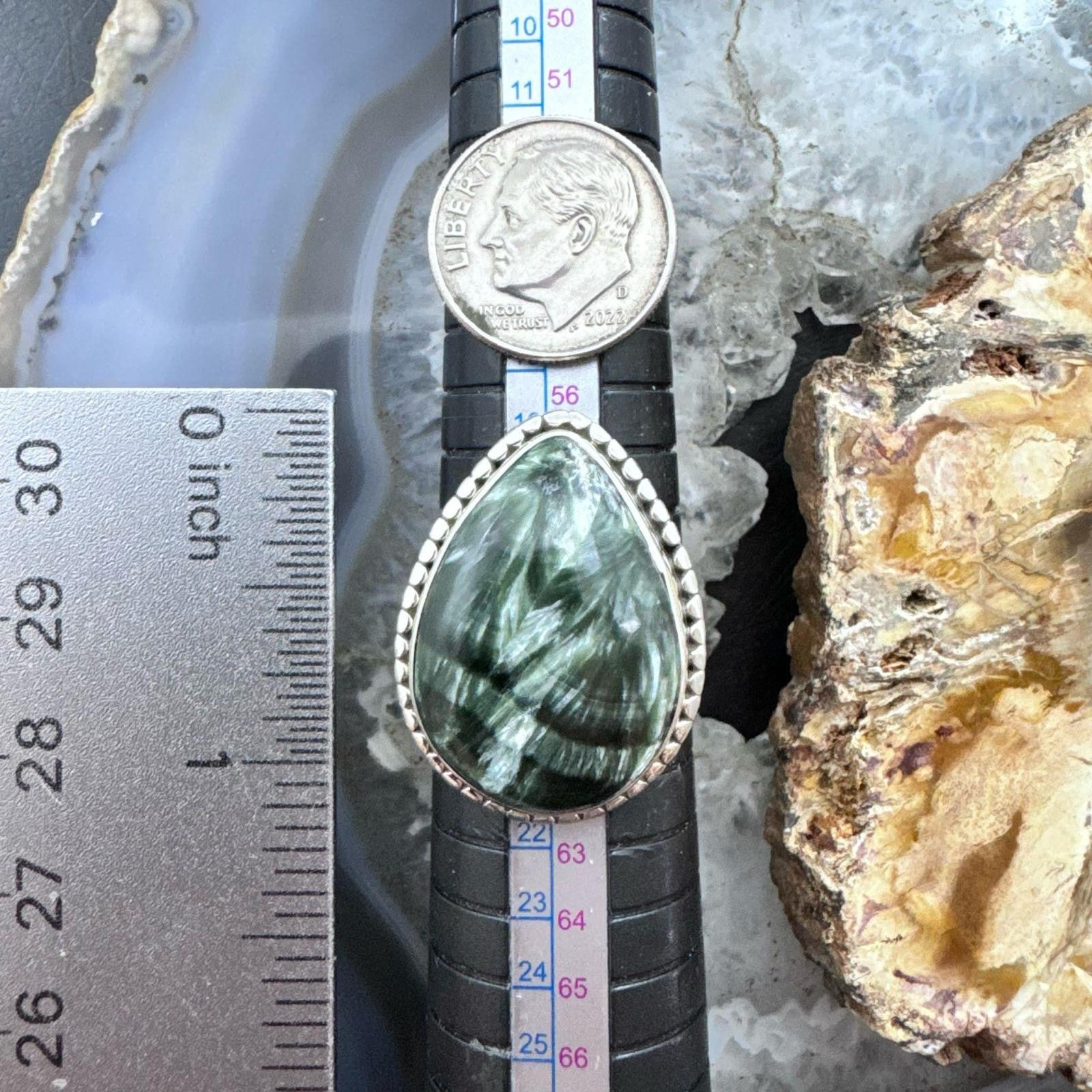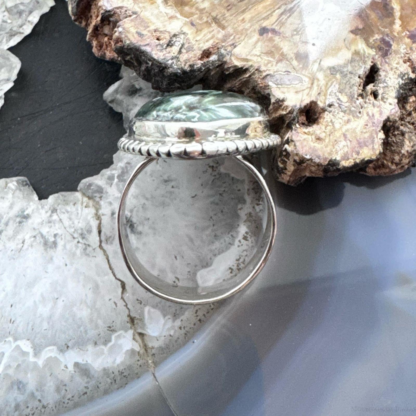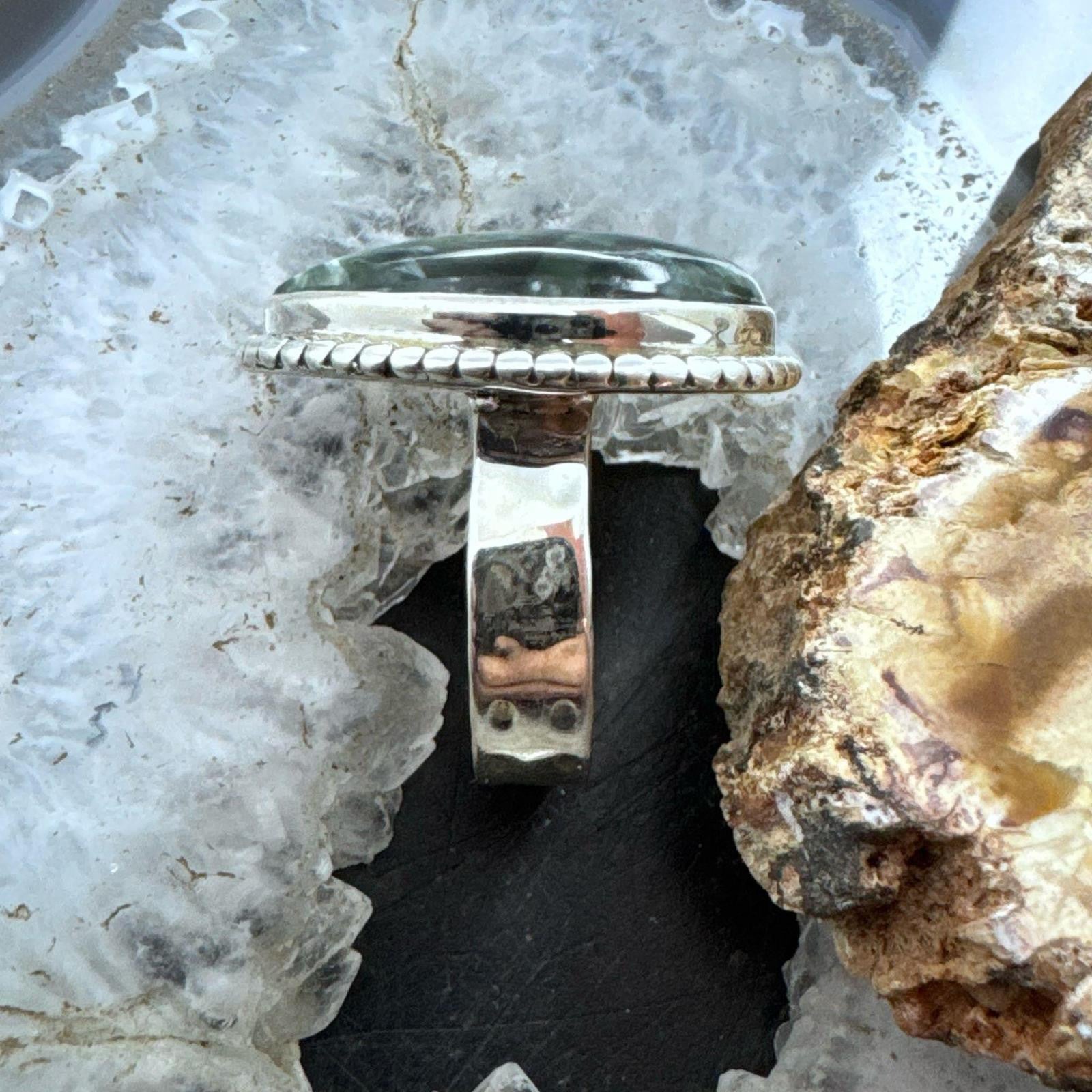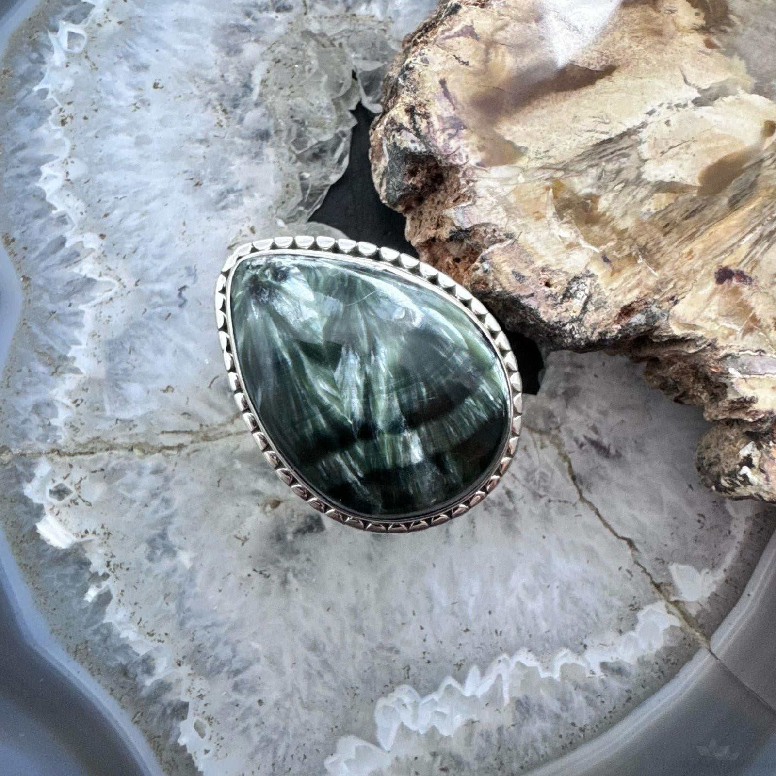 Sterling Silver Southwestern Style Teardrop Seraphinite Ring Size 9 For Women