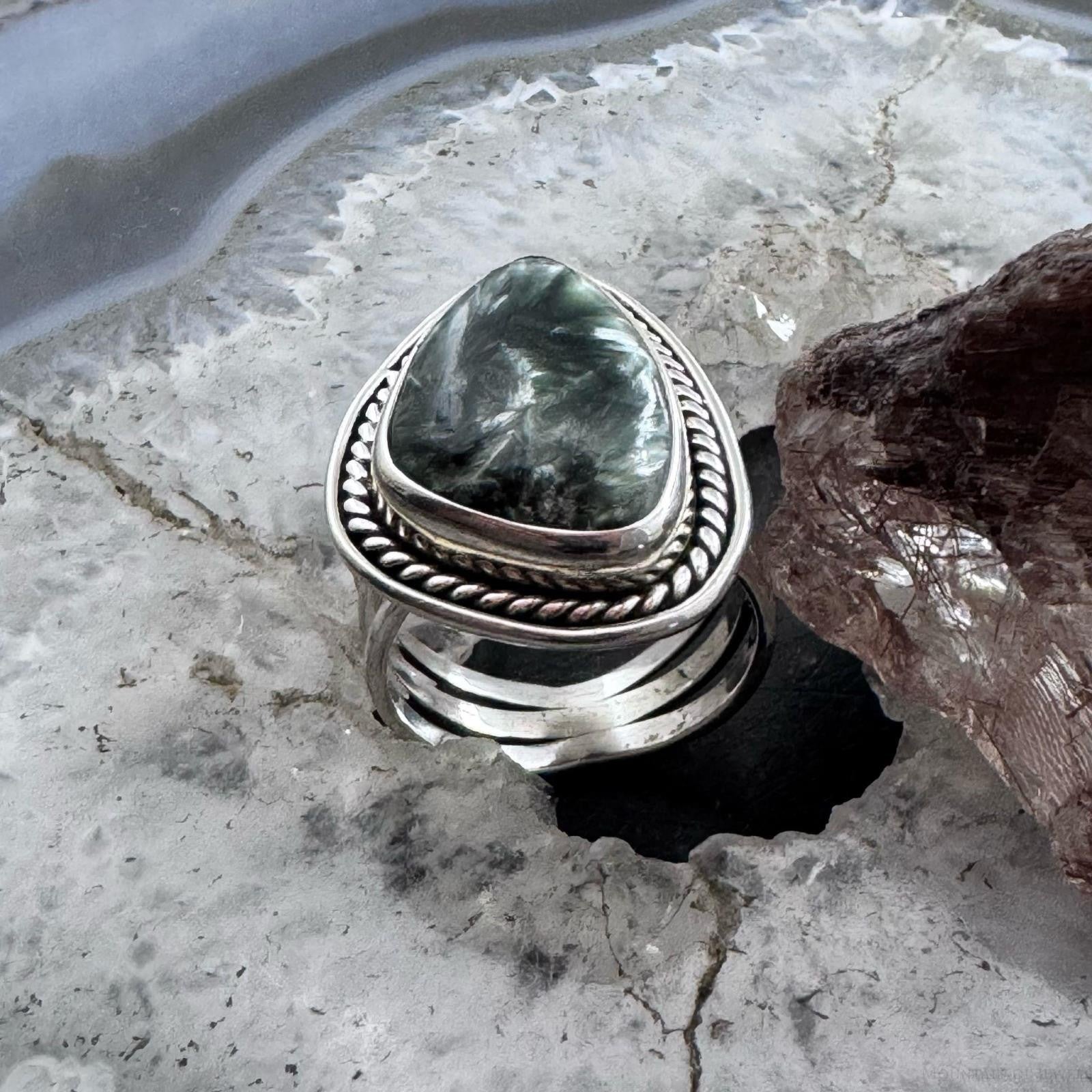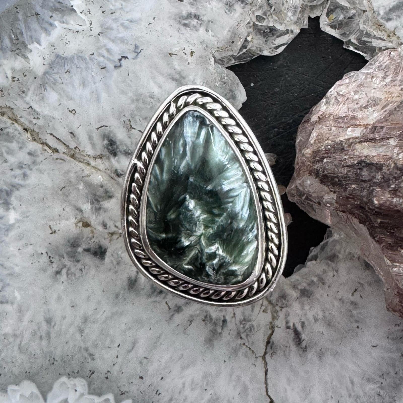 Sterling Silver Southwestern Style Teardrop Serpentine Ring Size 7.5 For Women