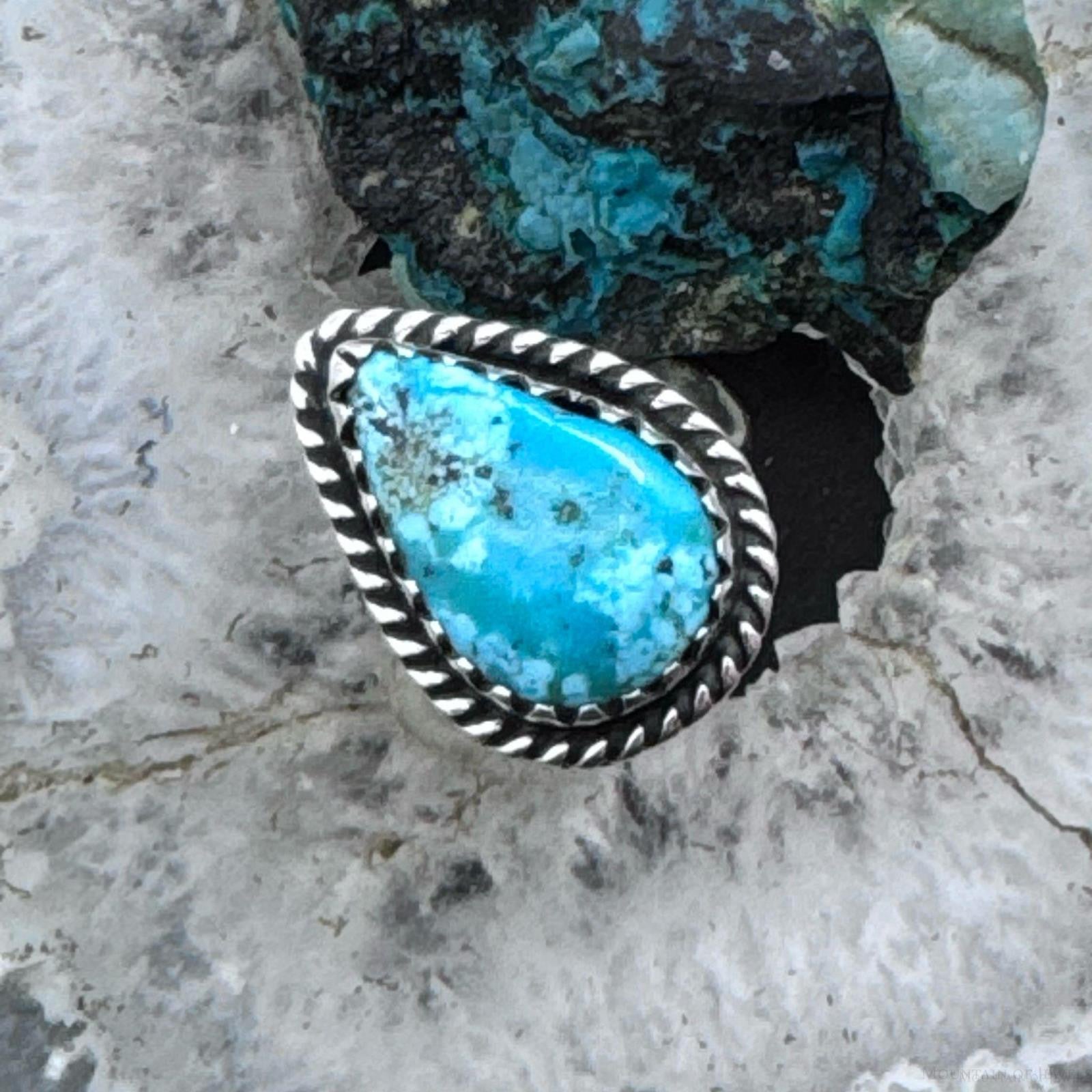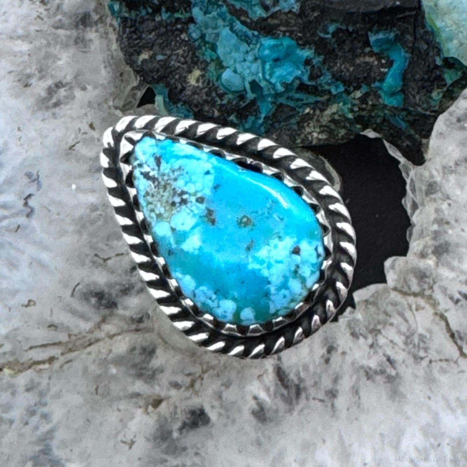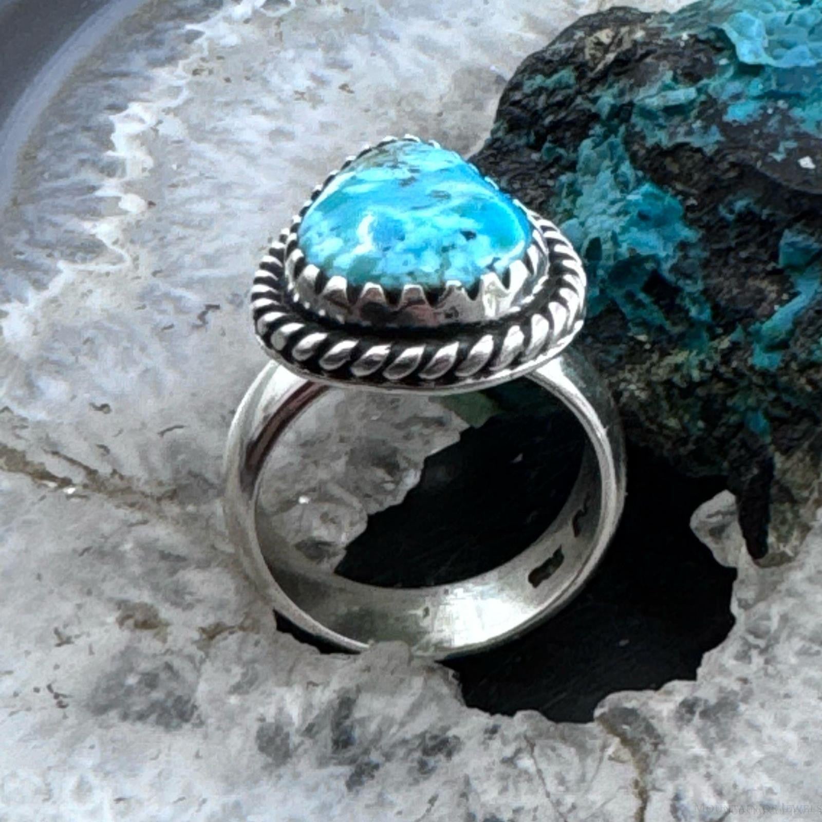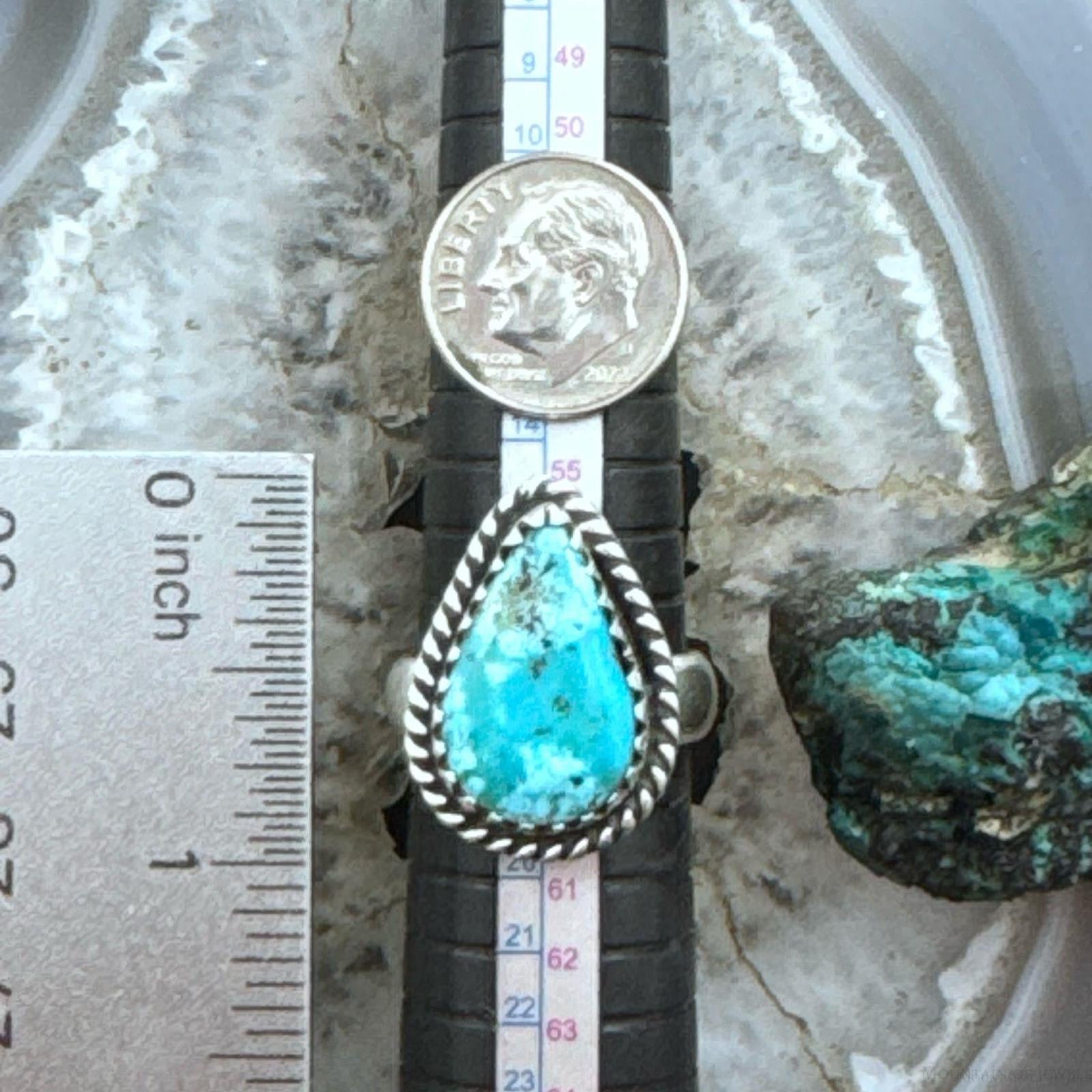 Sterling Silver Southwestern Style Teardrop Turquoise Ring Size 8.5 For Women