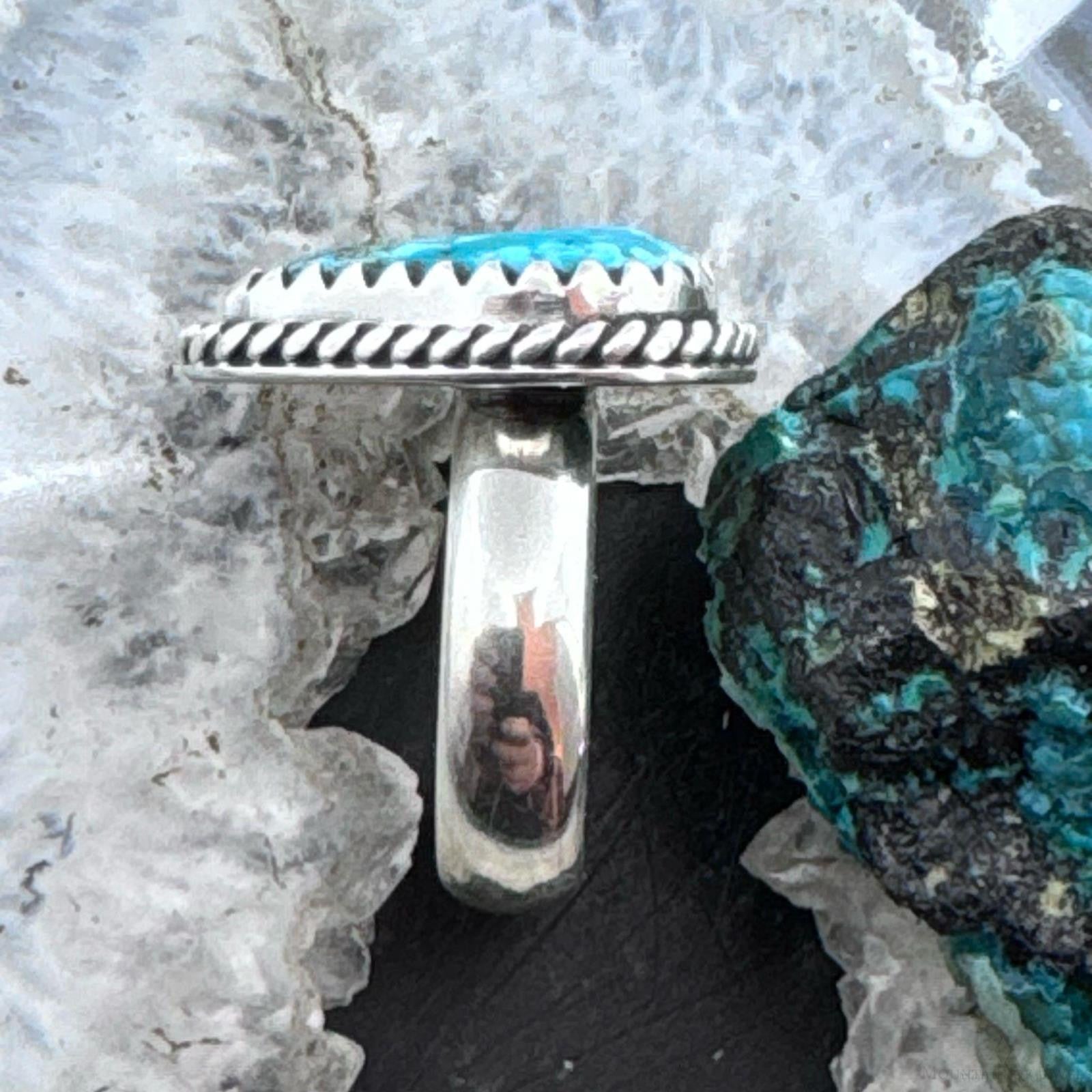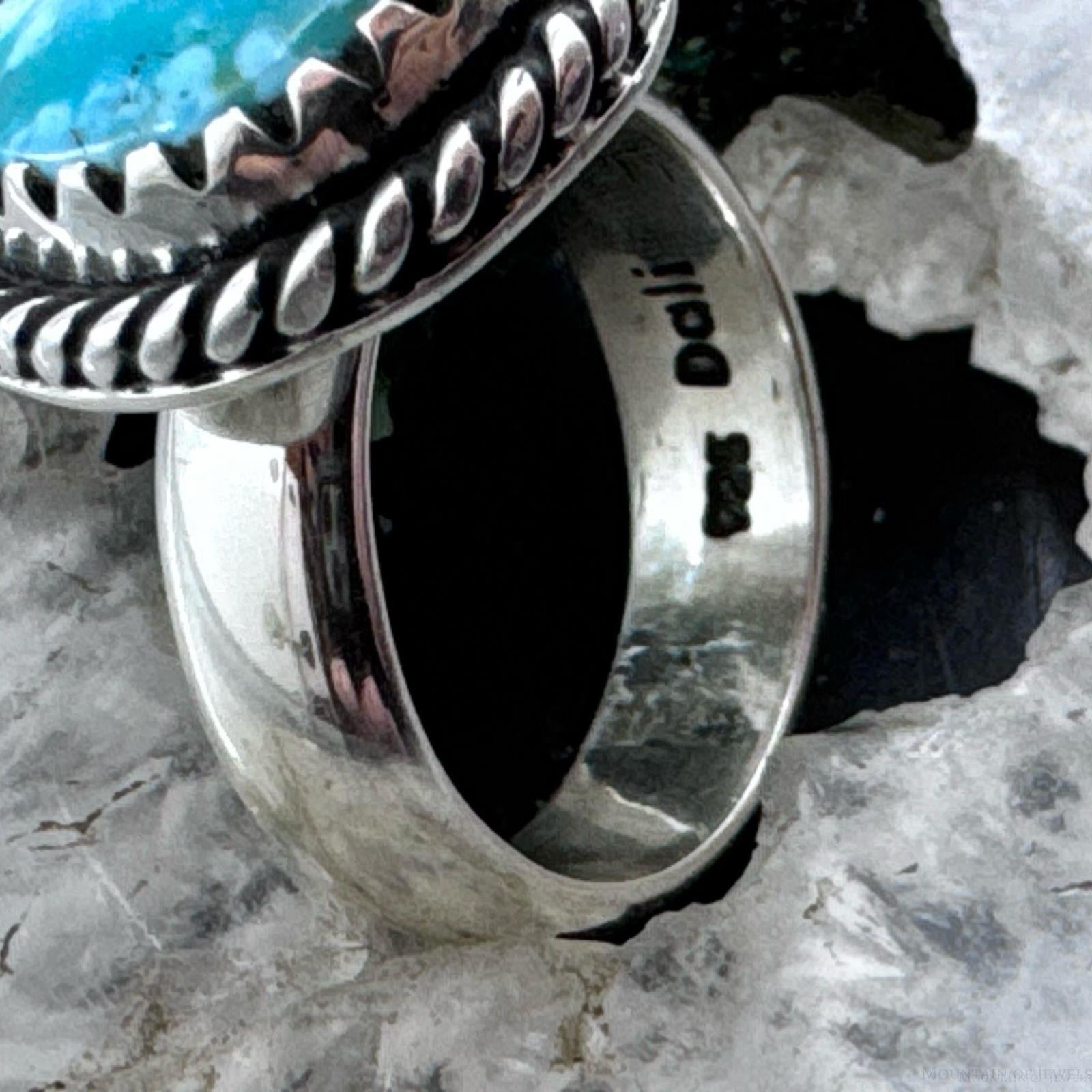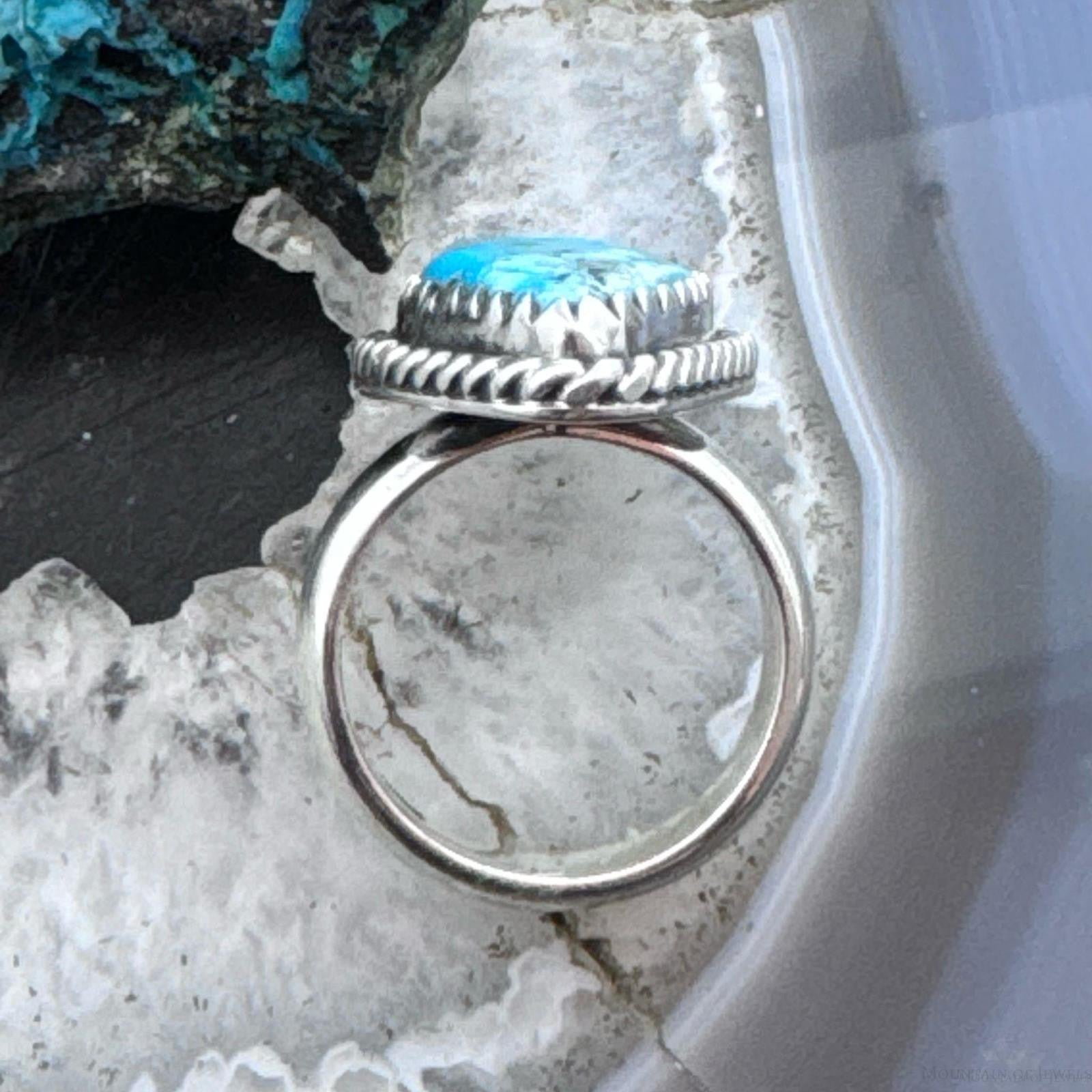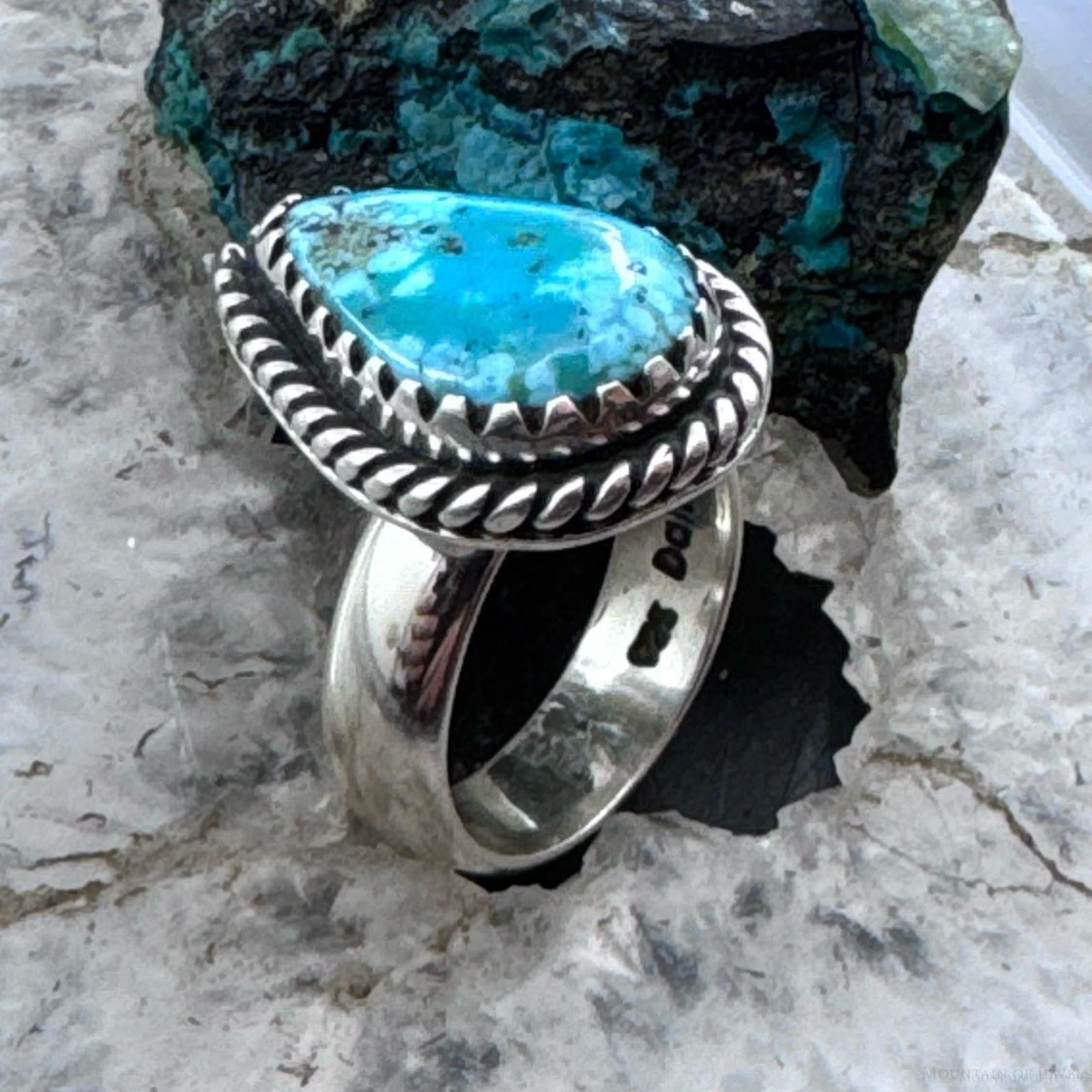 Sterling Silver Southwestern Style Teardrop Turquoise Ring Size 8.5 For Women
