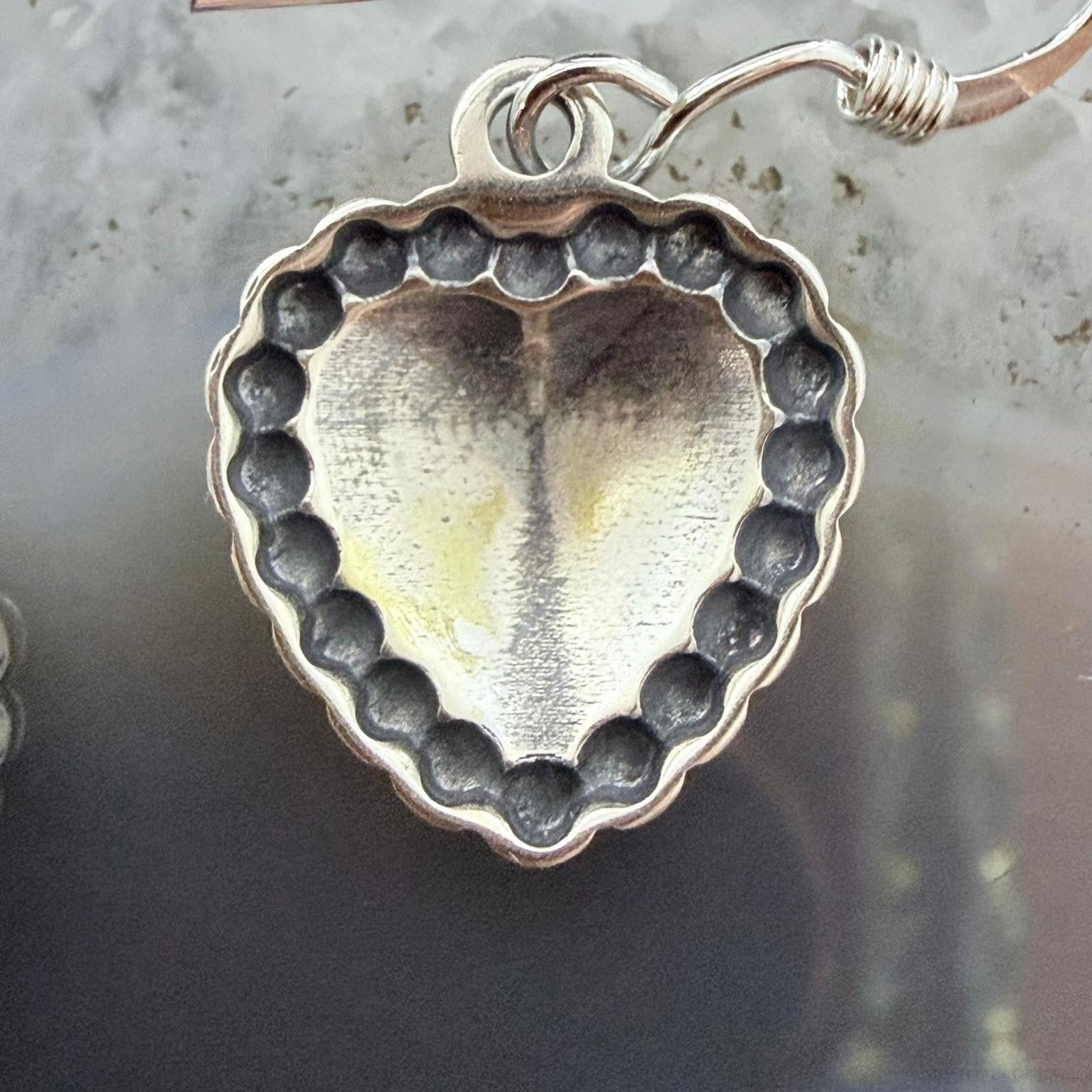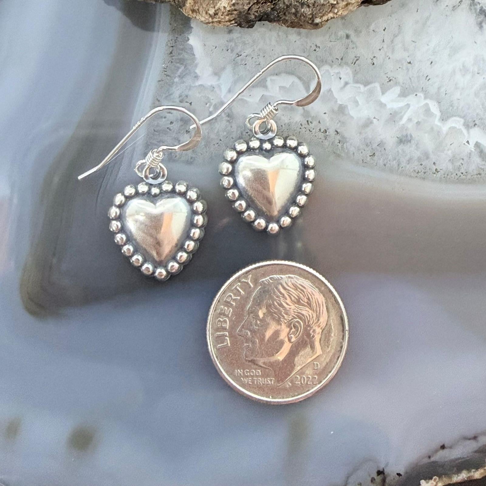 Sterling Silver Southwestern Style Tiny Heart Dangle Earrings For Women