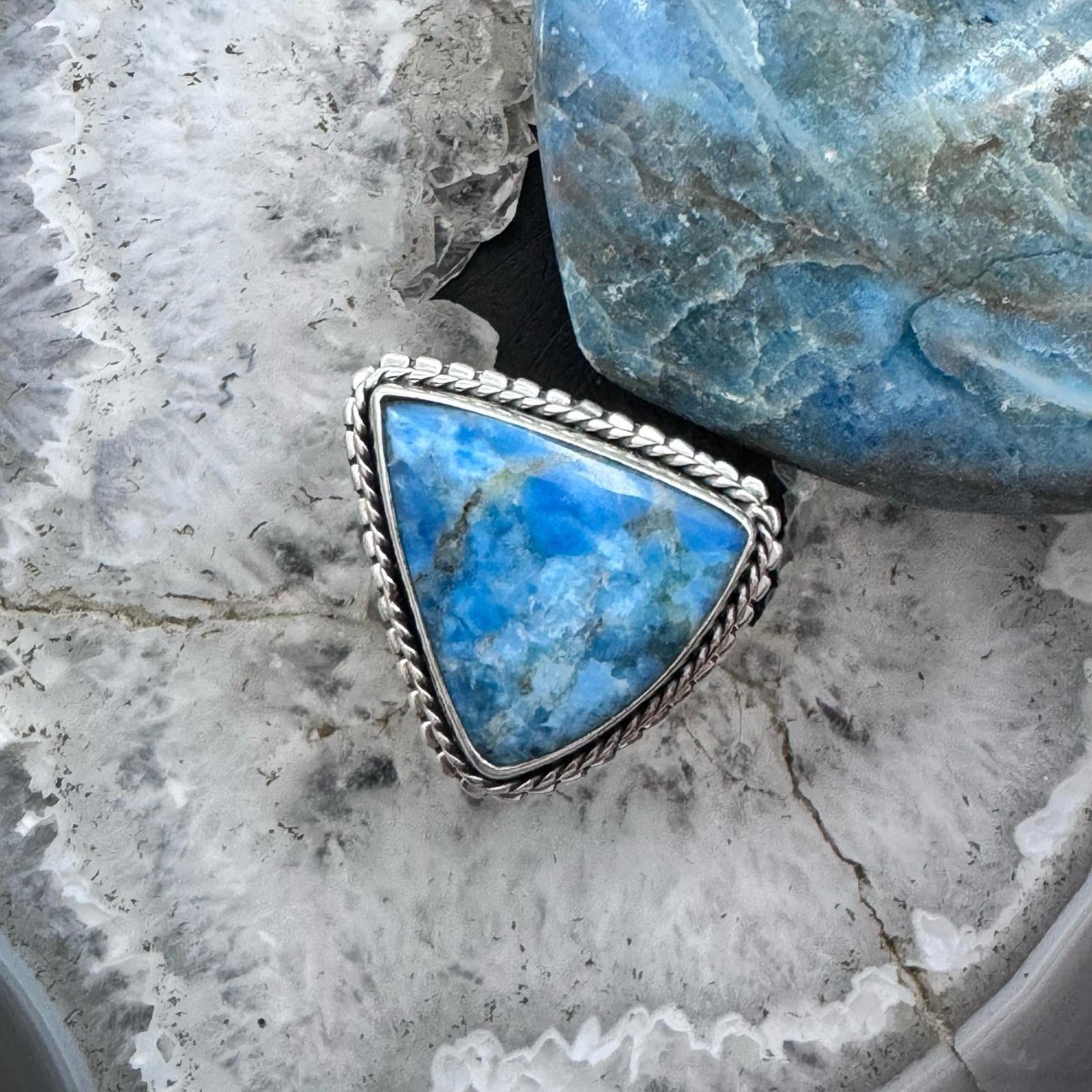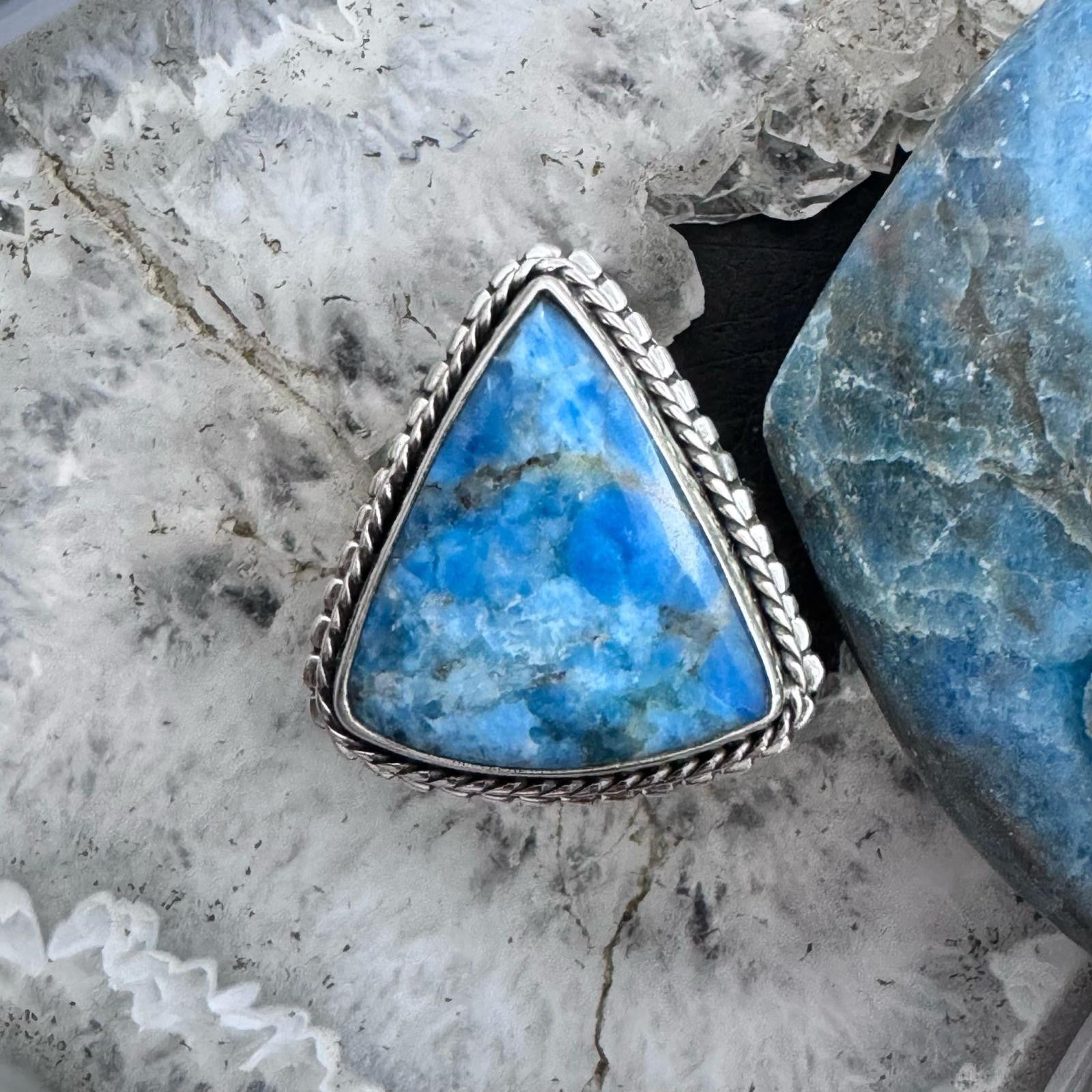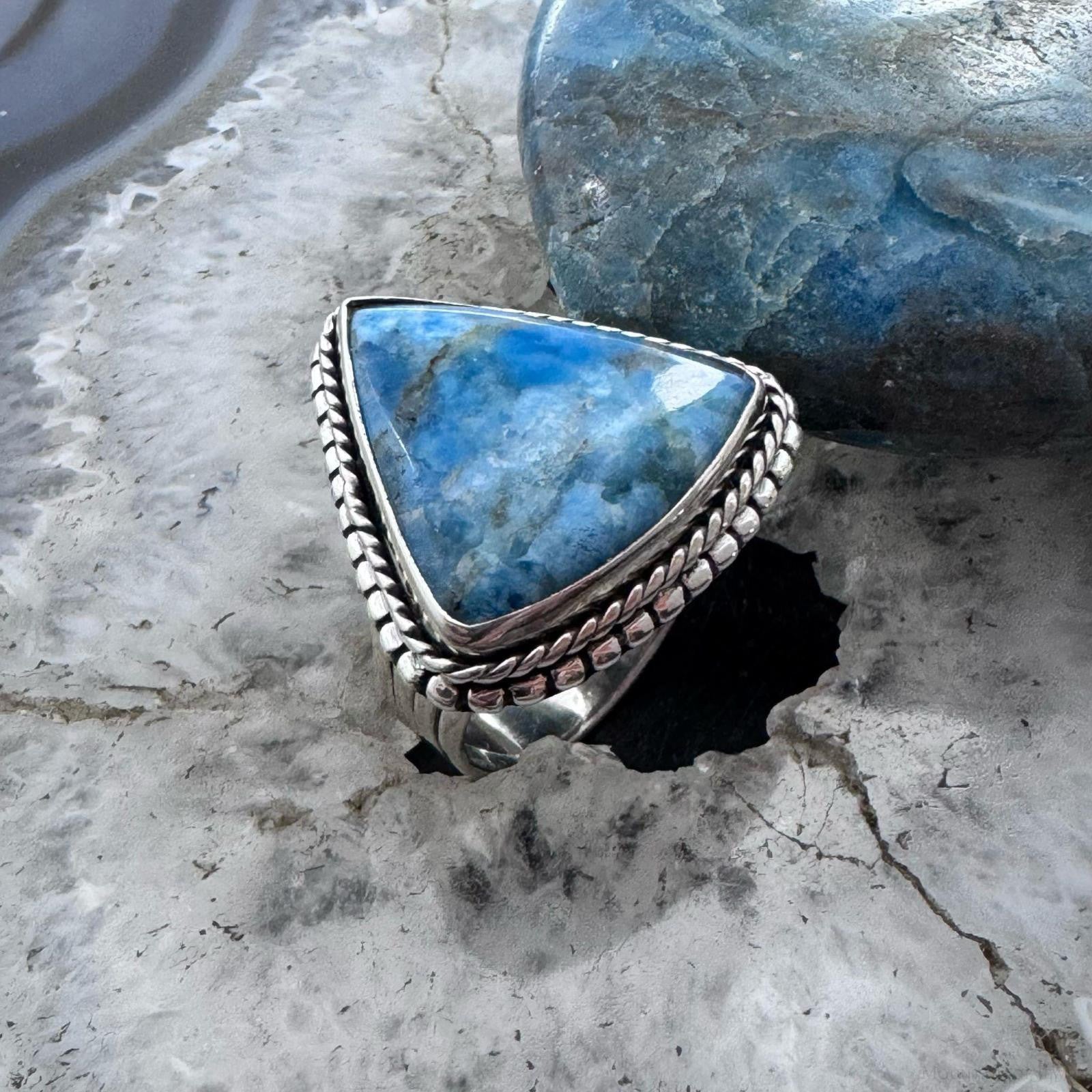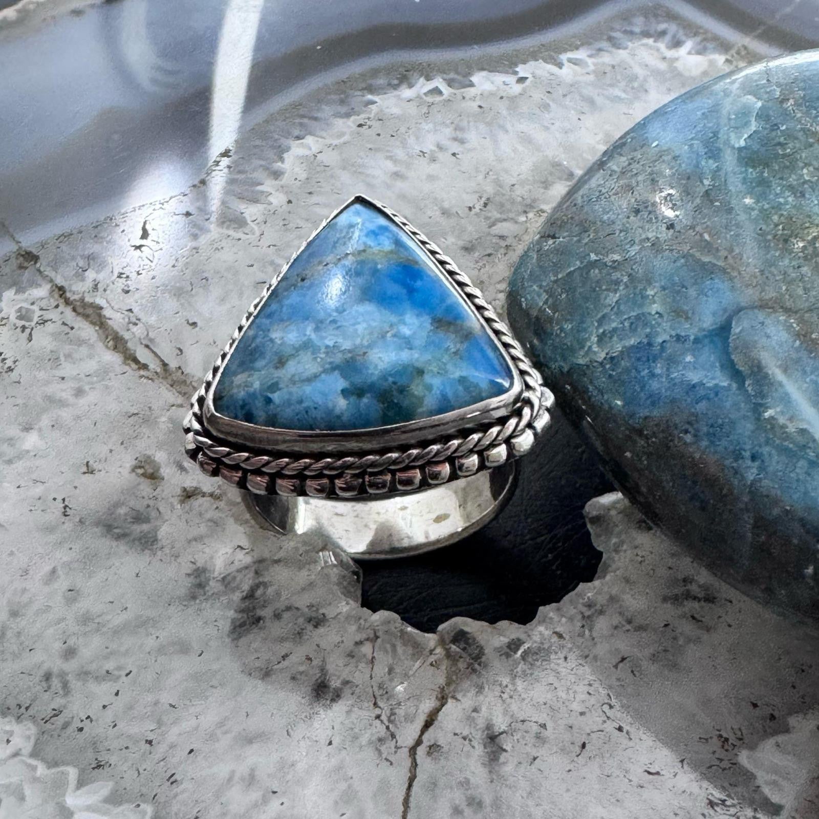 Sterling Silver Southwestern Style Triangle Blue Apatite Ring Size 8.5 For Women