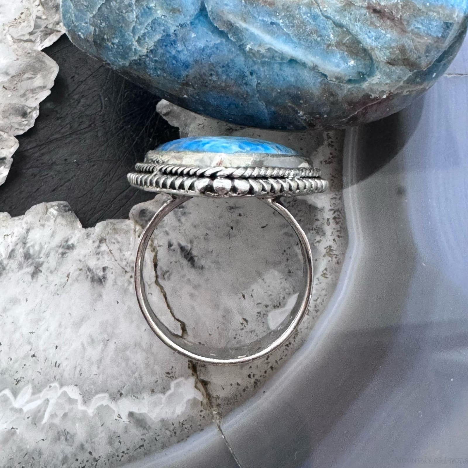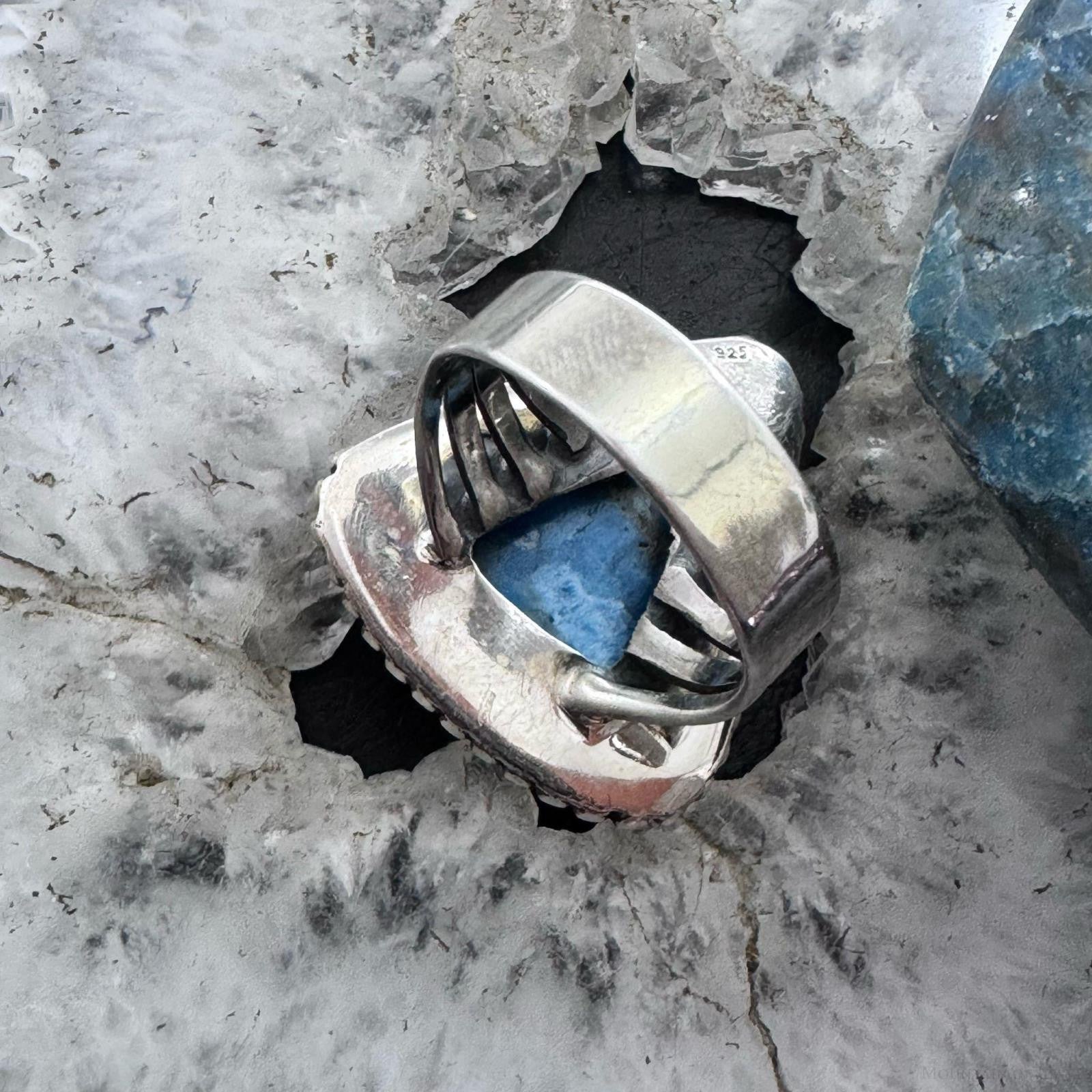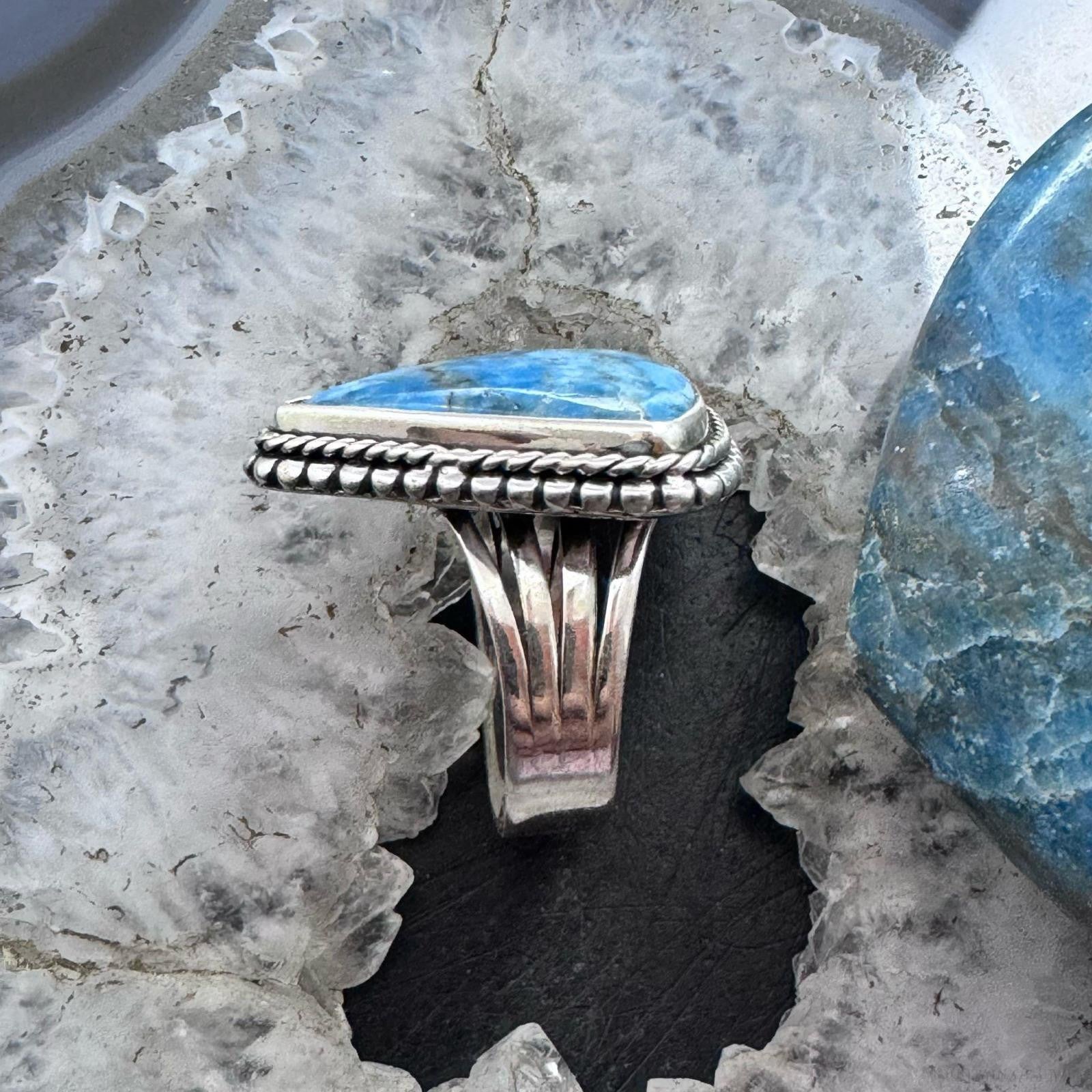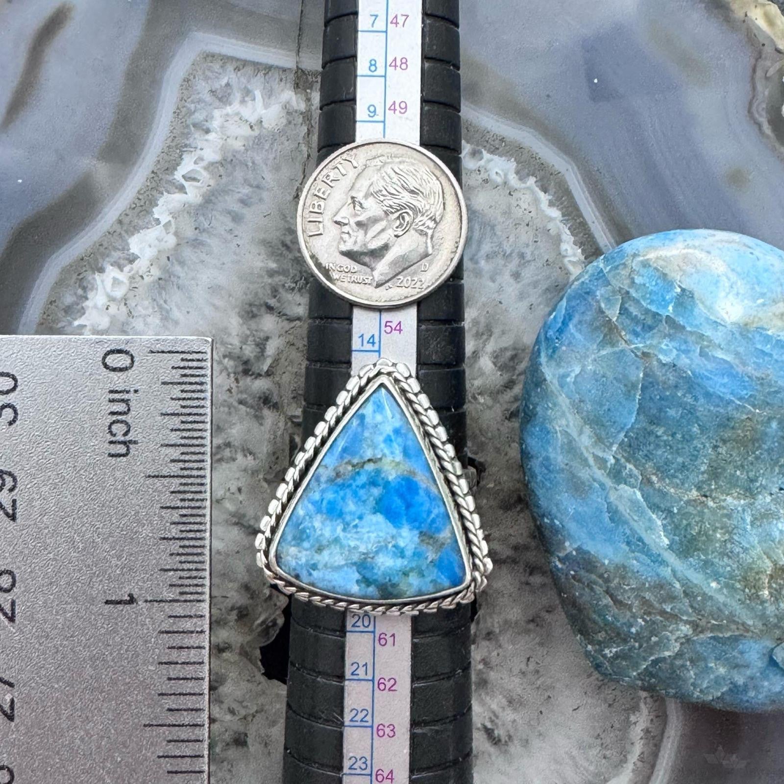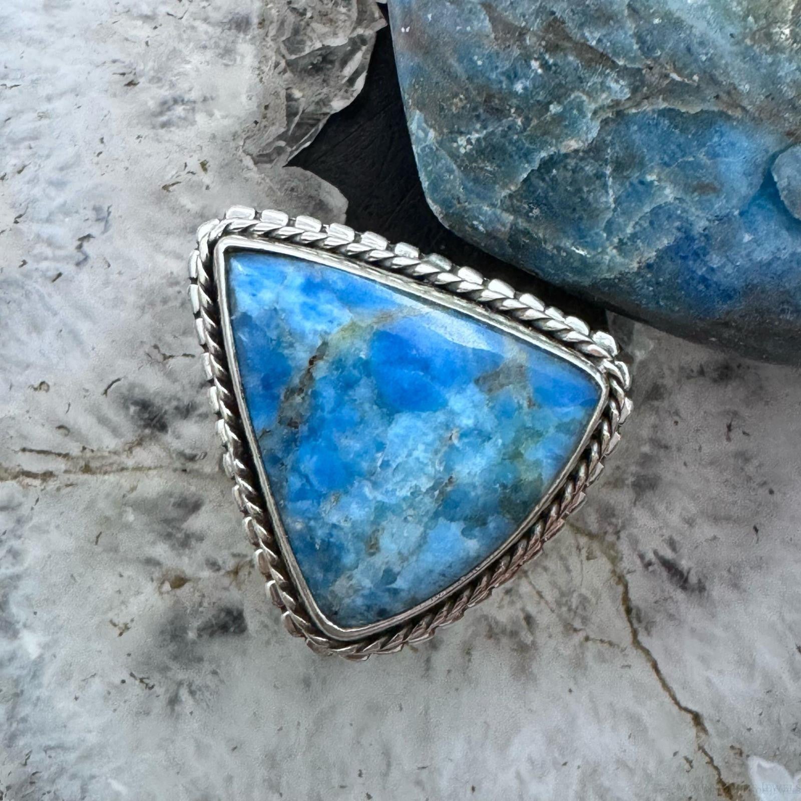 Sterling Silver Southwestern Style Triangle Blue Apatite Ring Size 8.5 For Women