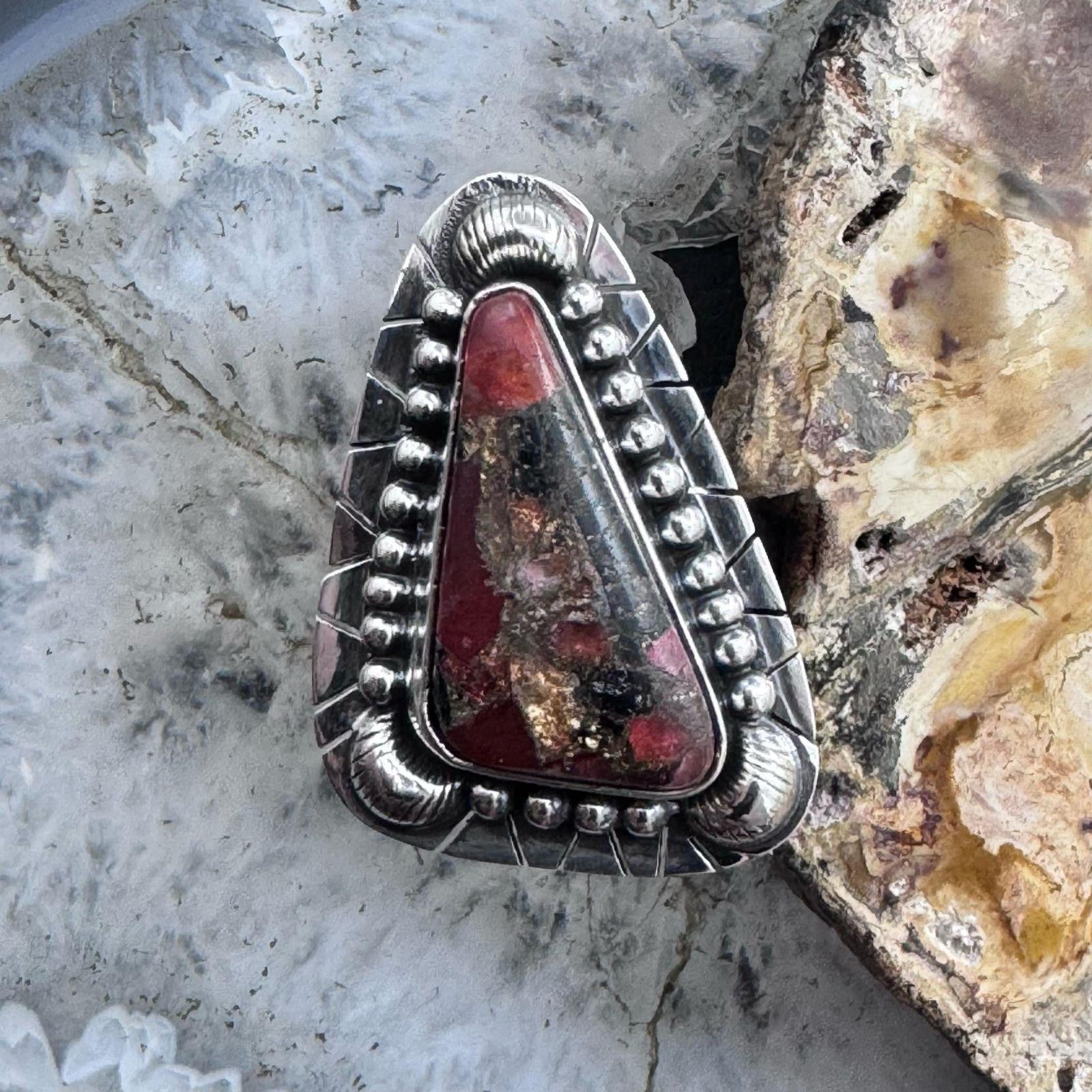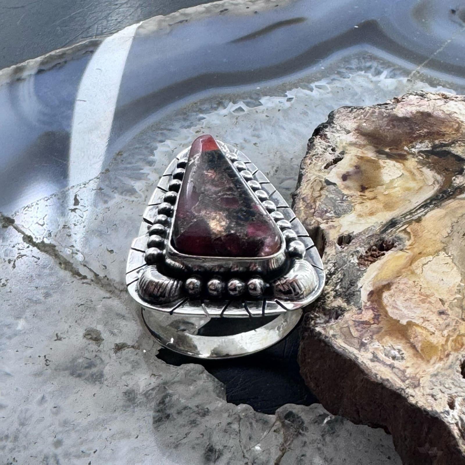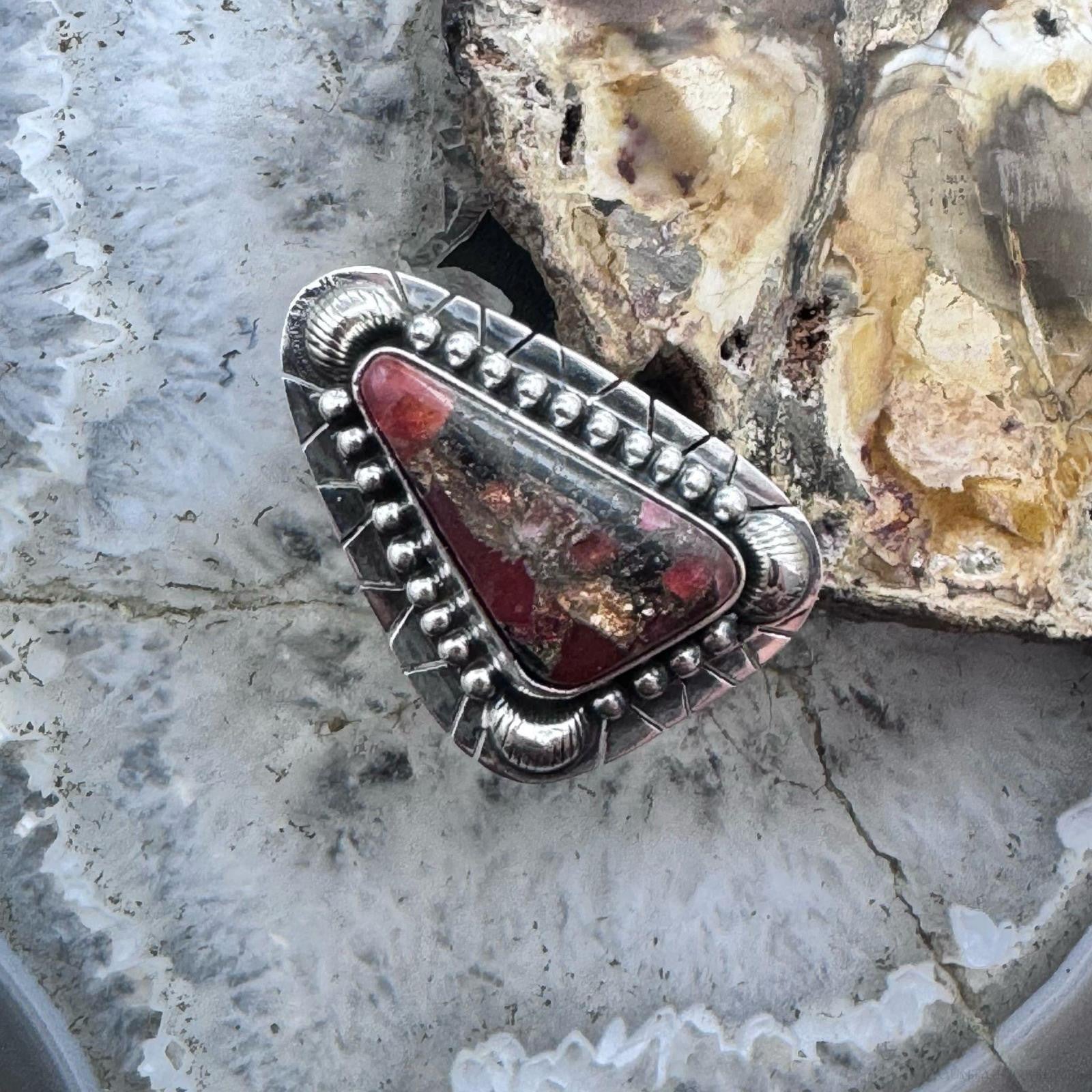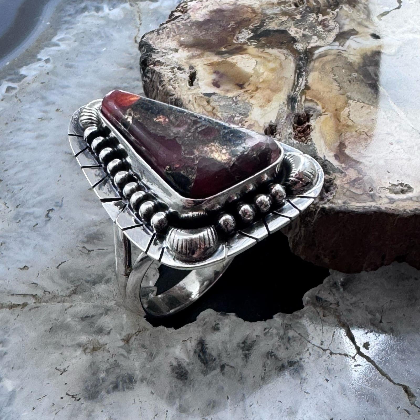 Sterling Silver Southwestern Style Triangle Red Moss Agate Ring Size 10 For Women