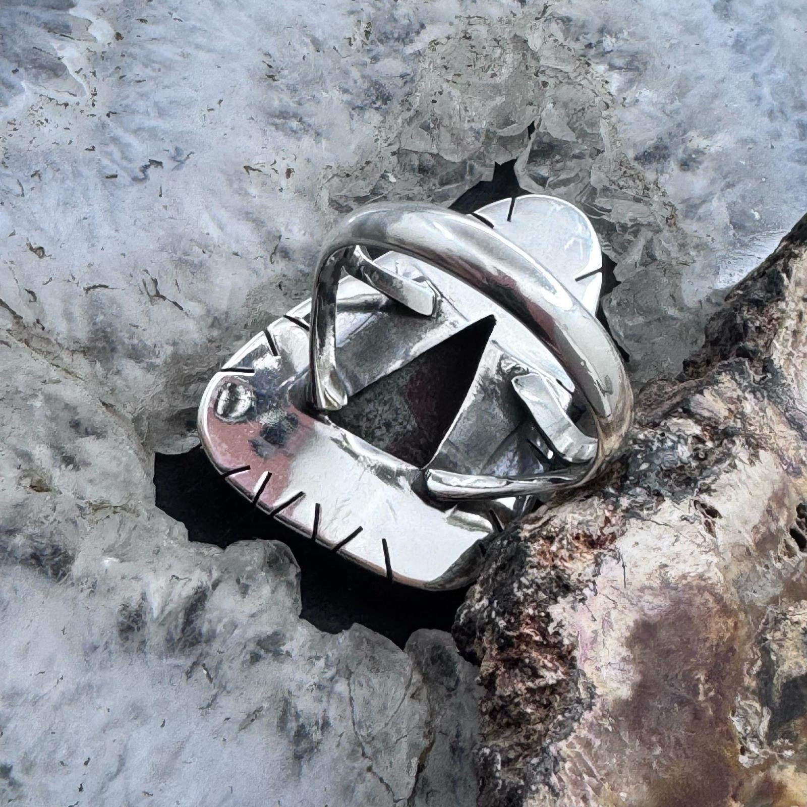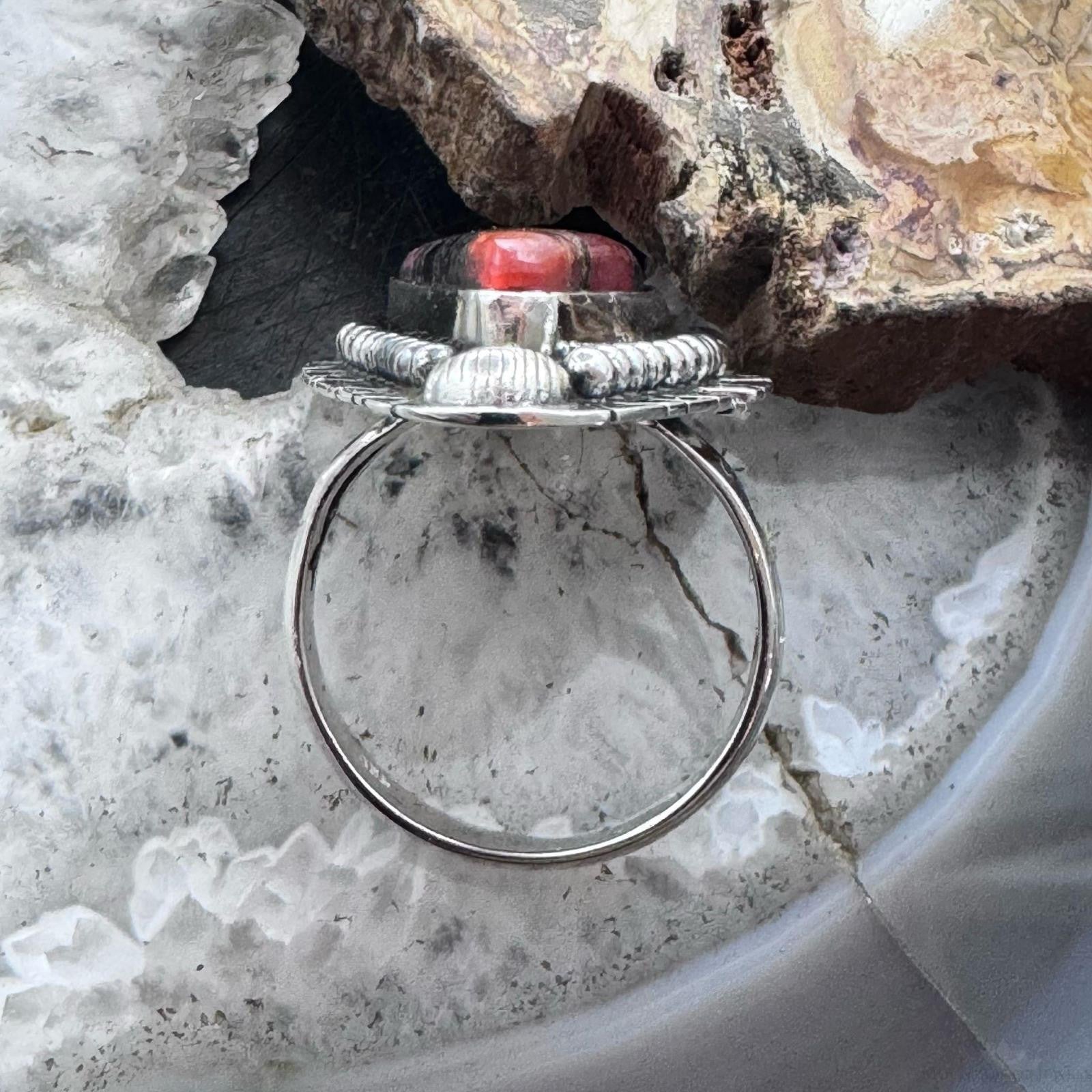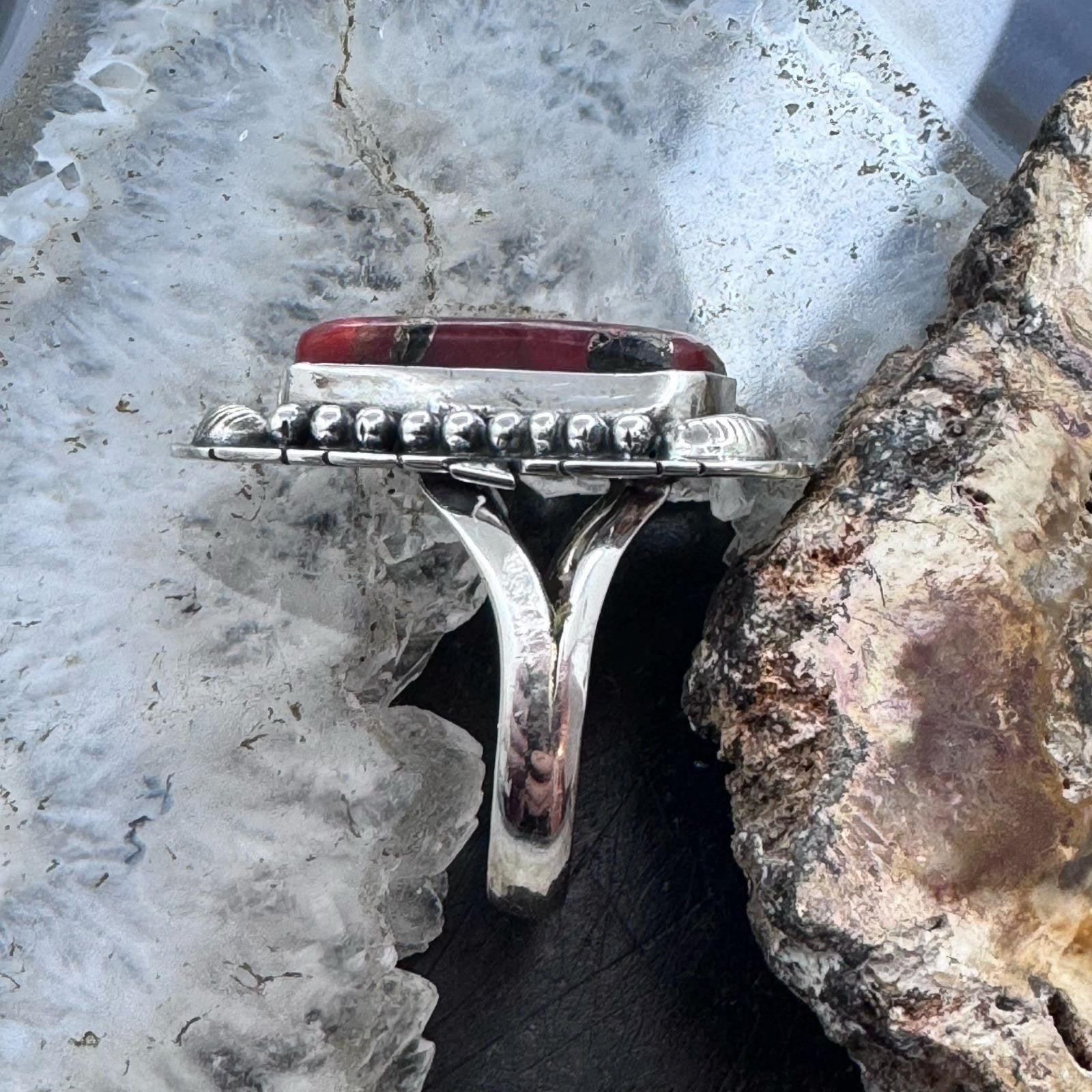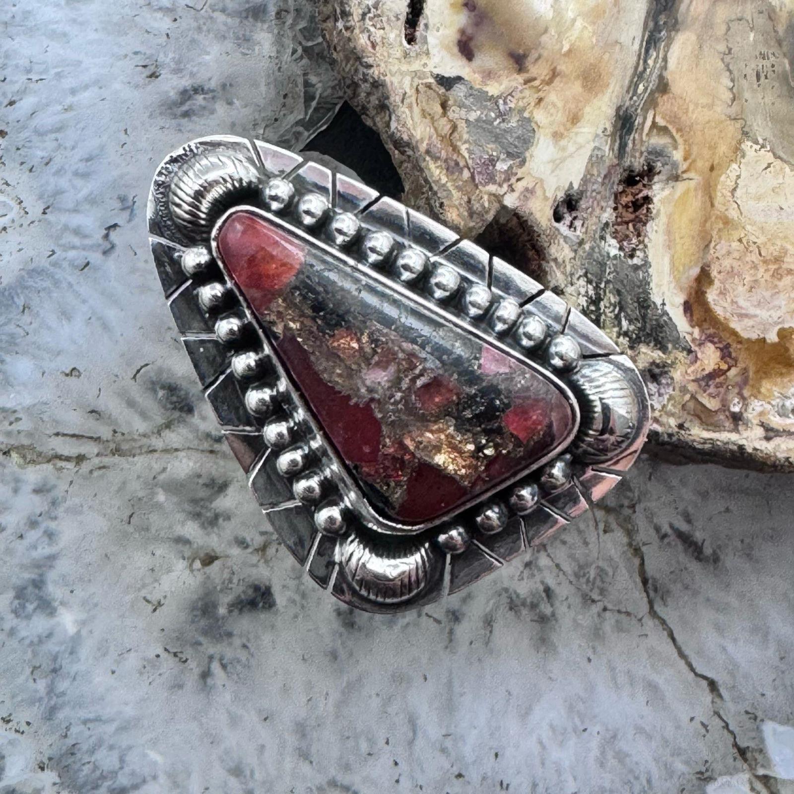 Sterling Silver Southwestern Style Triangle Red Moss Agate Ring Size 10 For Women