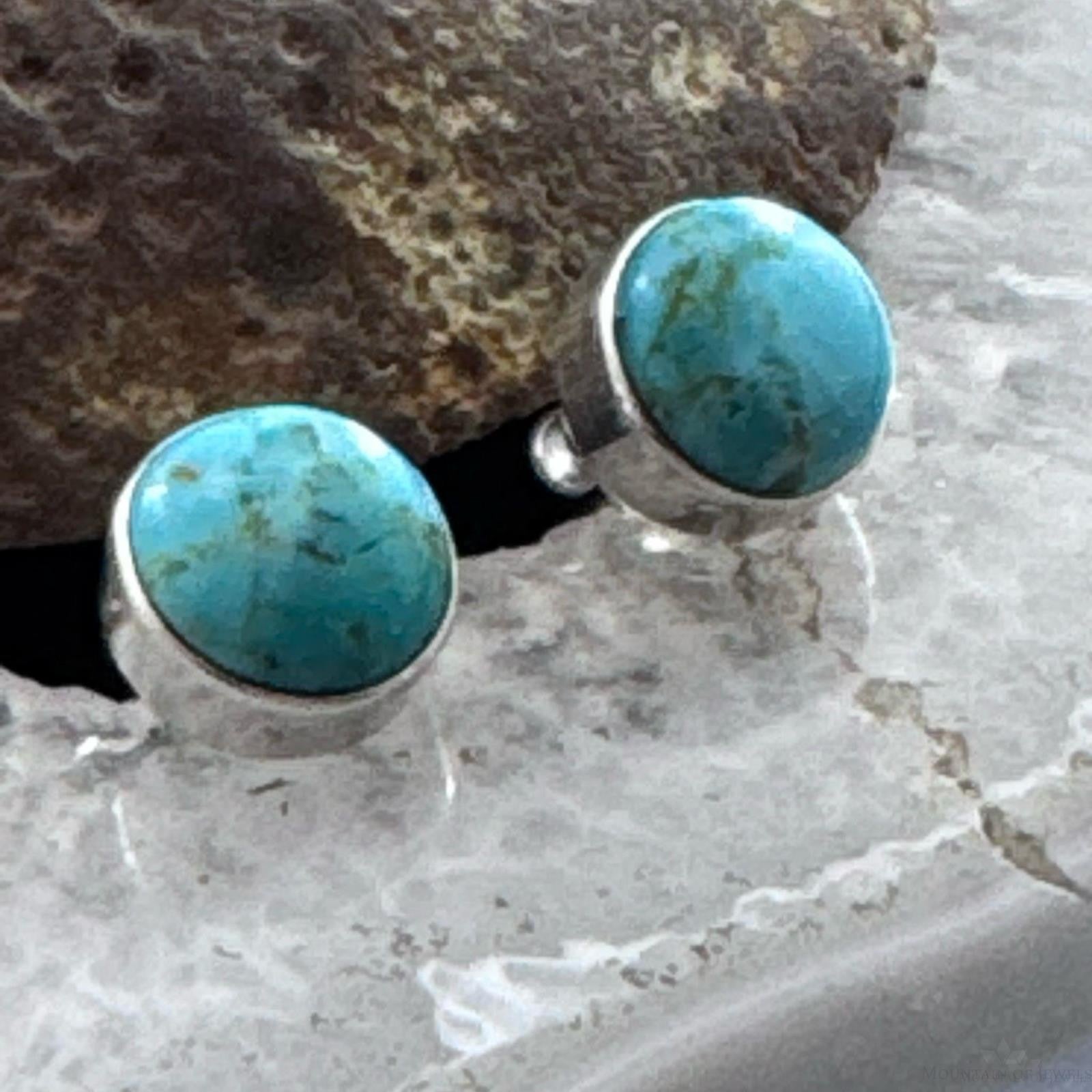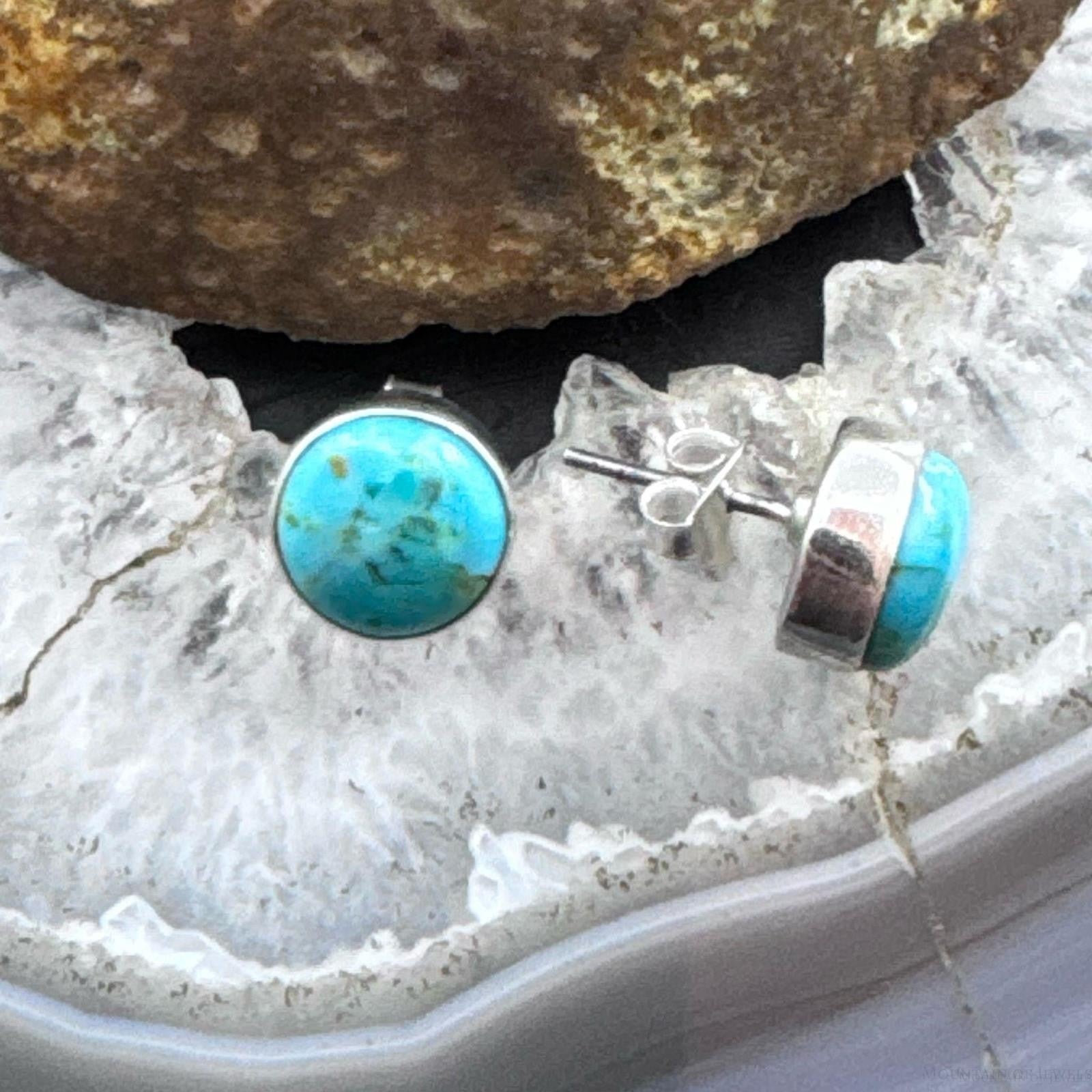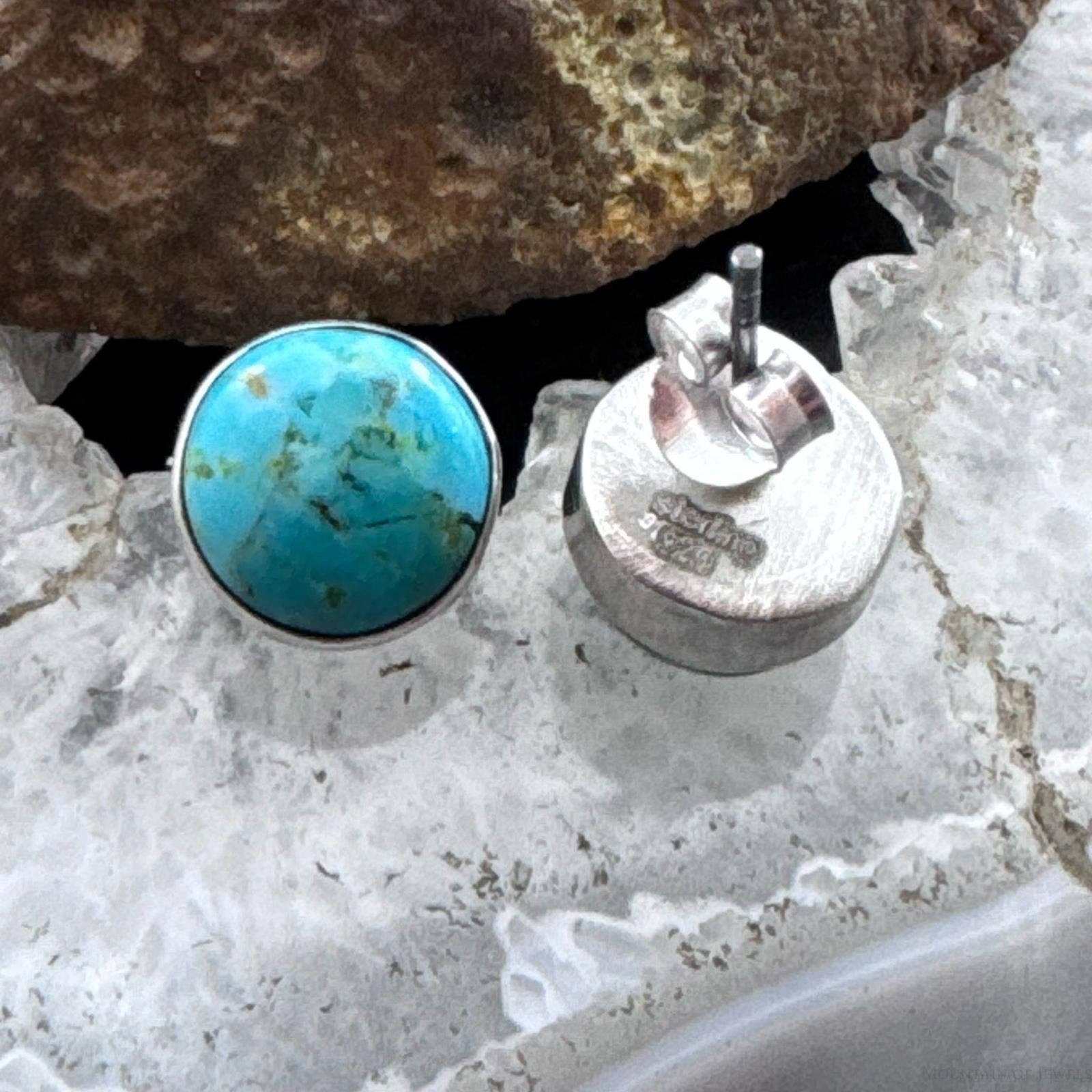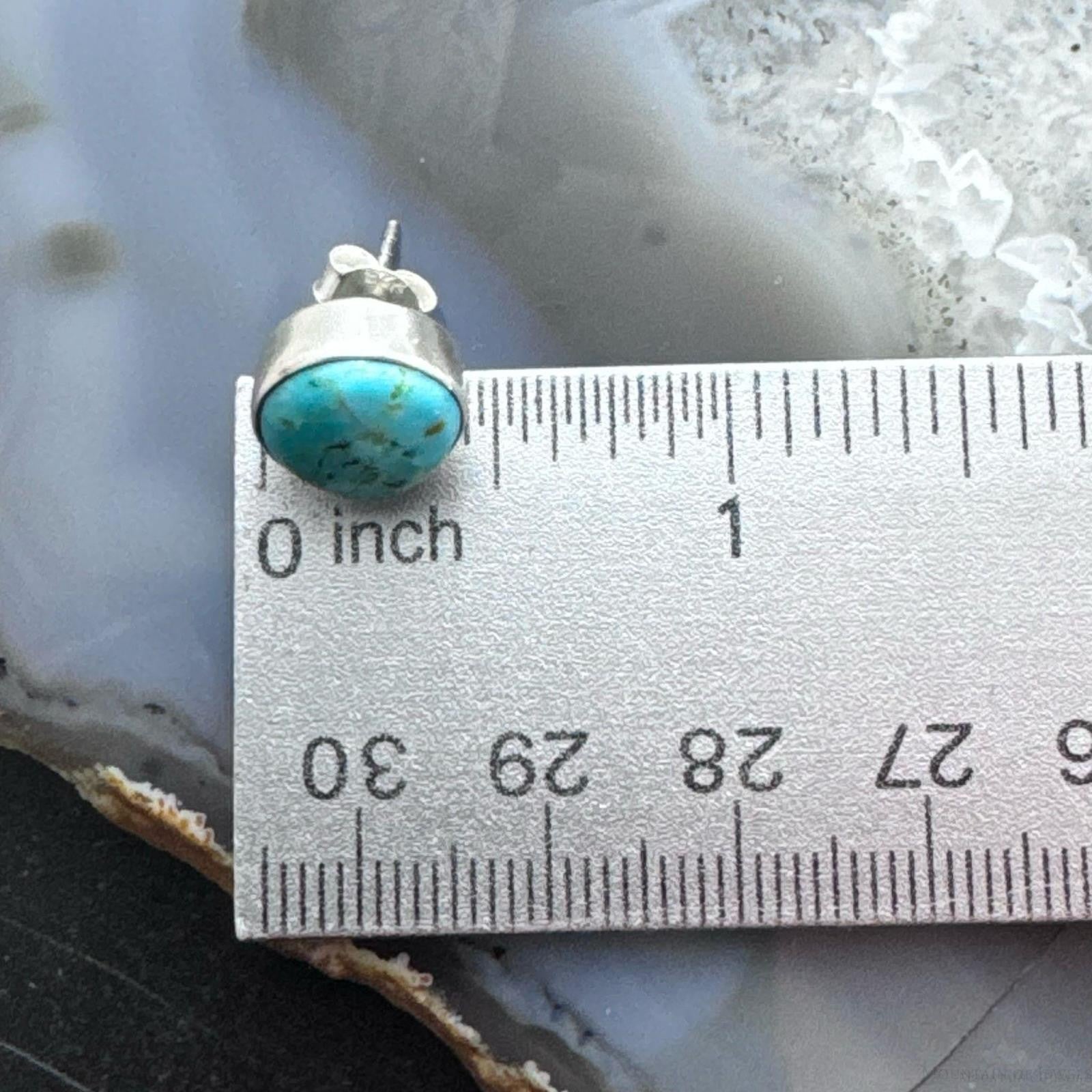 Sterling Silver Southwestern Style Turquoise Rounded Stud Earrings For Women
