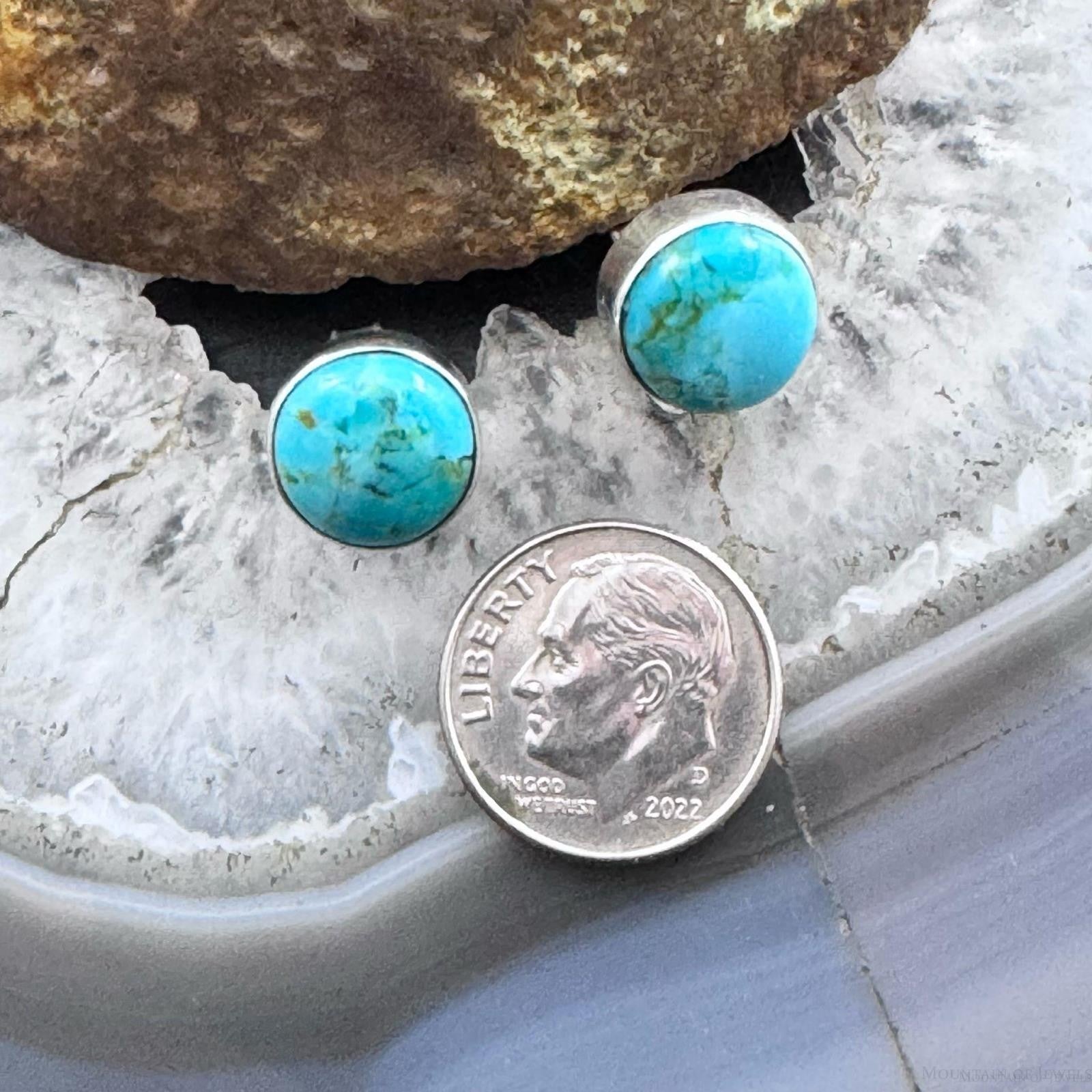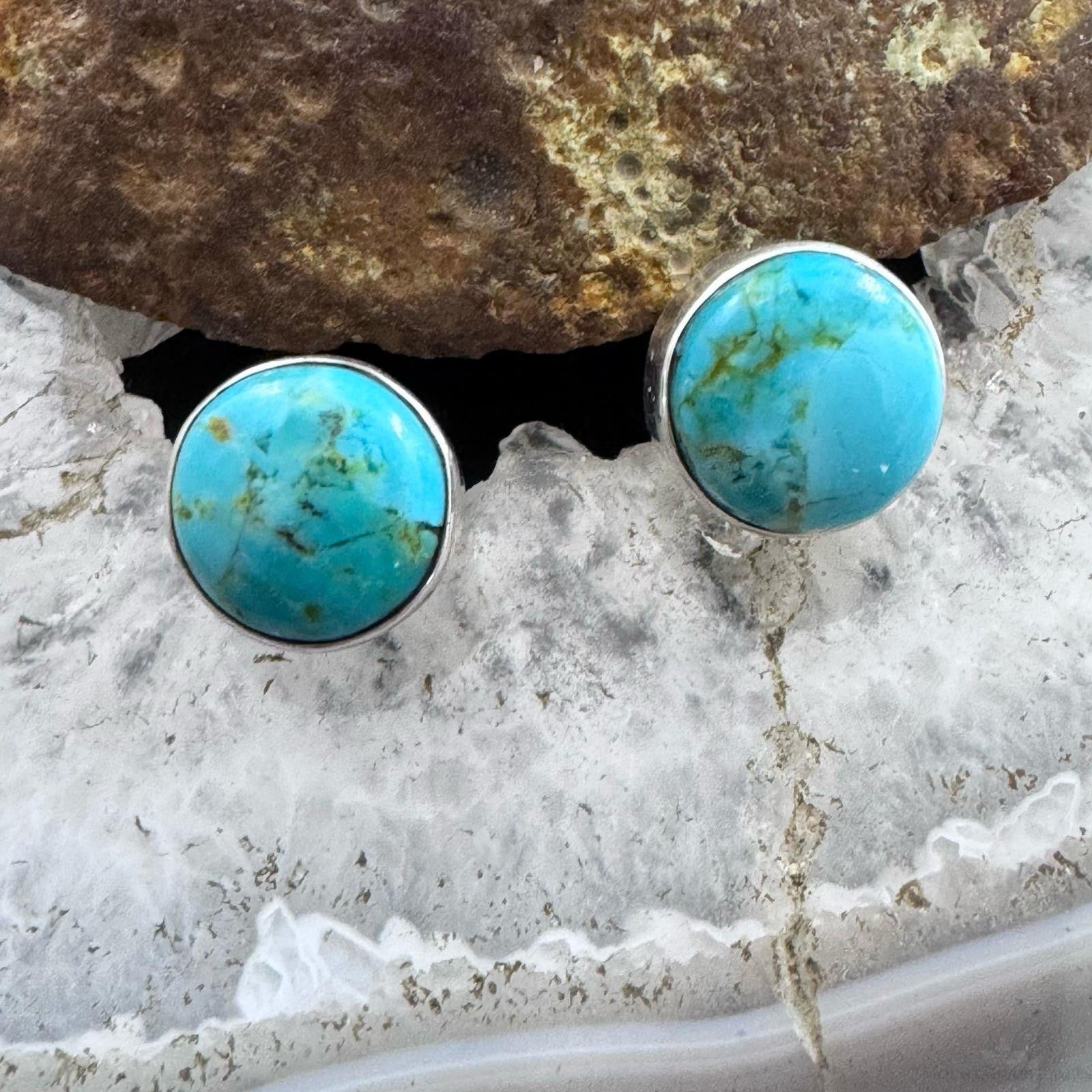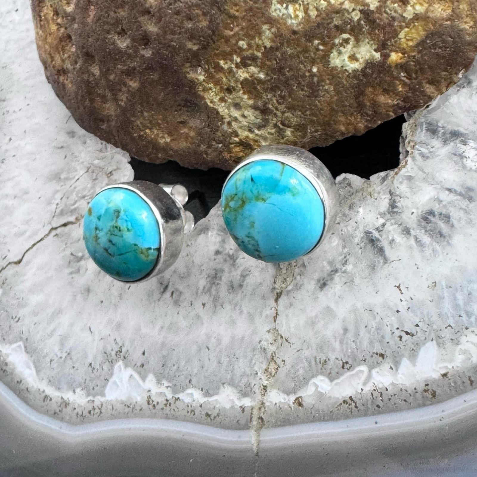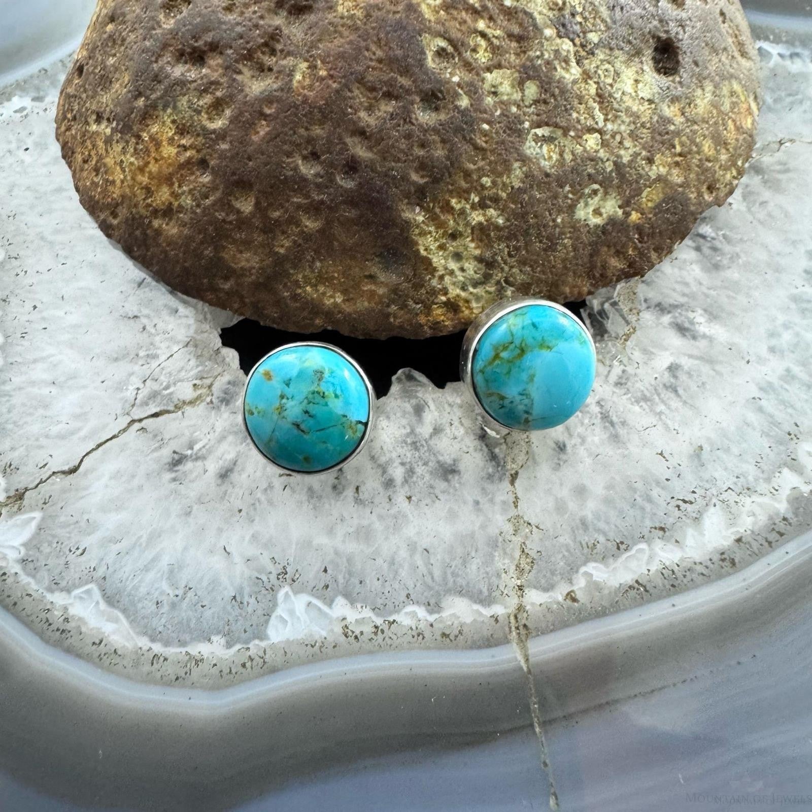 Sterling Silver Southwestern Style Turquoise Rounded Stud Earrings For Women