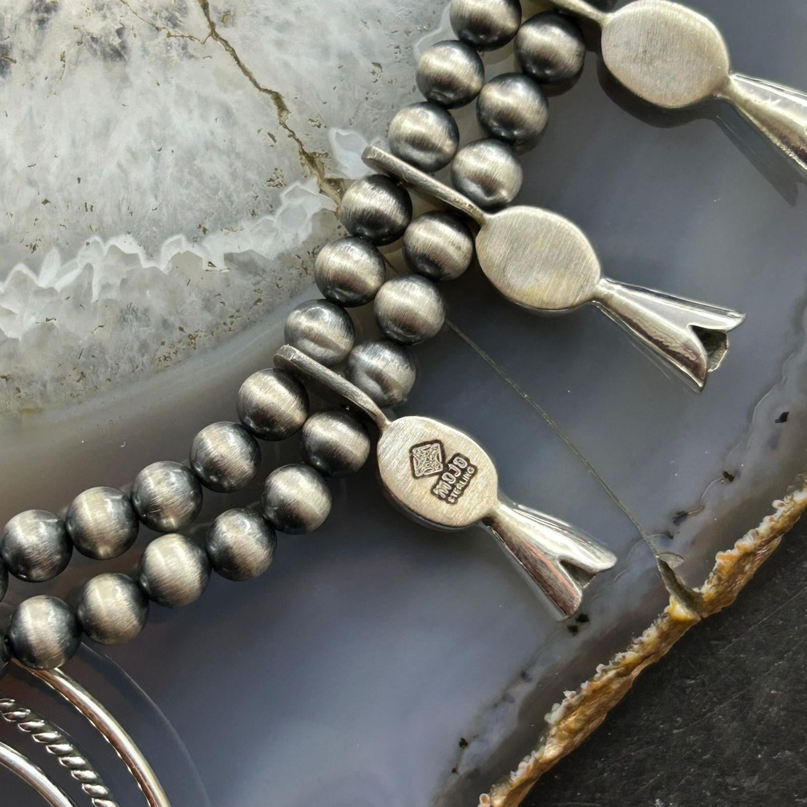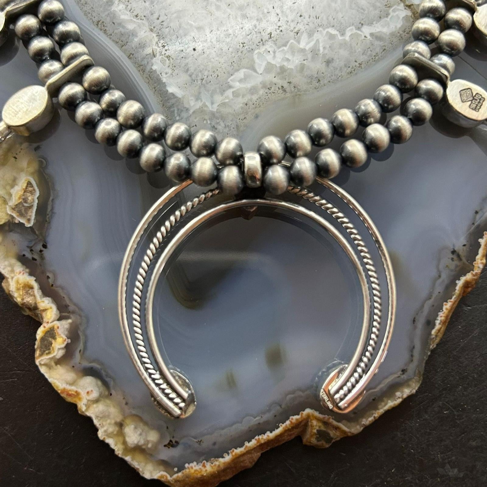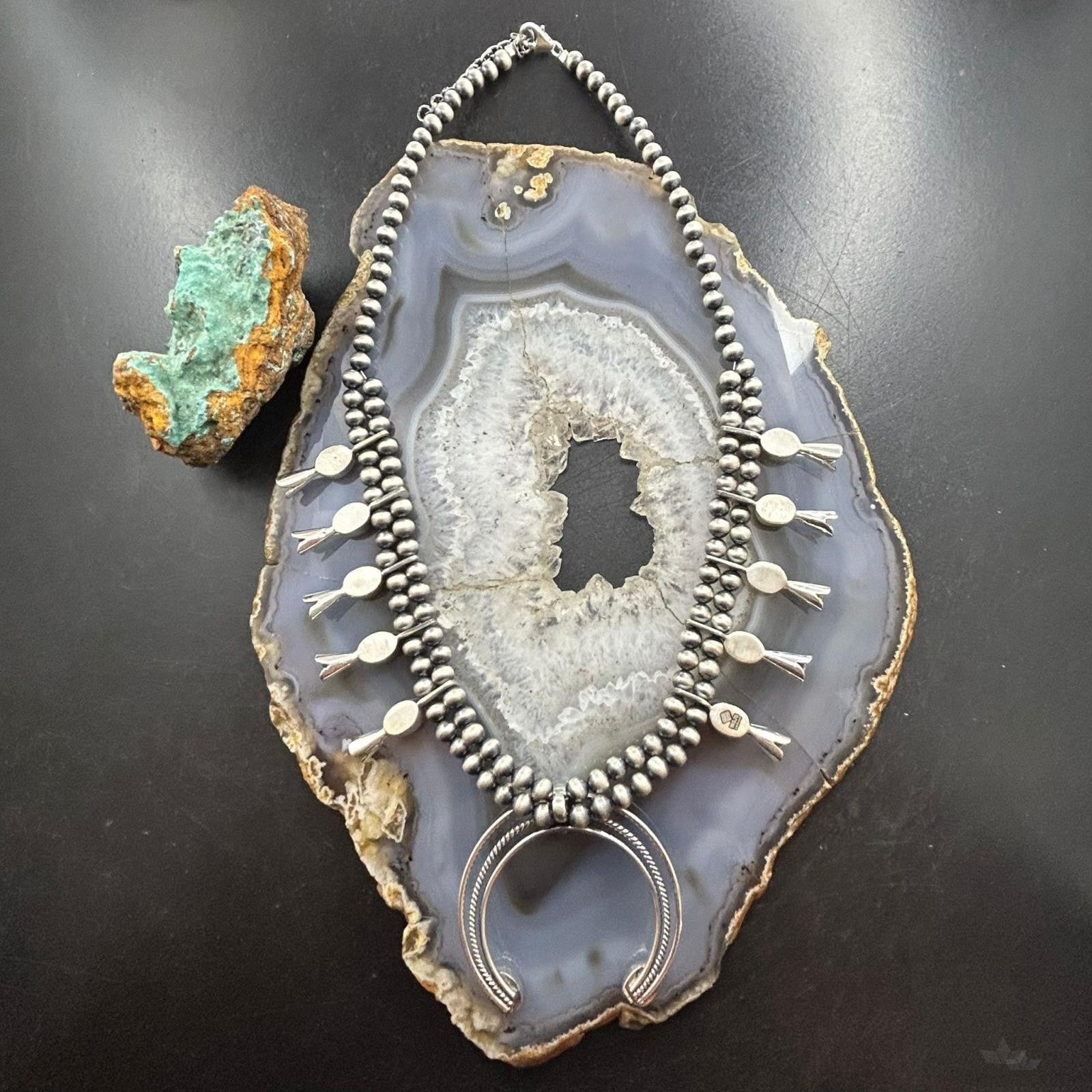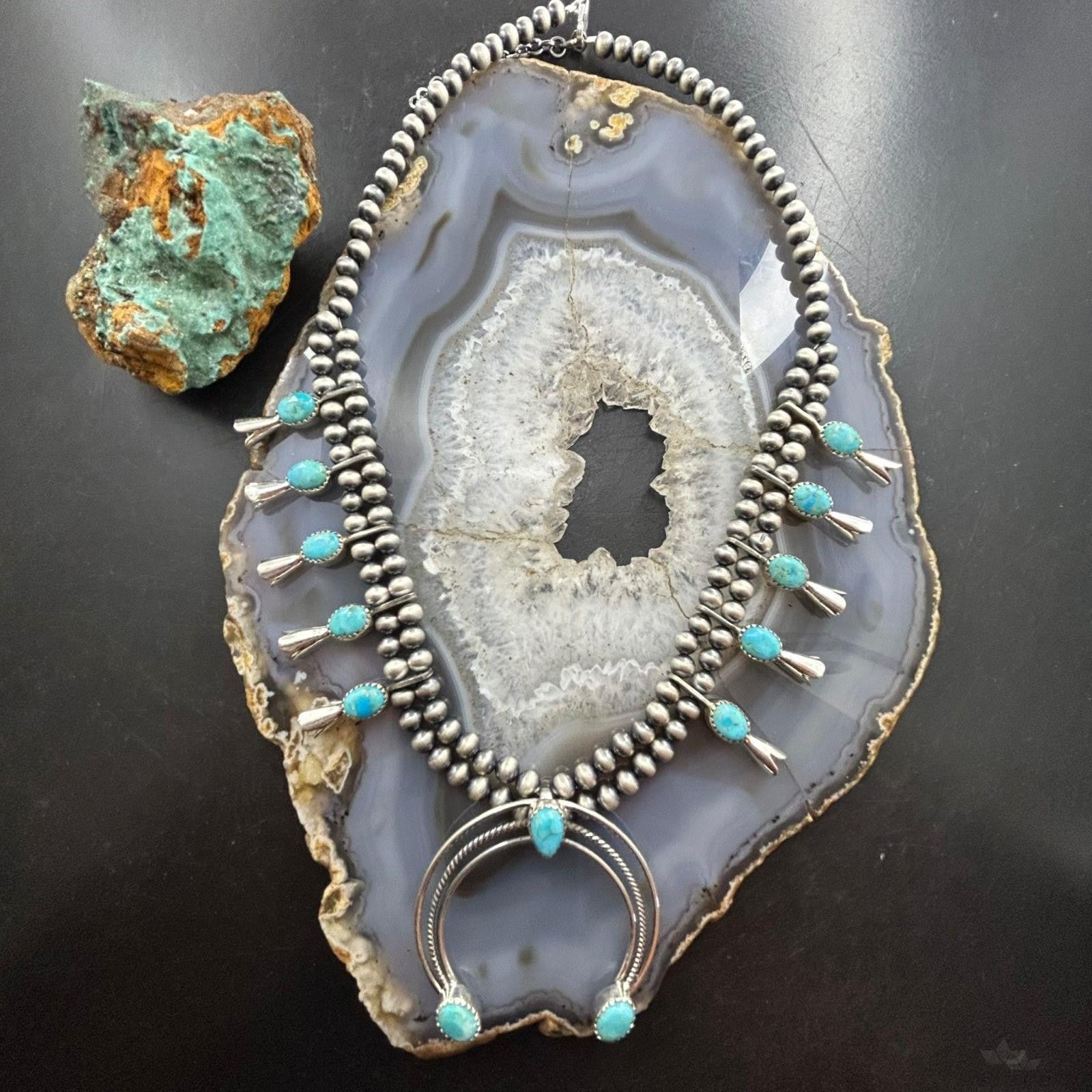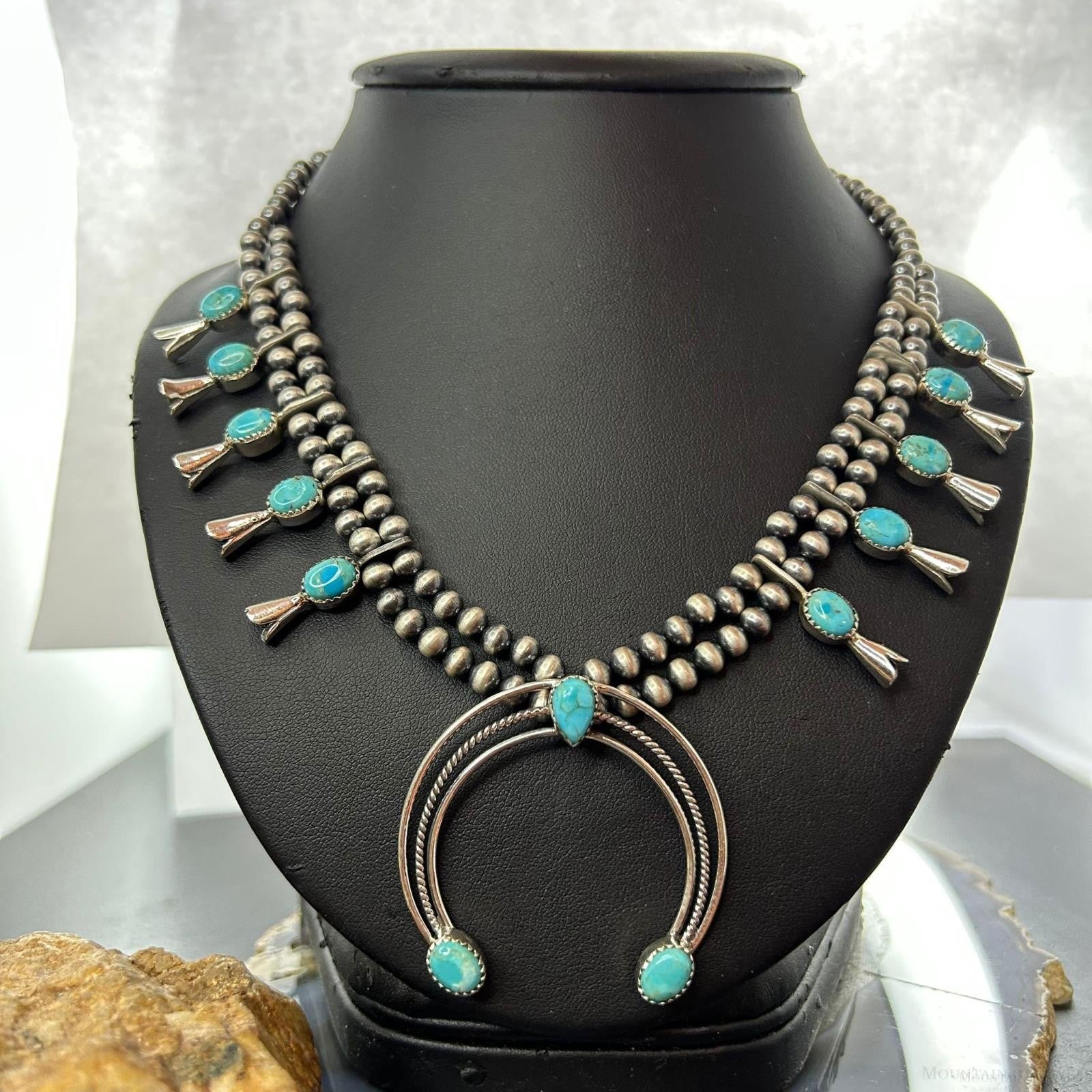 Sterling Silver Southwestern Style Turquoise Squash Blossom Necklace For Women