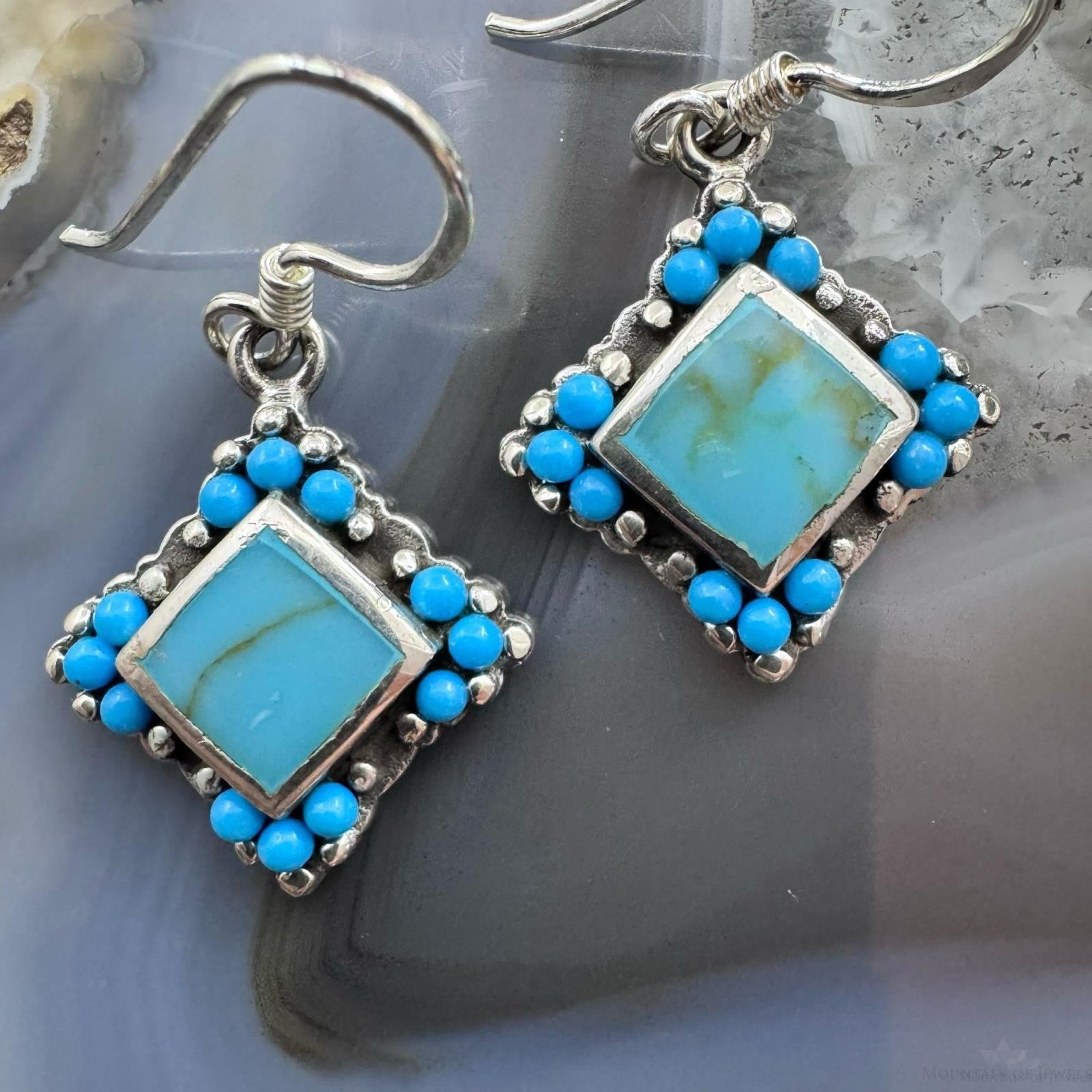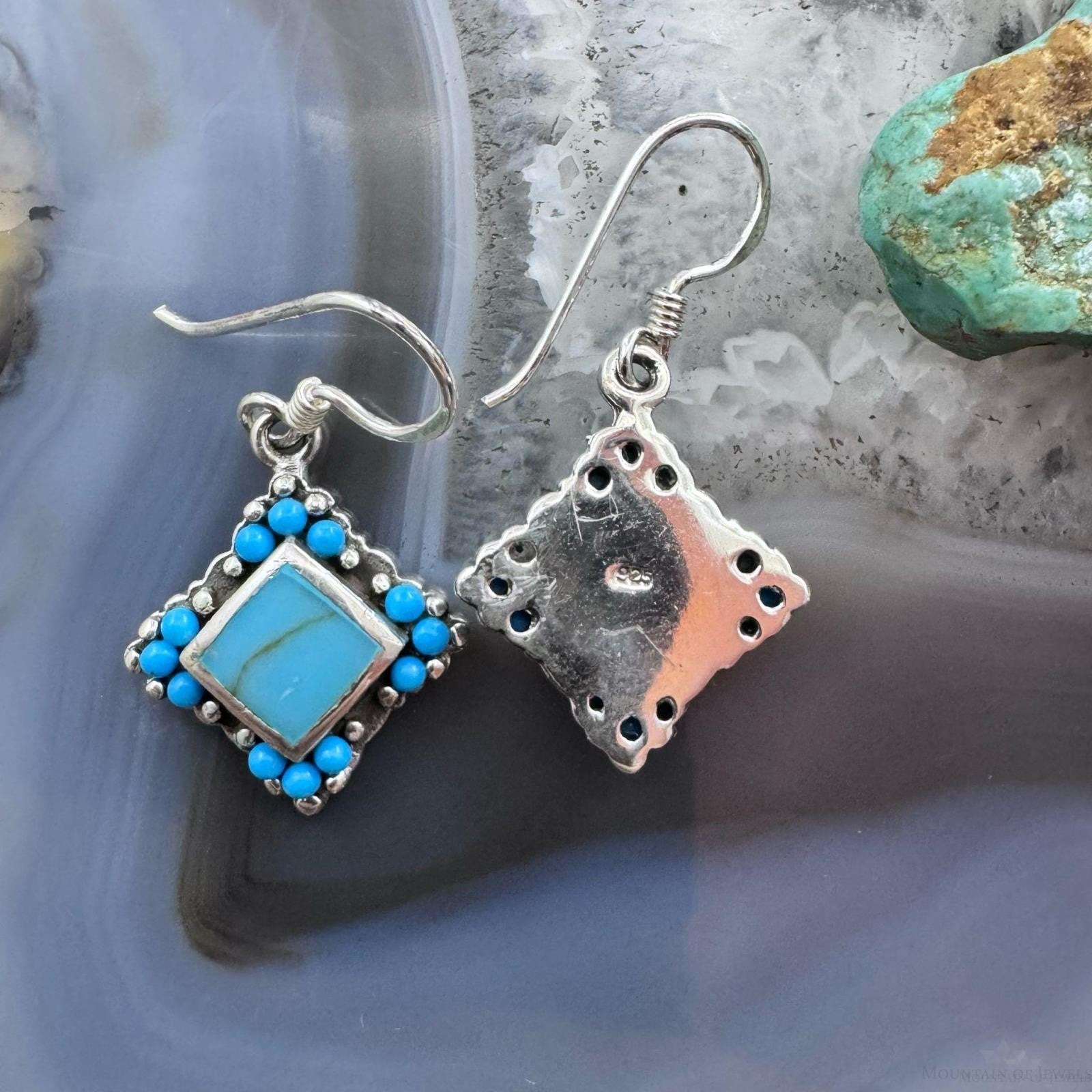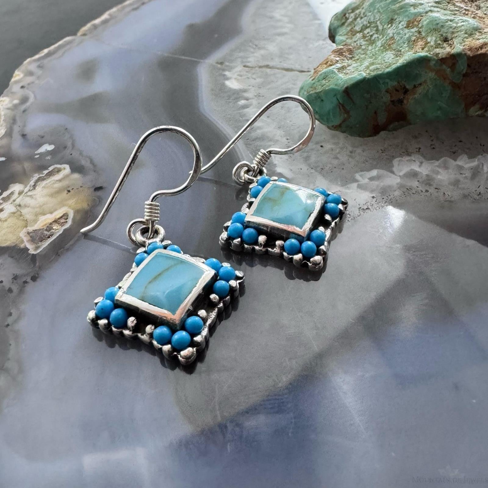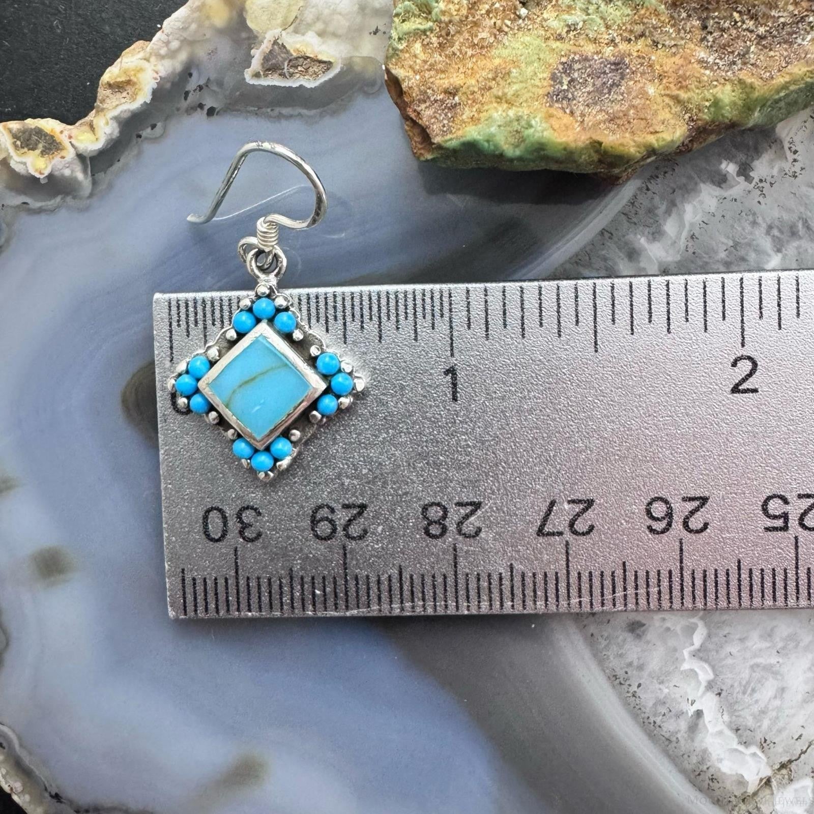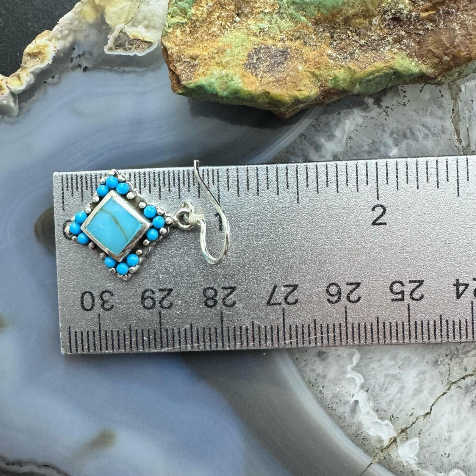 Sterling Silver Southwestern Style Turquoise Tiny Dangle Earrings For Women