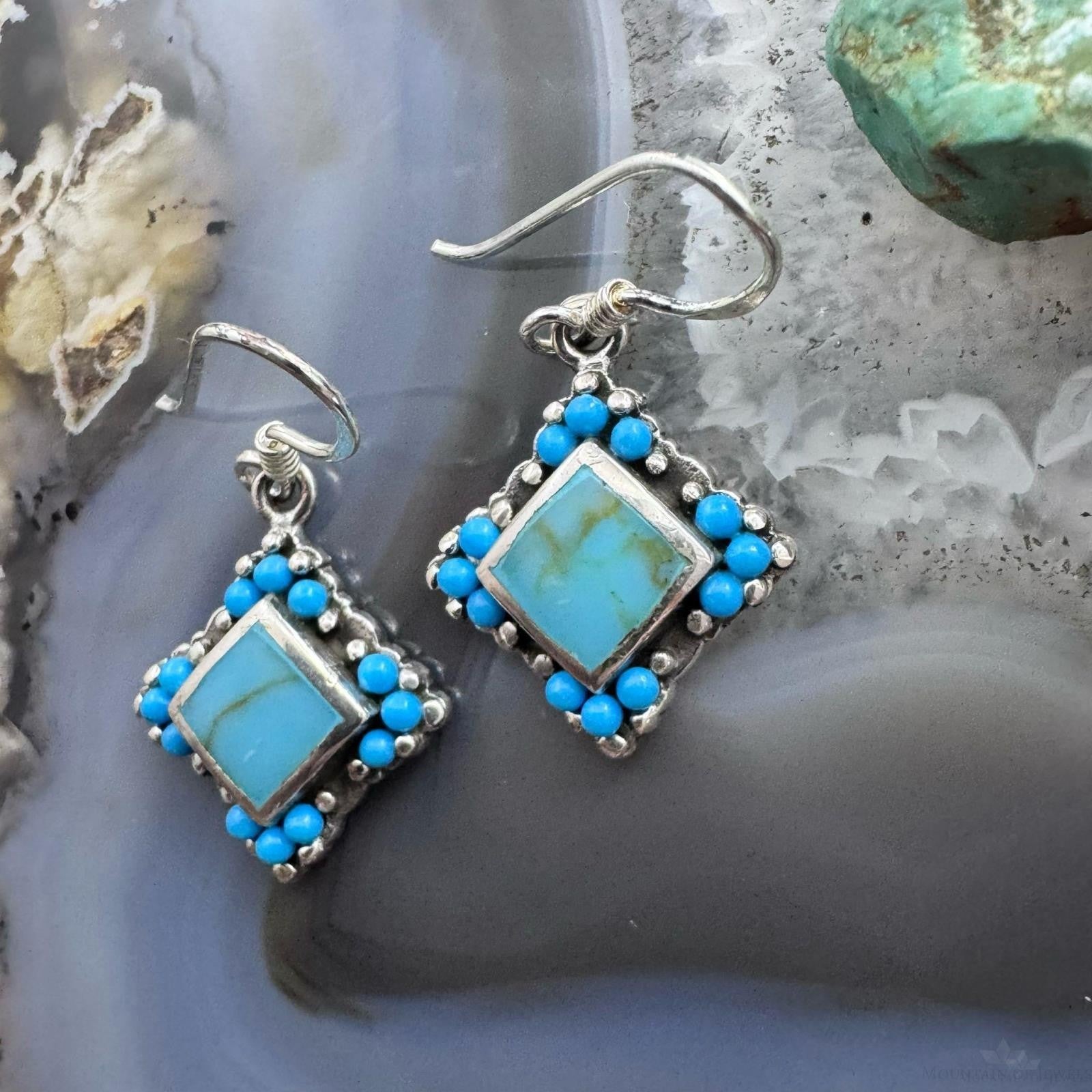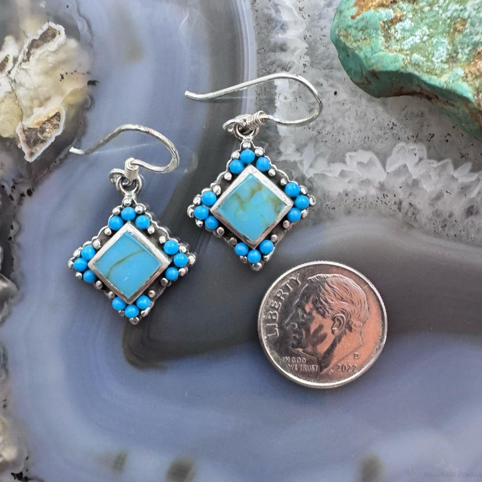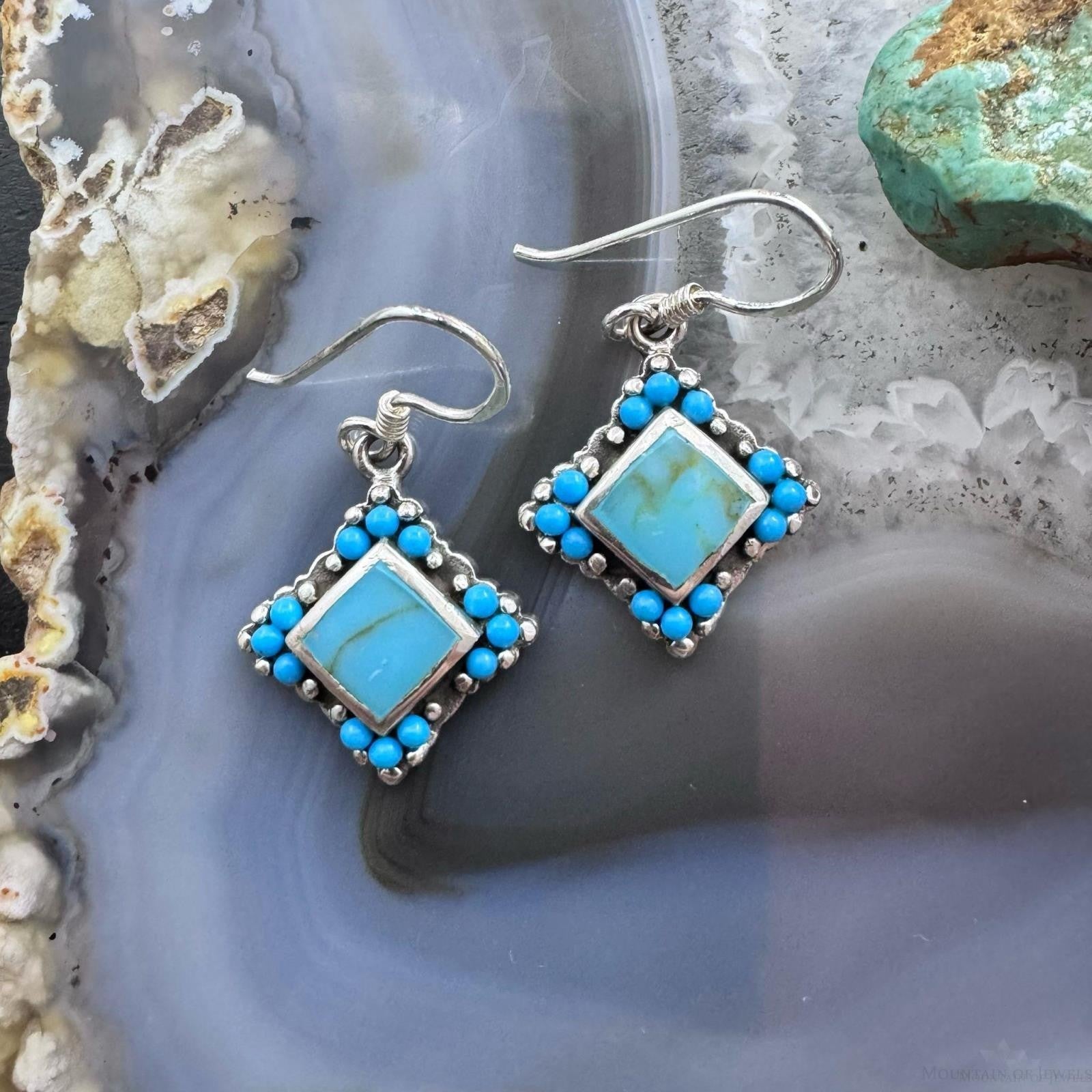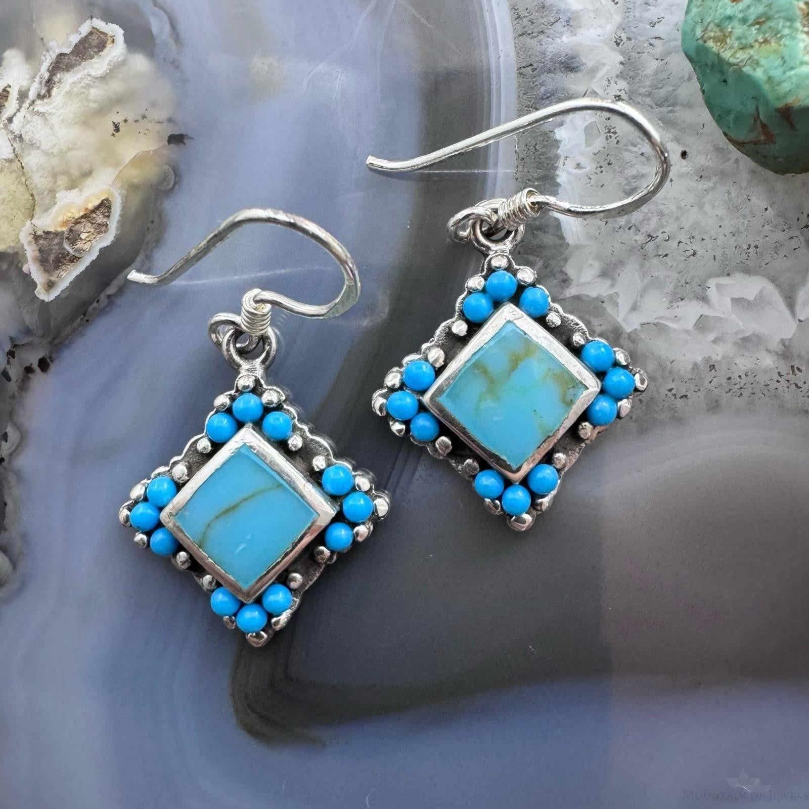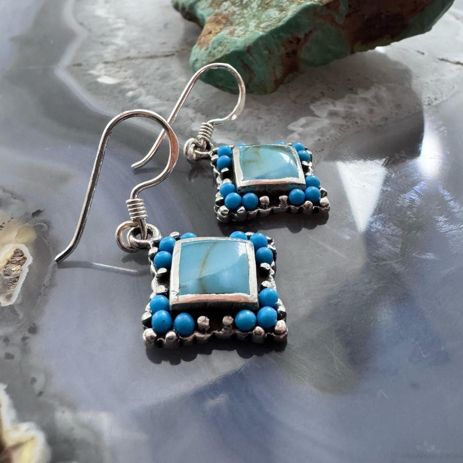 Sterling Silver Southwestern Style Turquoise Tiny Dangle Earrings For Women