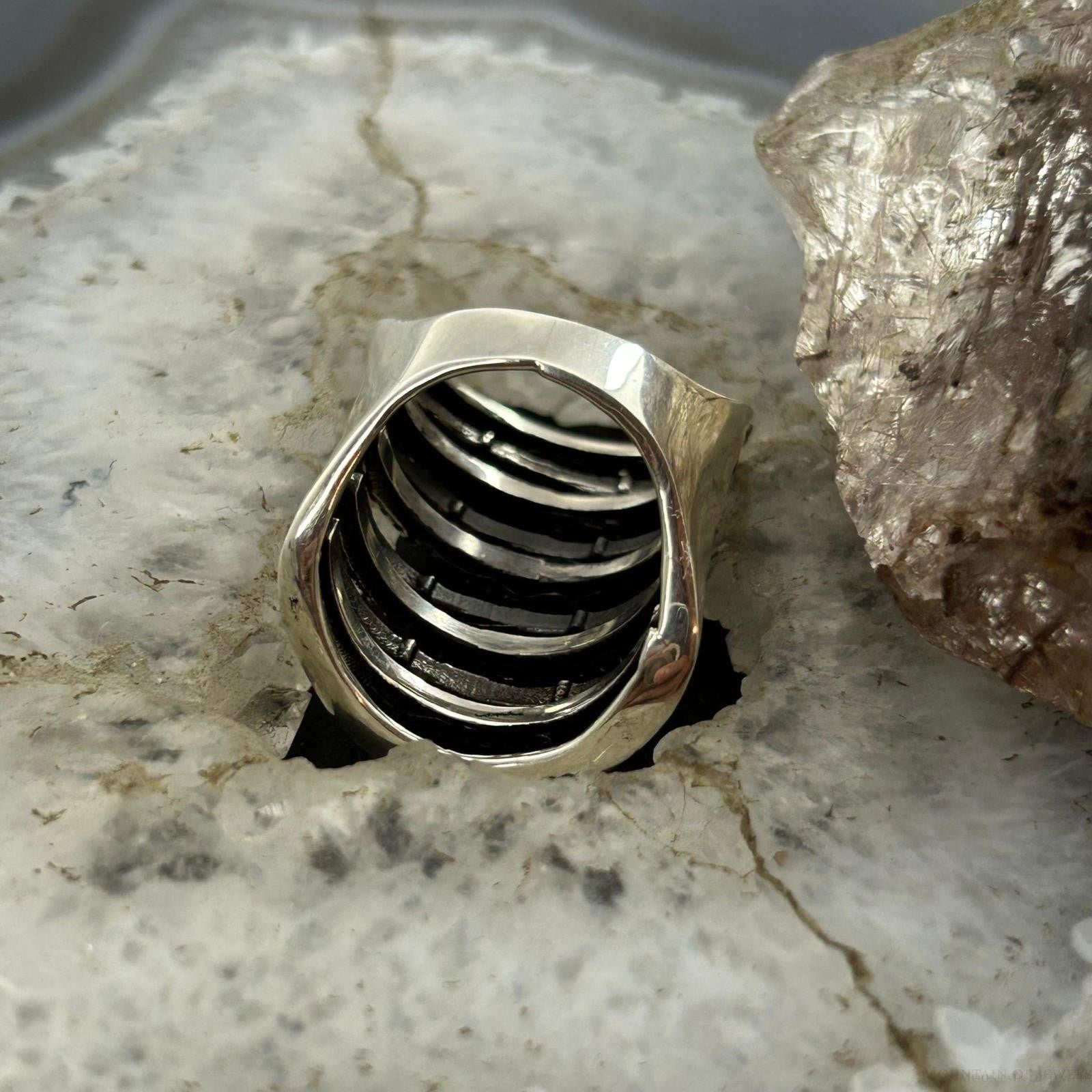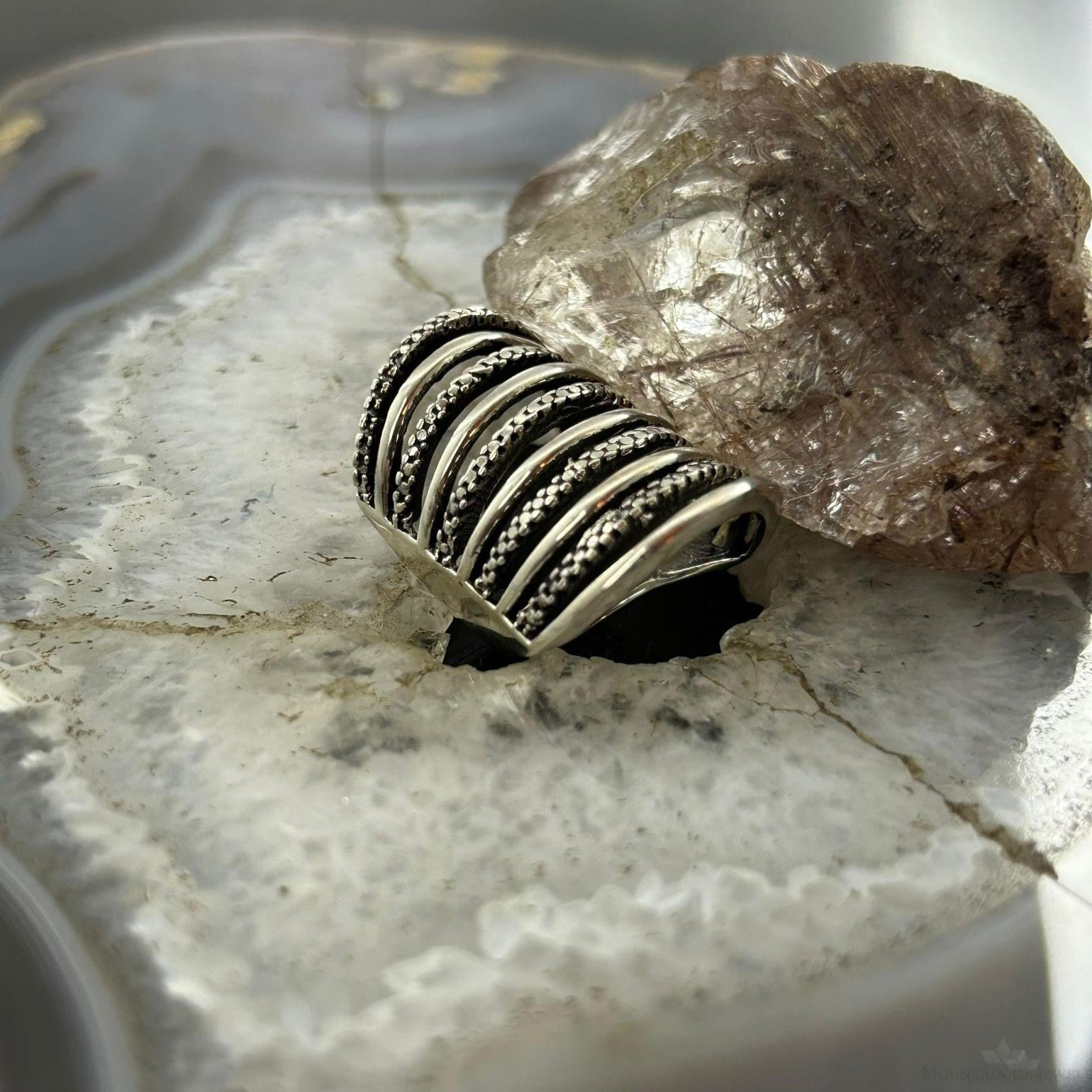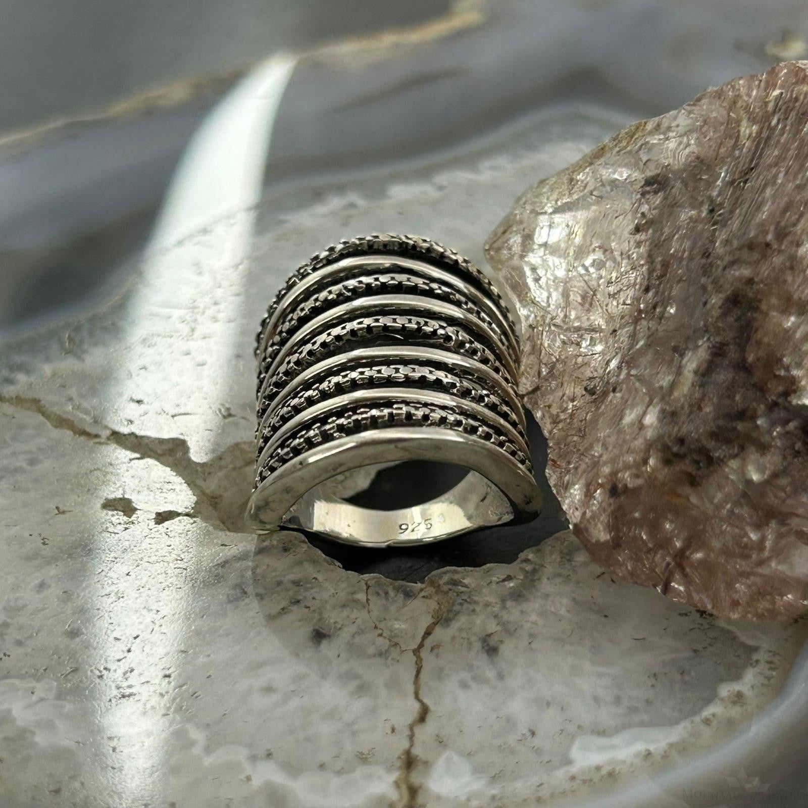 Sterling Silver Stripes Stacked Dome Modern Ring For Women, Taxco Mexico
