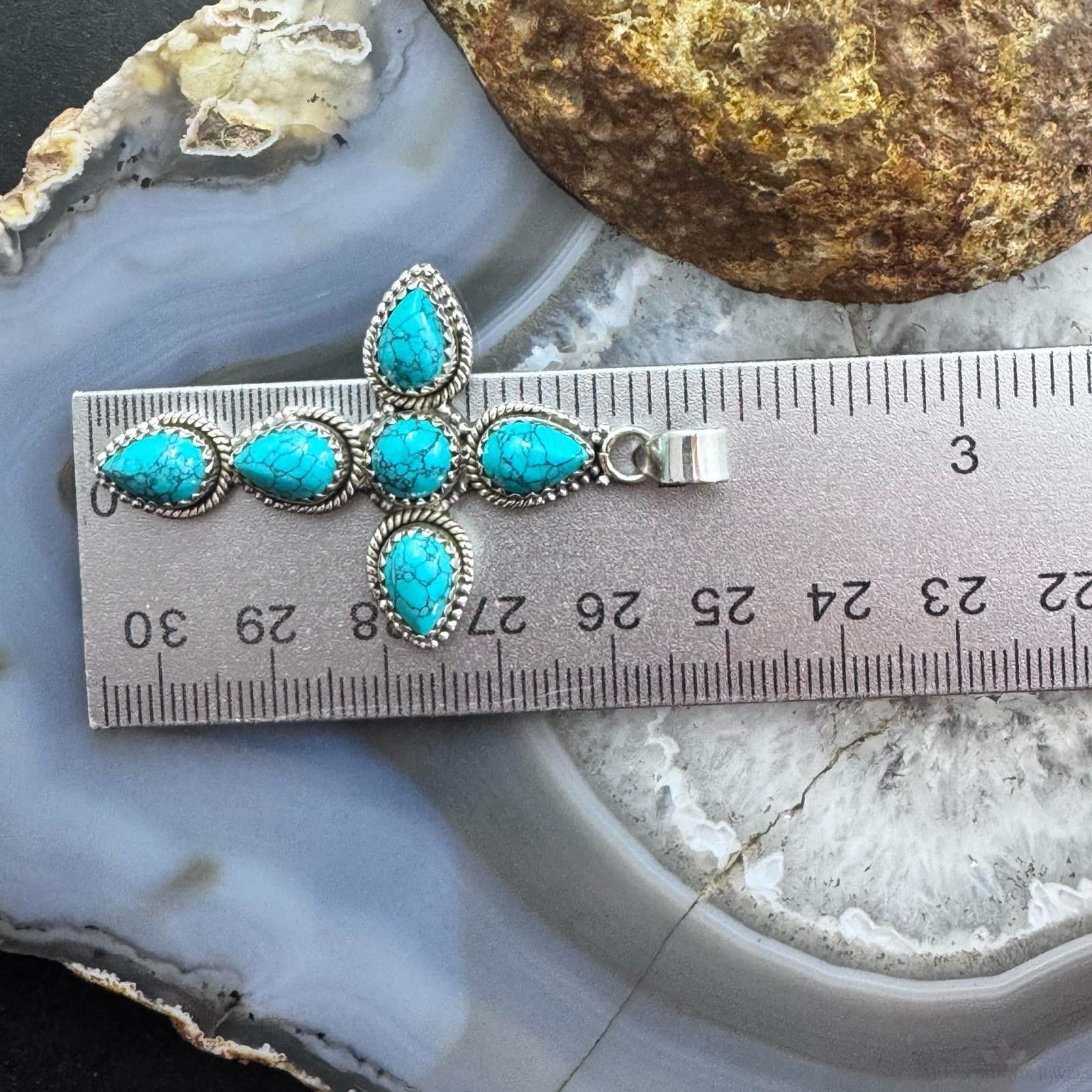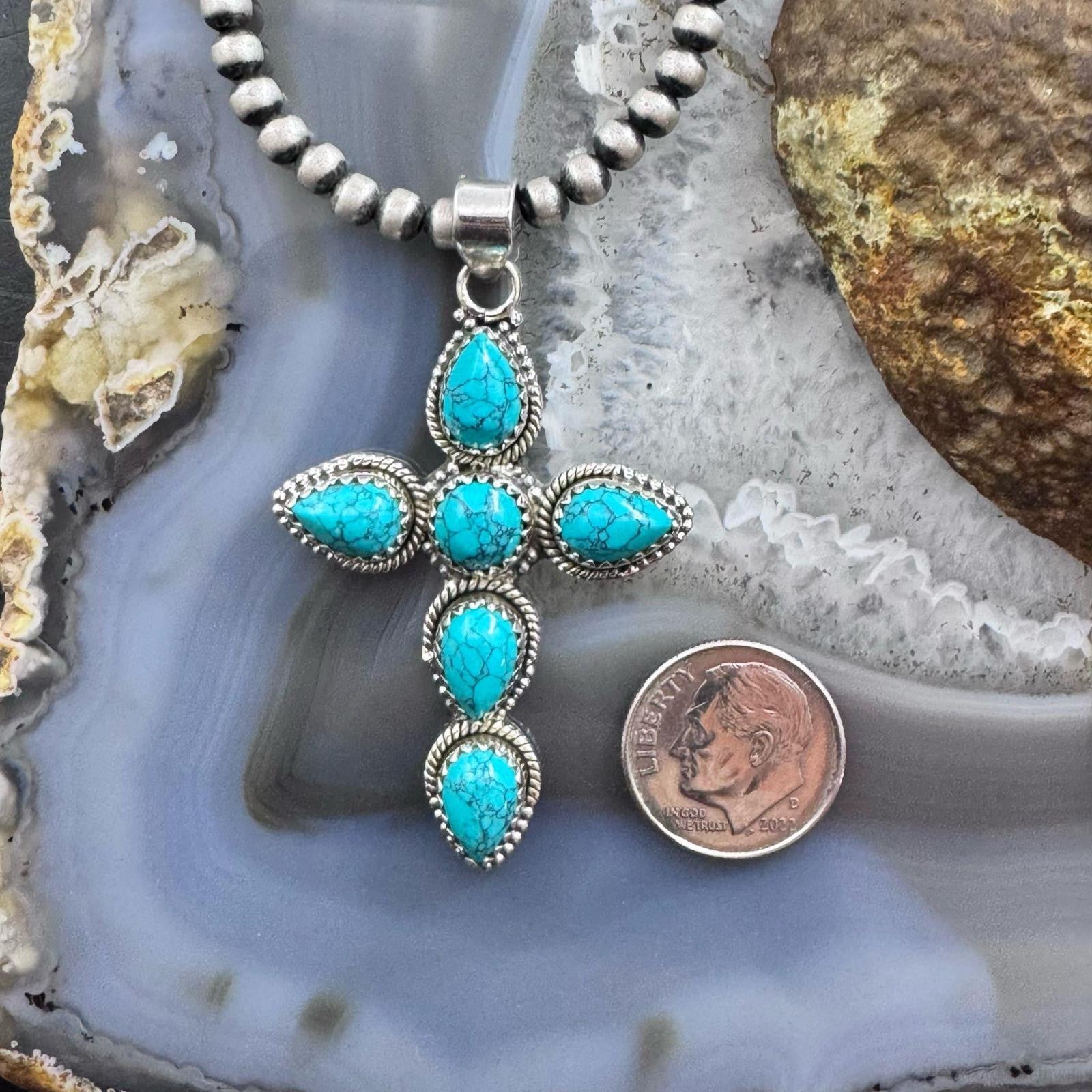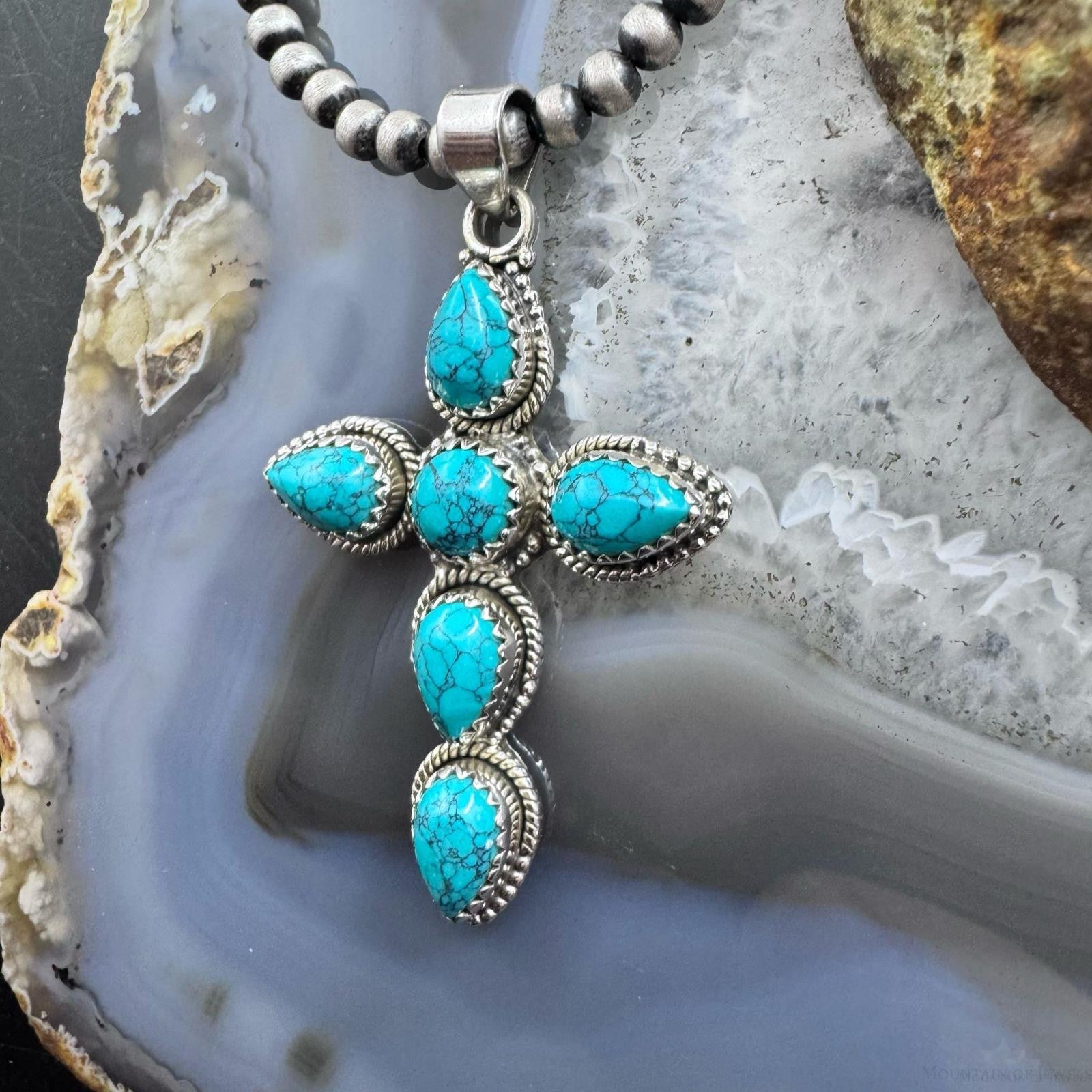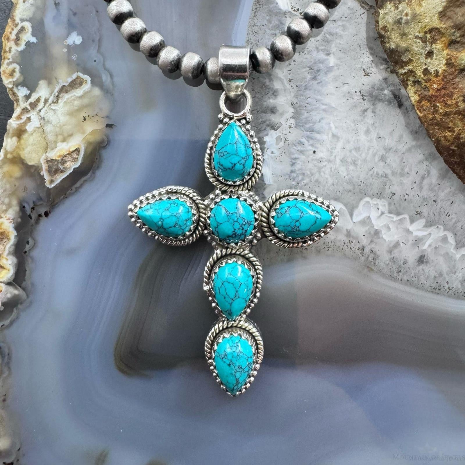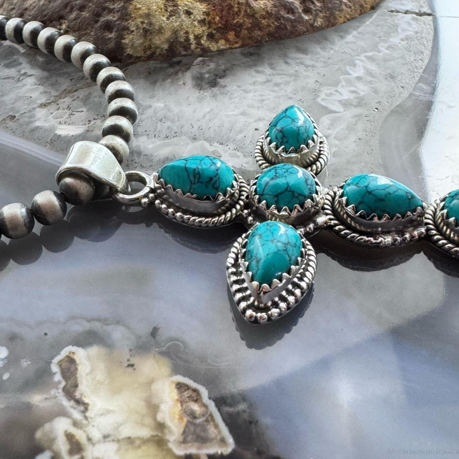 Sterling Silver Southwestern Style 6 Green Howlite Decorated Cross Pendant For Women