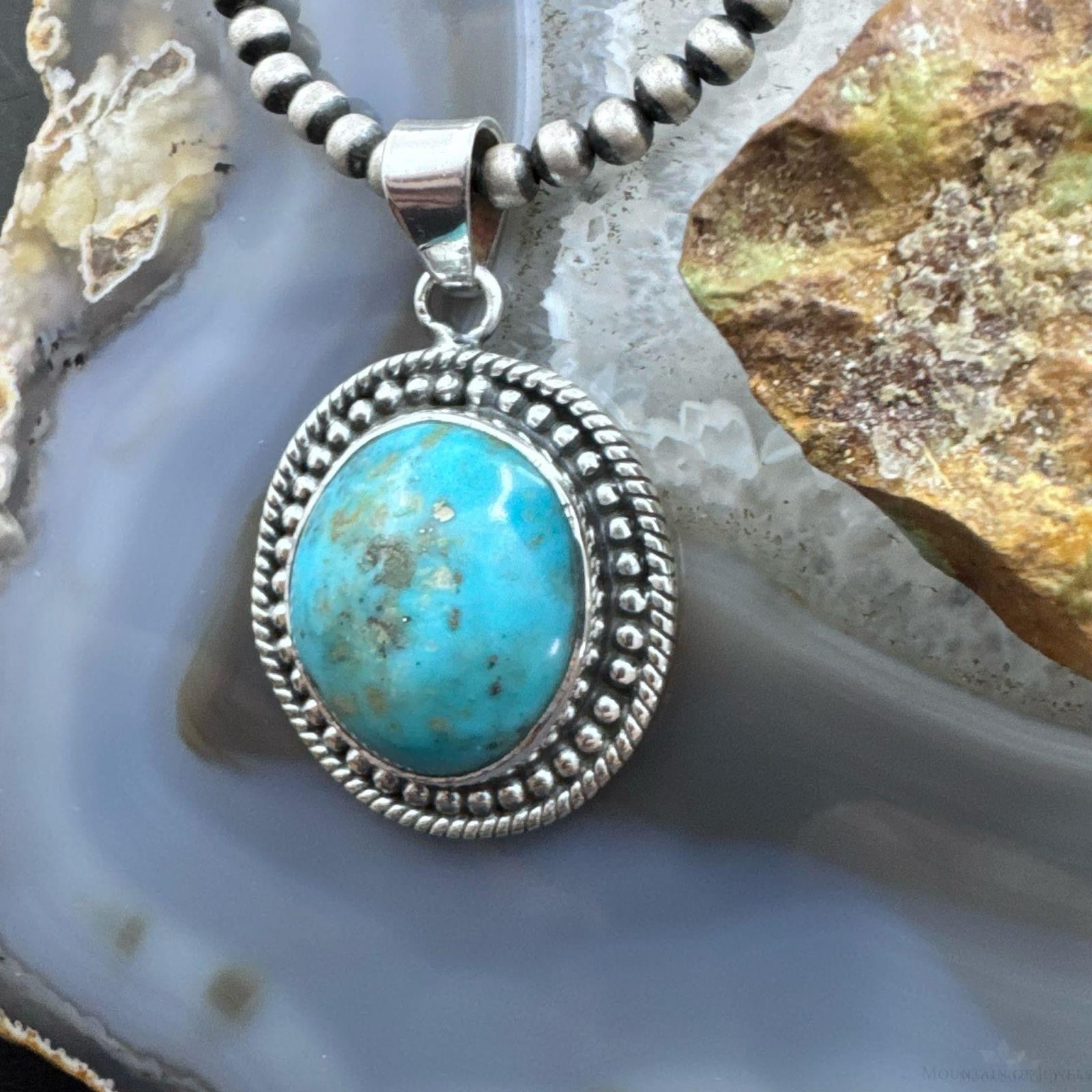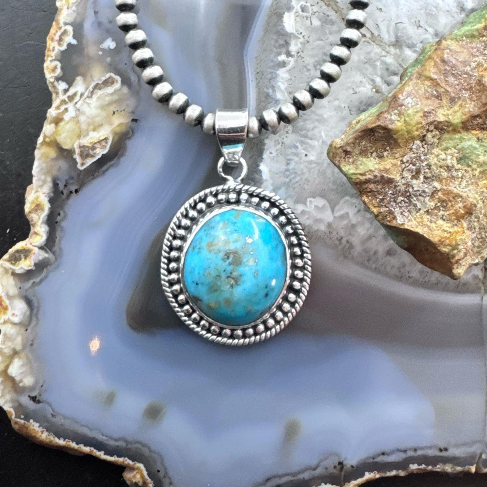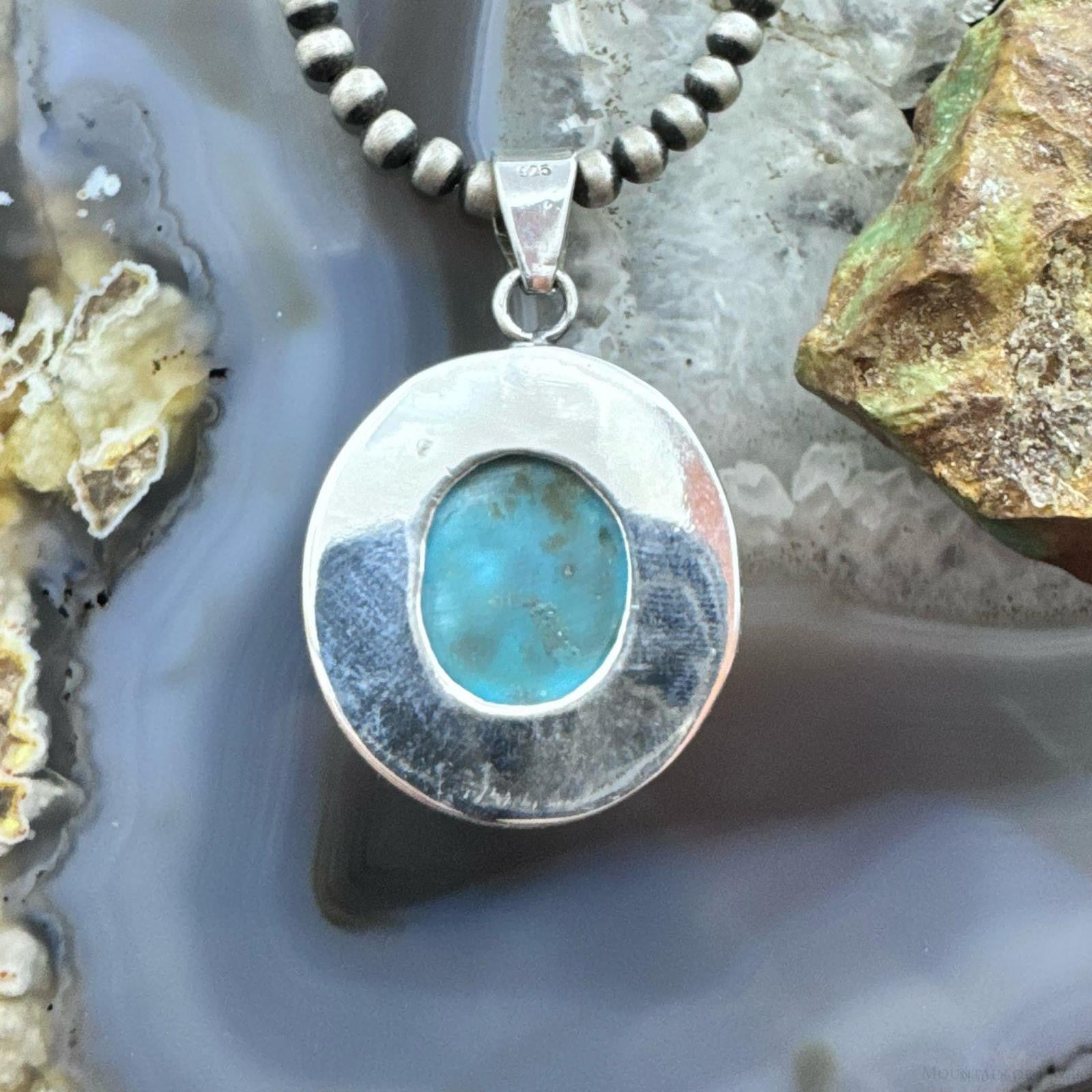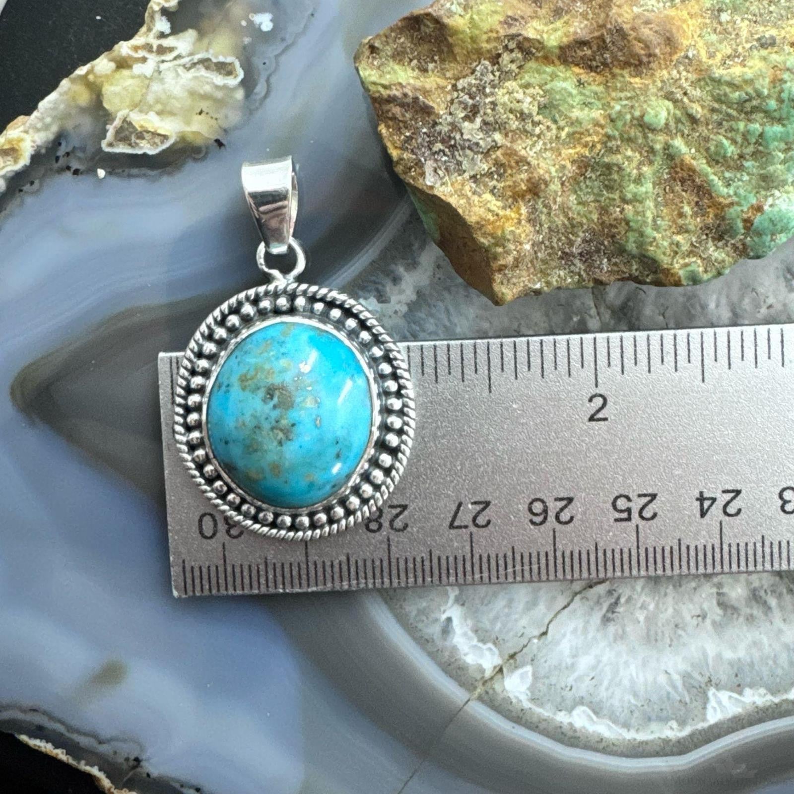 Sterling Silver Southwestern Style Round Tibetan Turquoise Decorated Pendant For Women