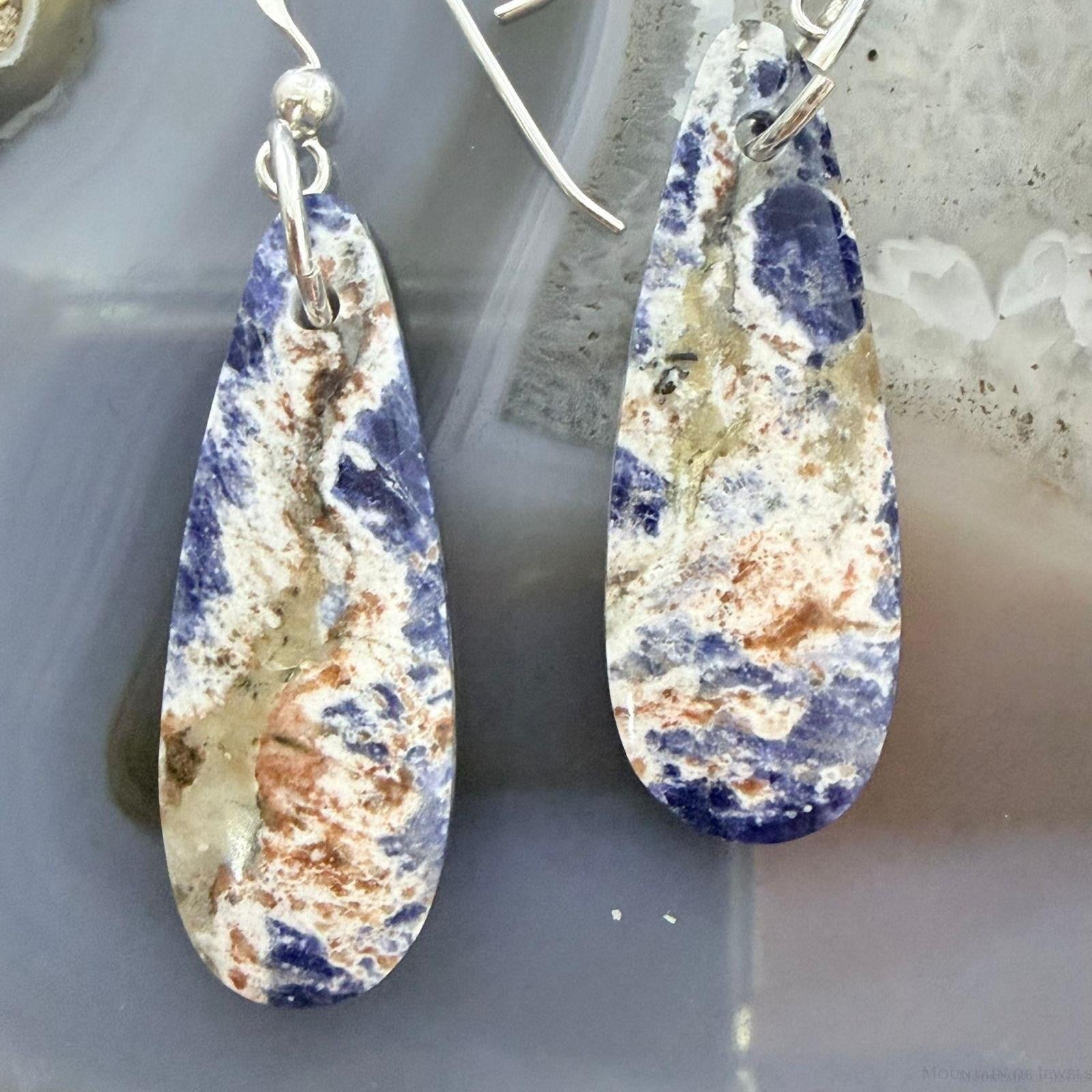 Sterling Silver Teardrop Sodalite Slab Dangle Earrings For Women #504