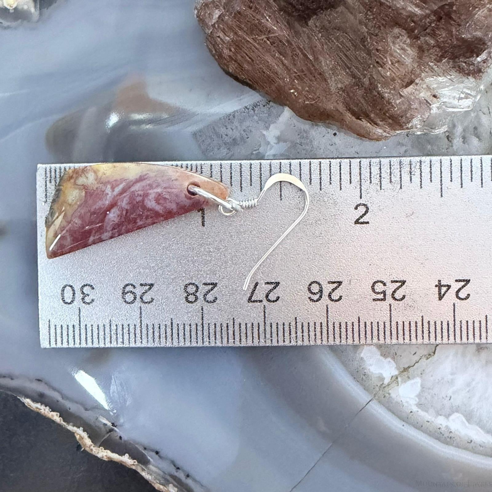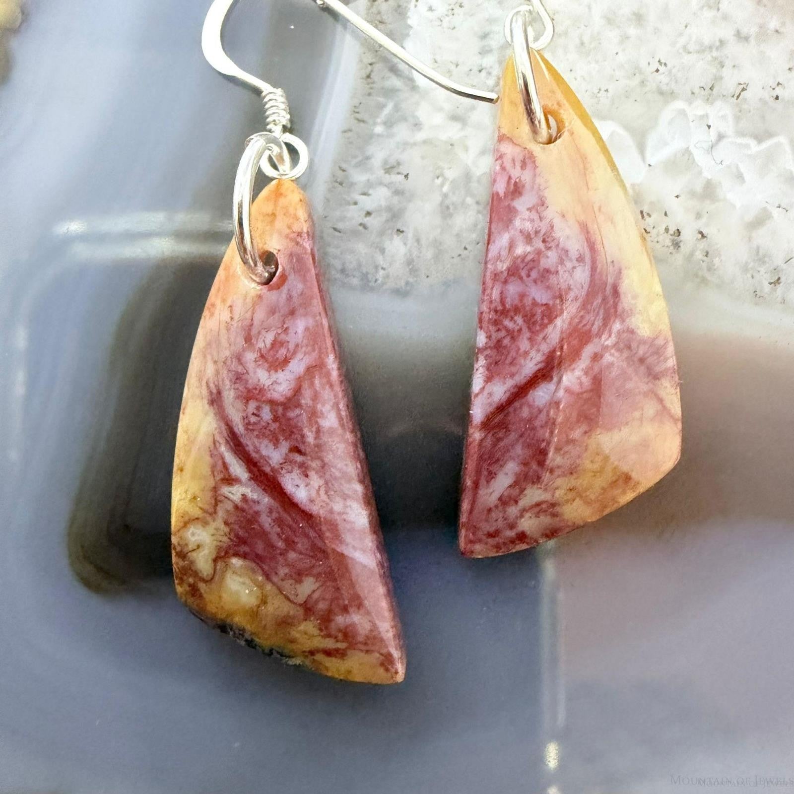 Sterling Silver Triangle Plum Moss Agate Slab Dangle Earrings For Women #506