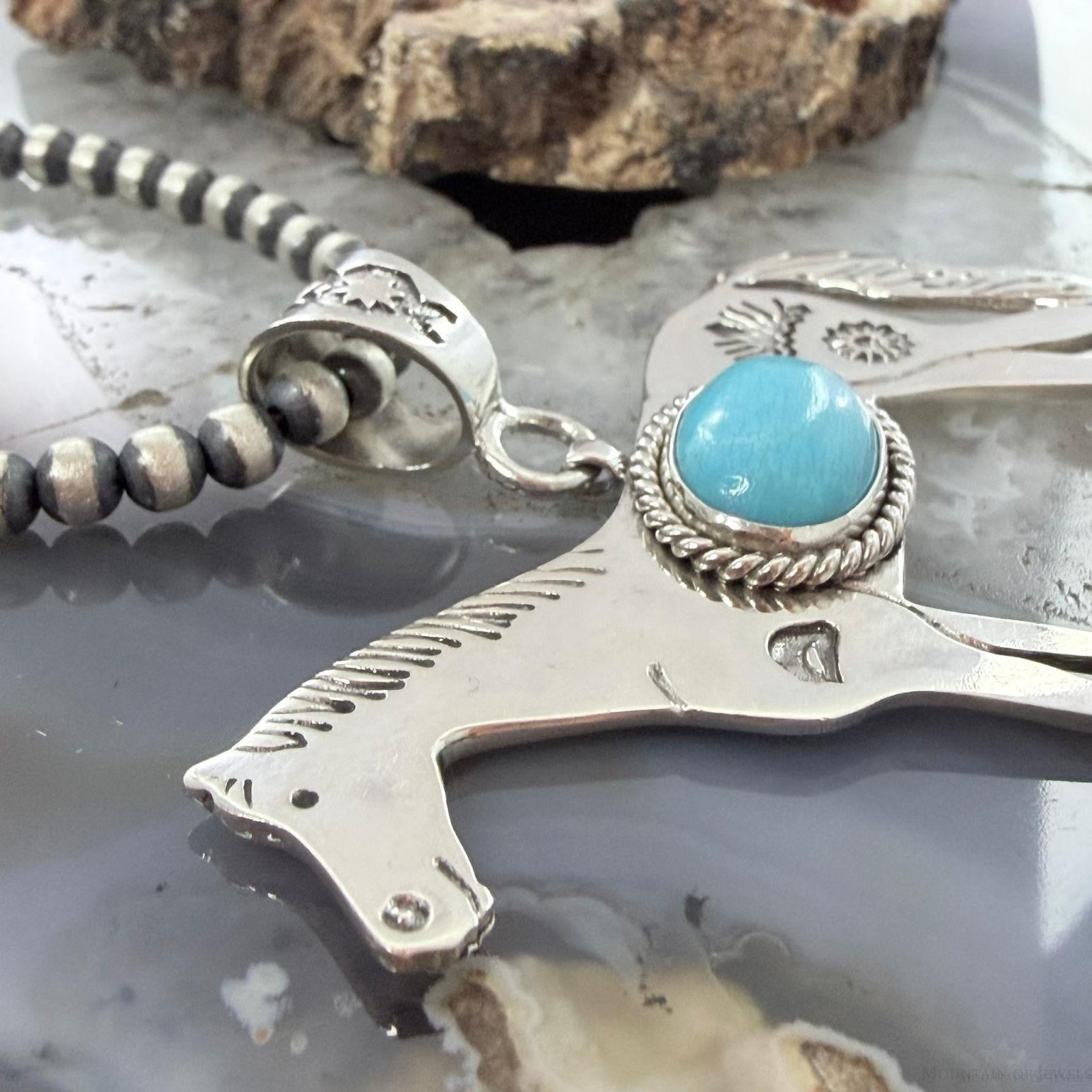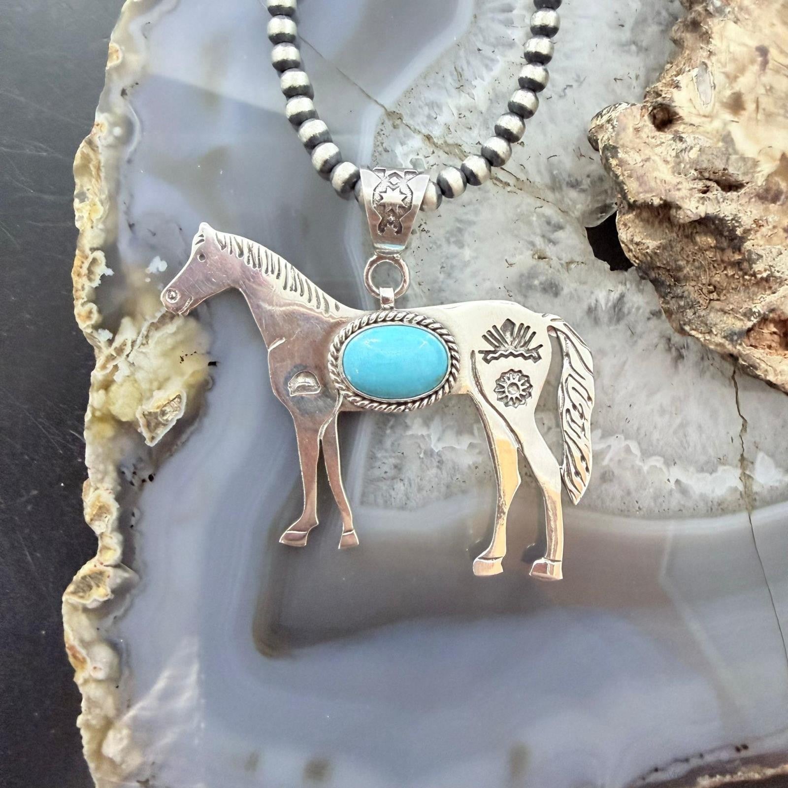 Sterling Silver Turquoise Stamped w/Indigenous Symbols Horse Unisex Pendant