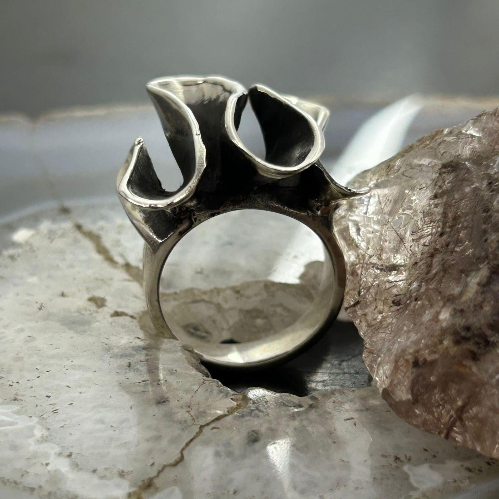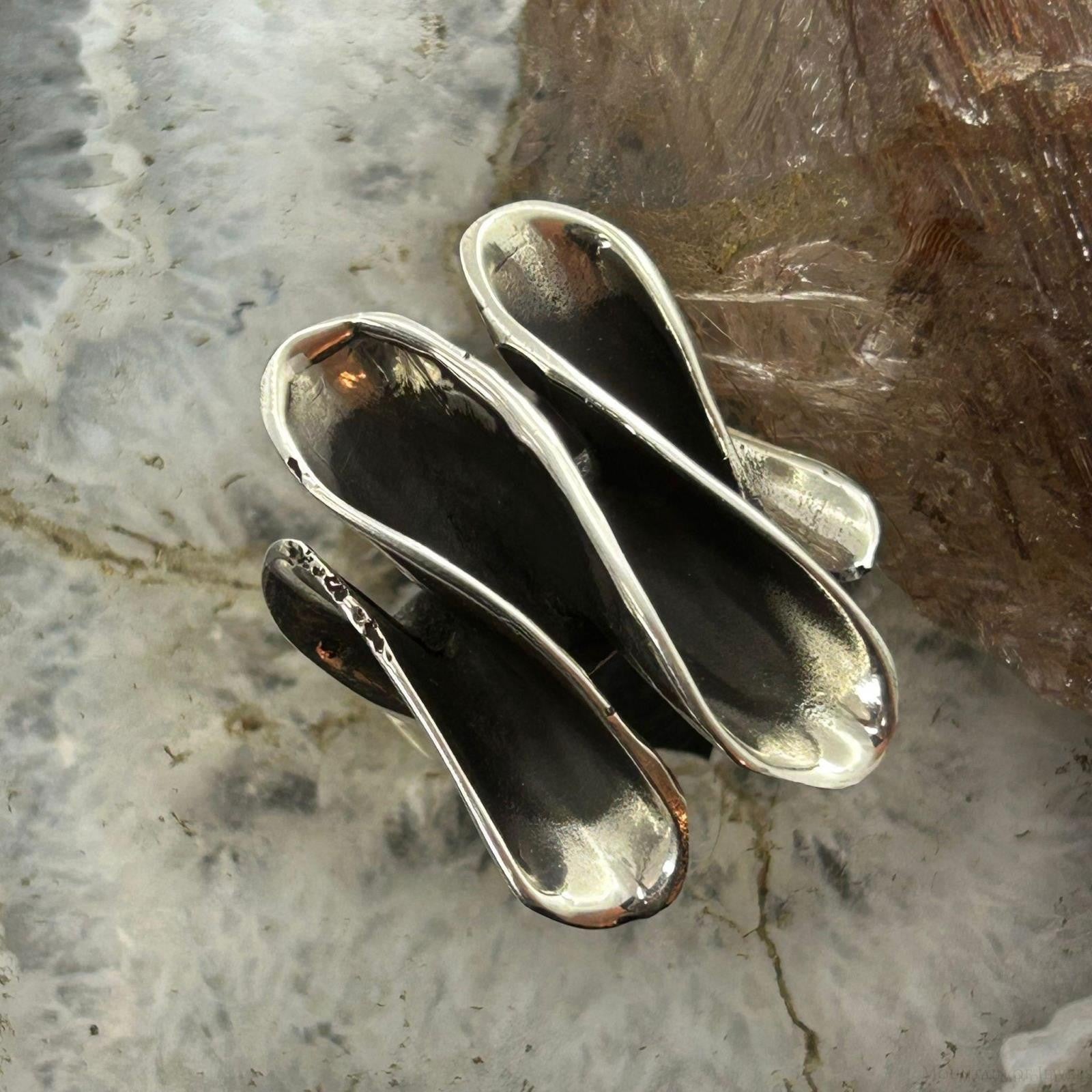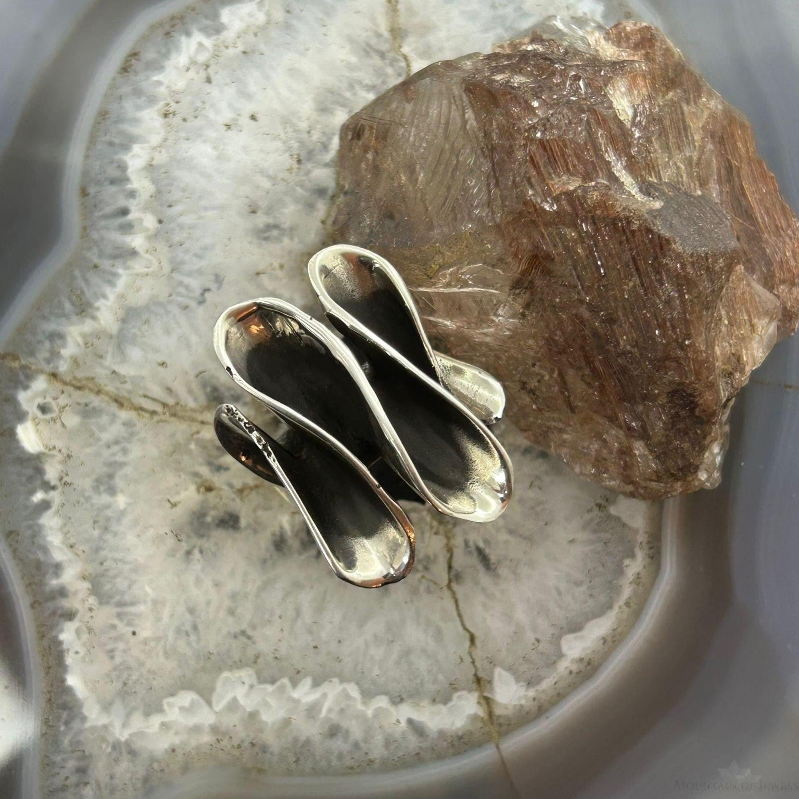 Sterling Silver Wave Design Modern Fashion Ring Sz 9.75 For Women, Taxco Mexico