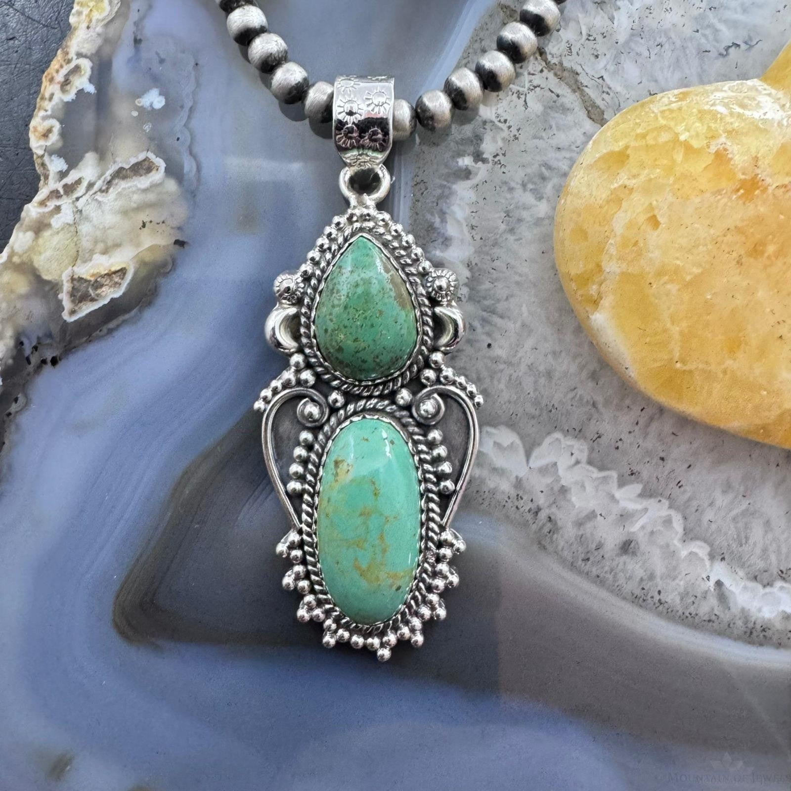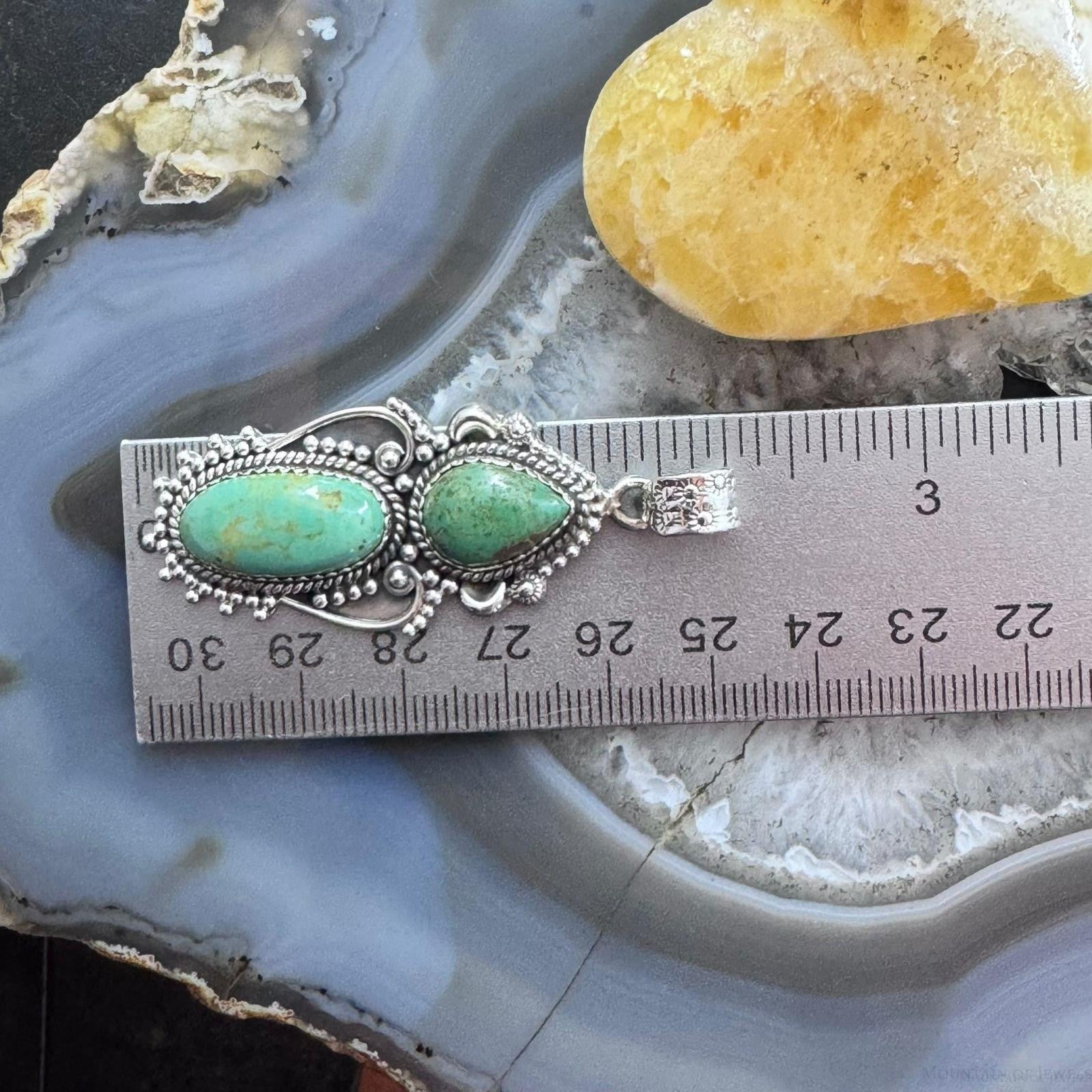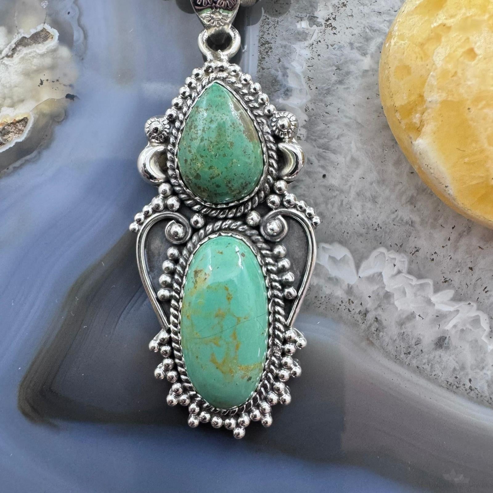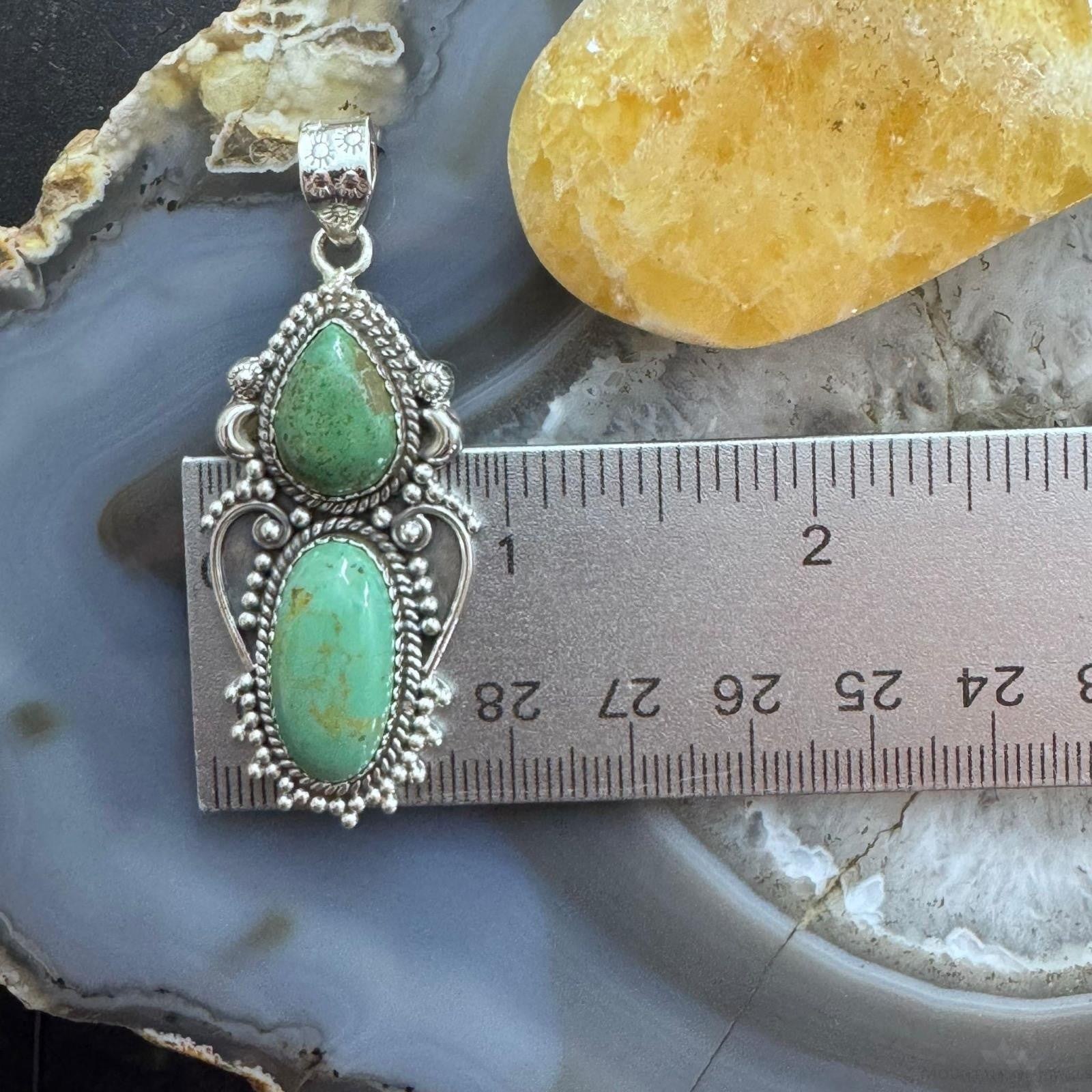 Sterling Silver Southwestern Style 2 Green Turquoise Decorated Pendant For Women
