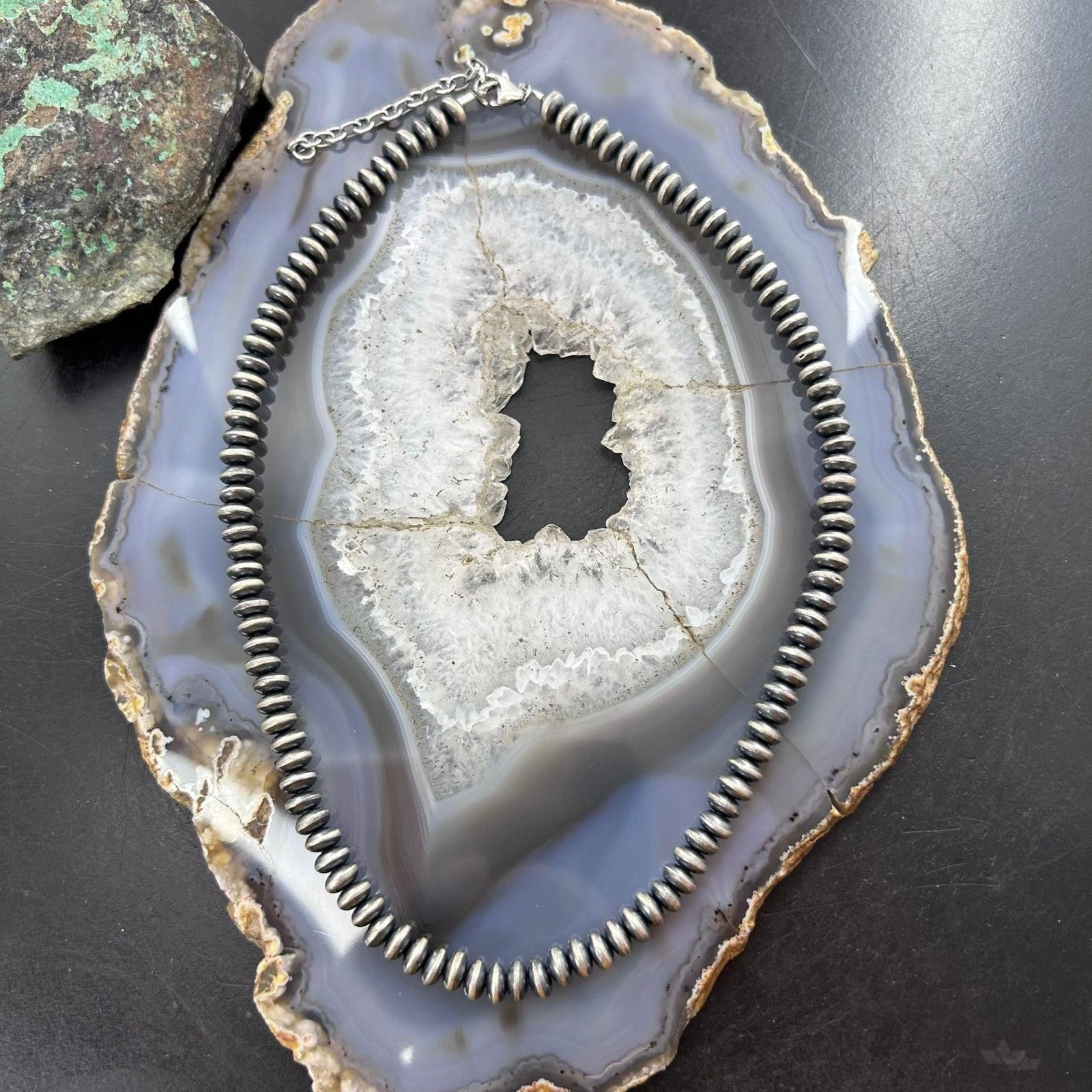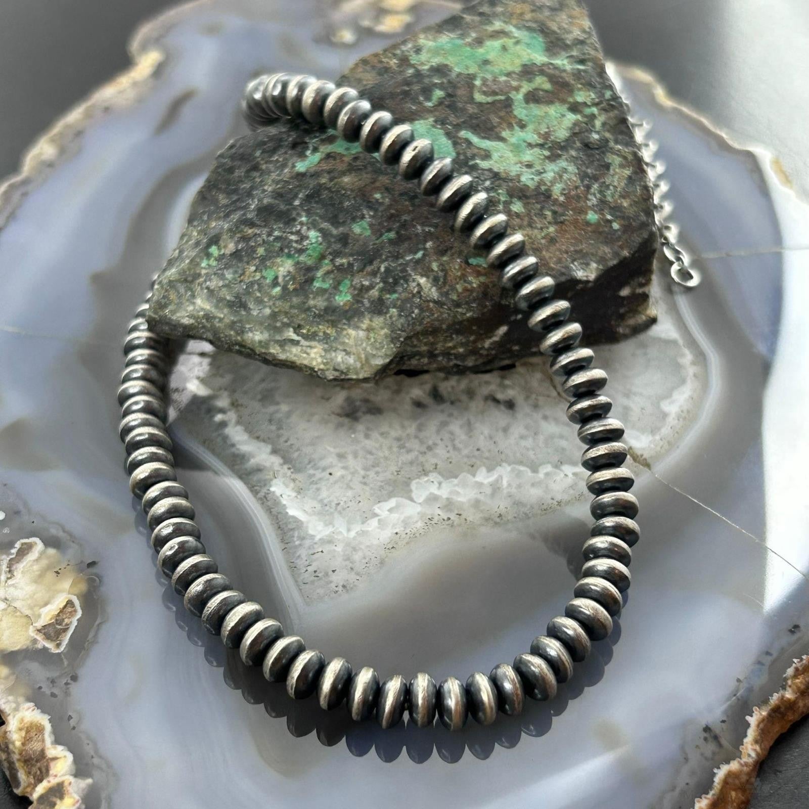 Sterling Silver Southwestern Style 6 mm Saucer Navajo Pearl Beads 16"-18" Necklace For Women