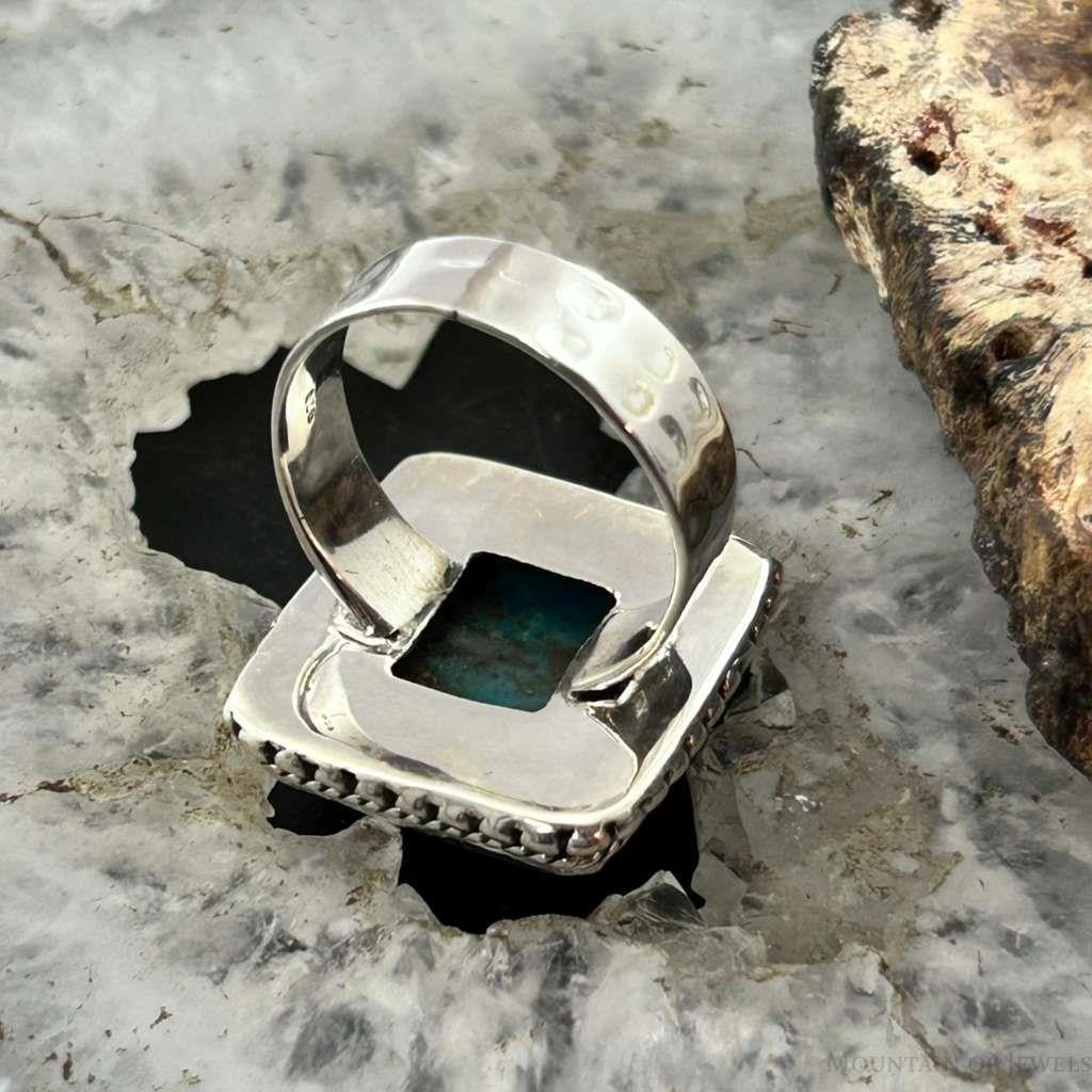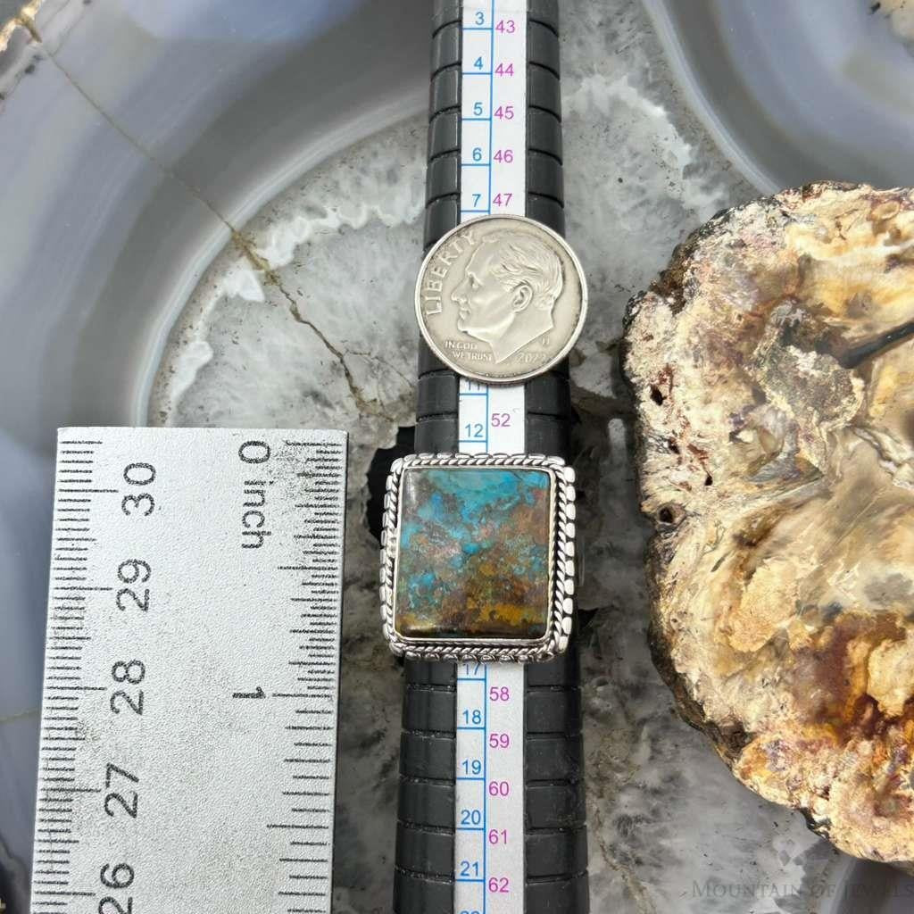 Sterling Silver Southwestern Style Chrysocolla Decorated Bar Ring Size 7.5 For Women