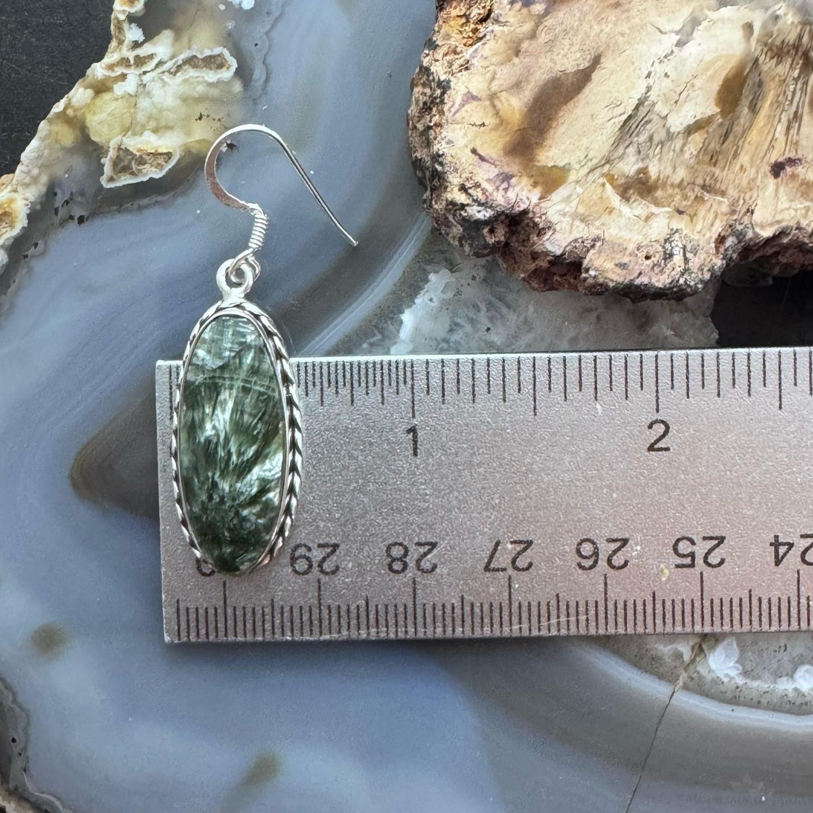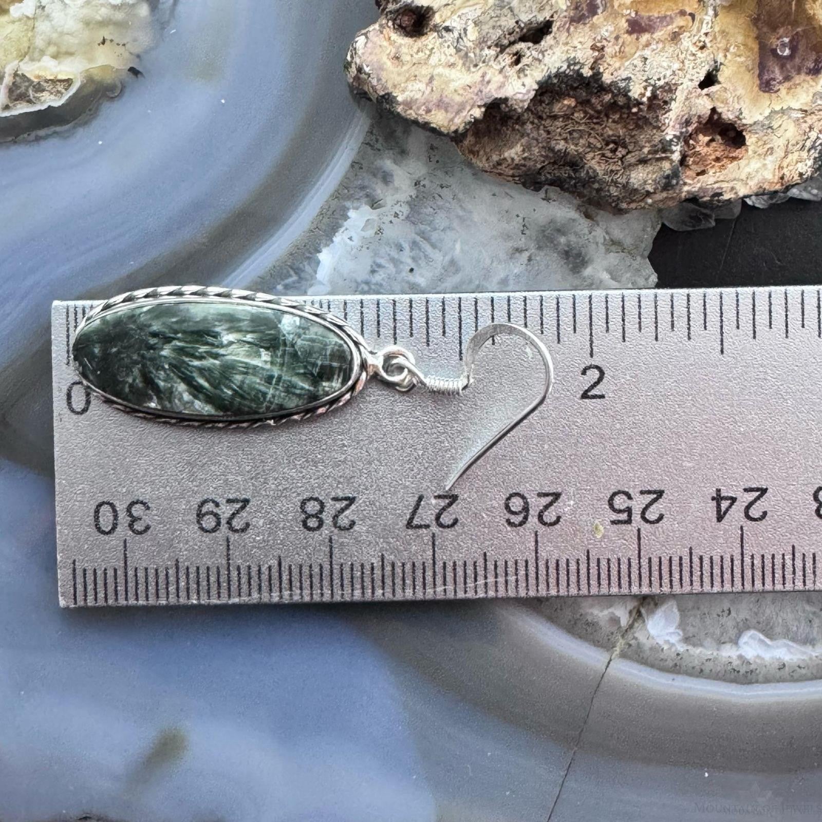 Sterling Silver Southwestern Style Elongated Oval Serpentine Dangle Earrings For Women