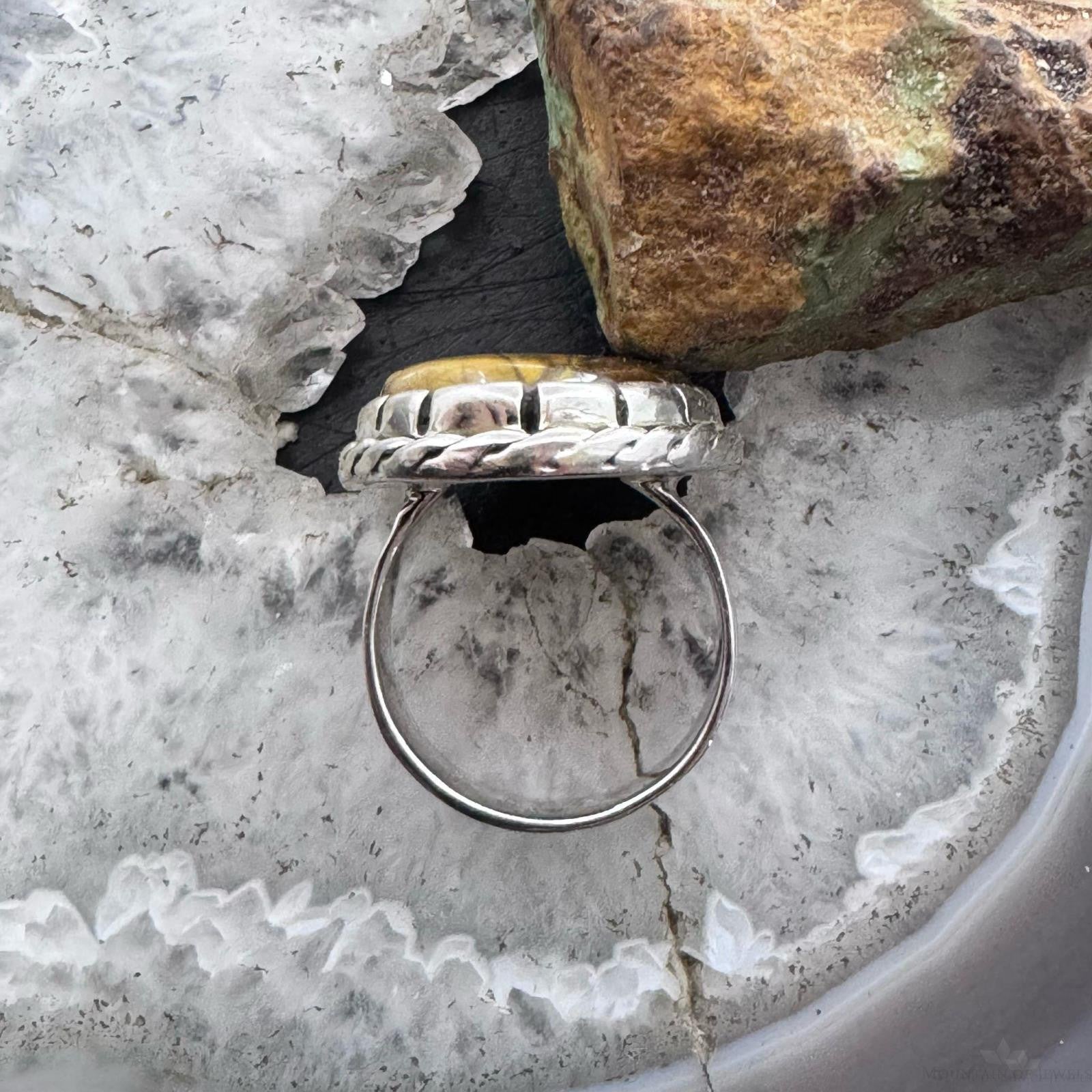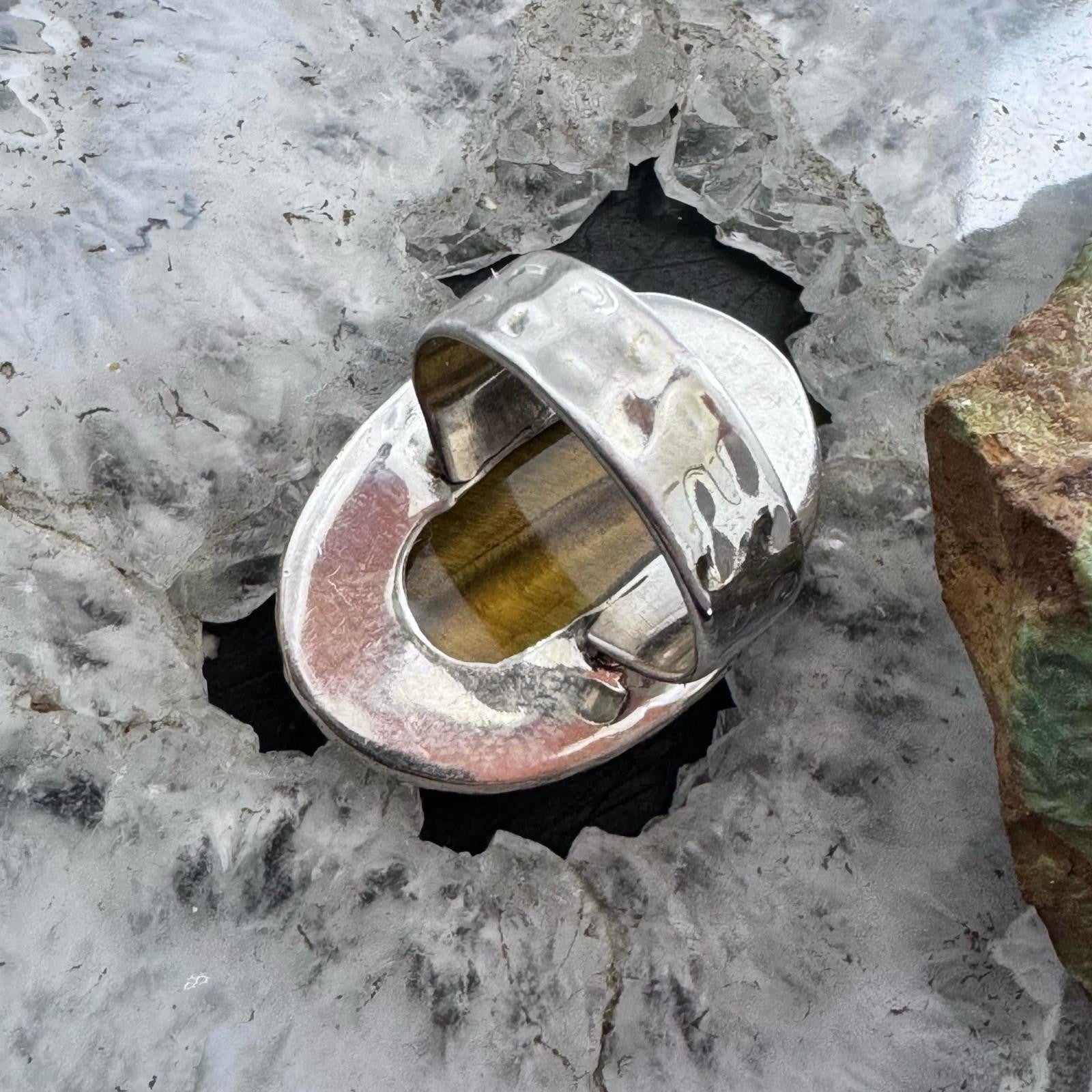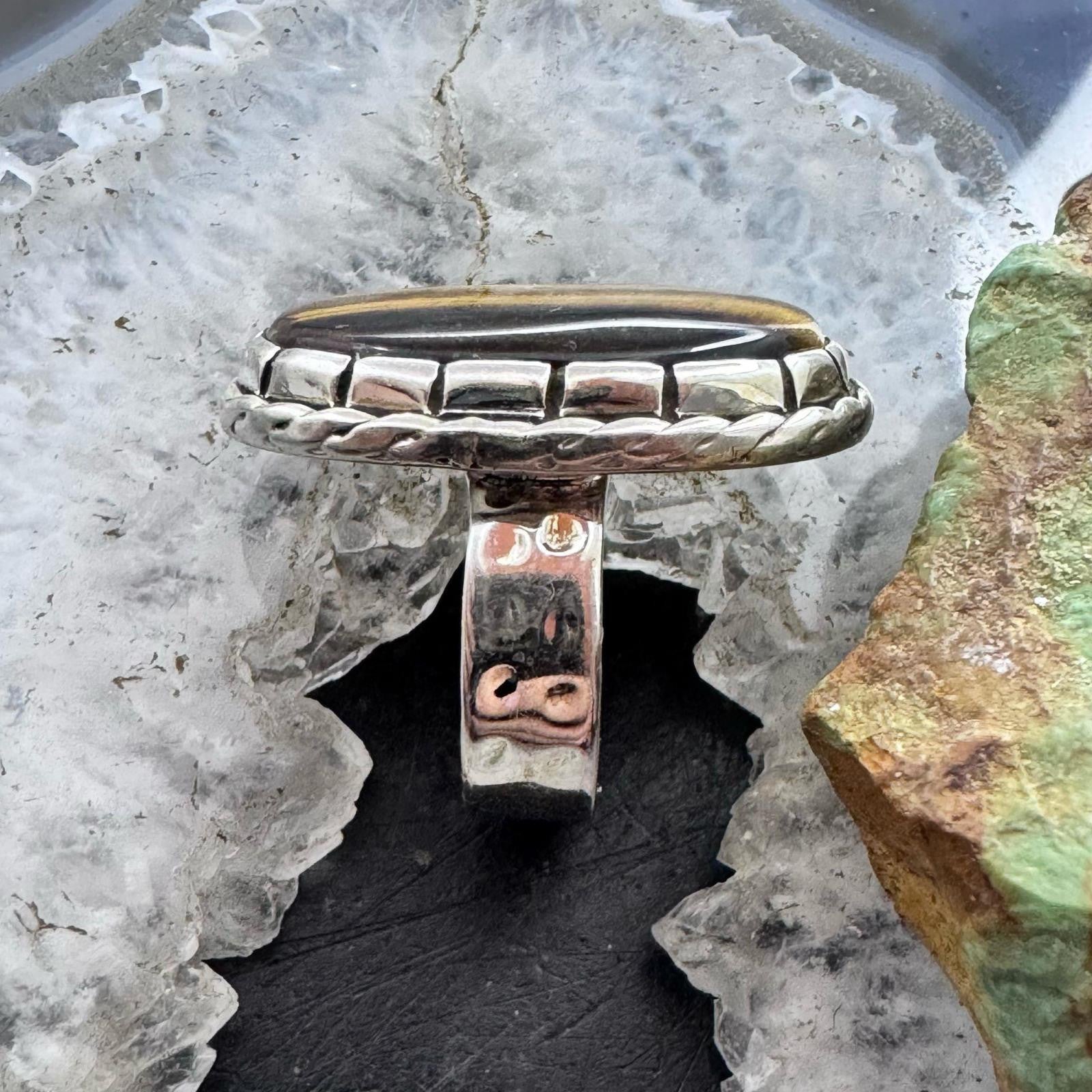 Sterling Silver Southwestern Style Elongated Oval Tiger's Eye Ring Size 8.25 For Women