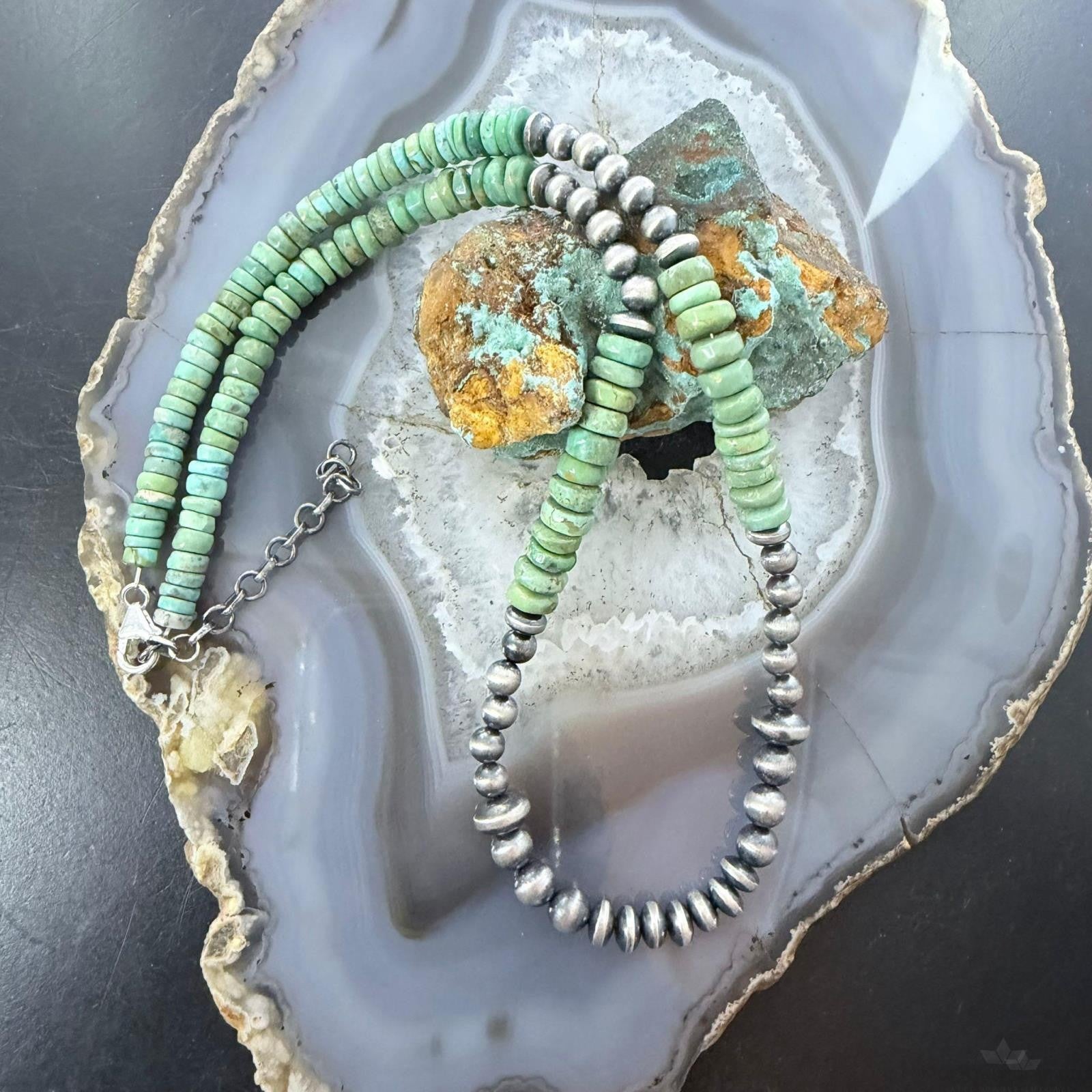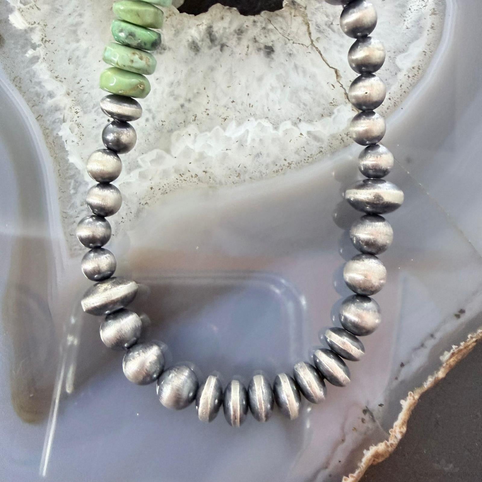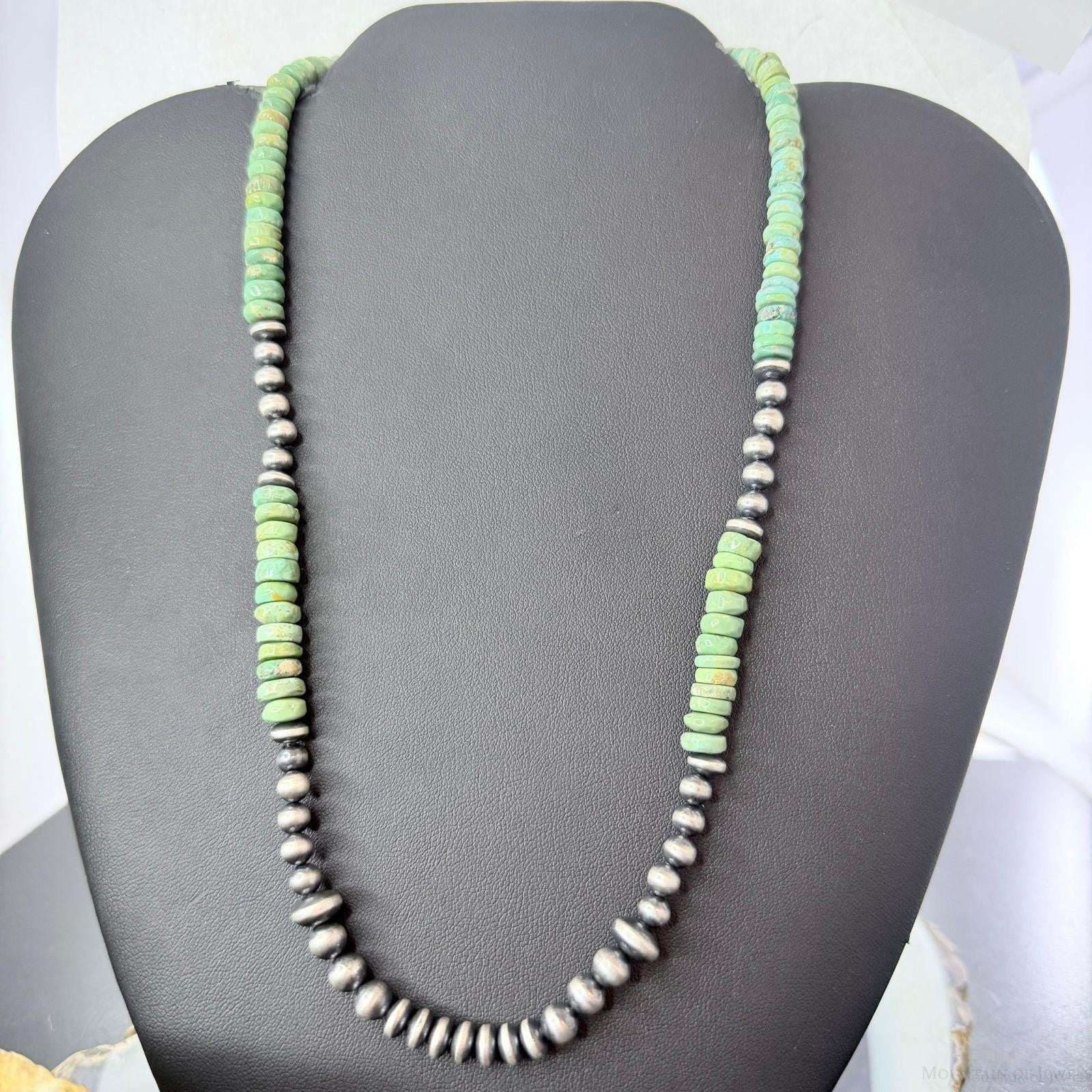 Sterling Silver Southwestern Style Green Turquoise Beads & Starling Beads 20" Necklace For Women