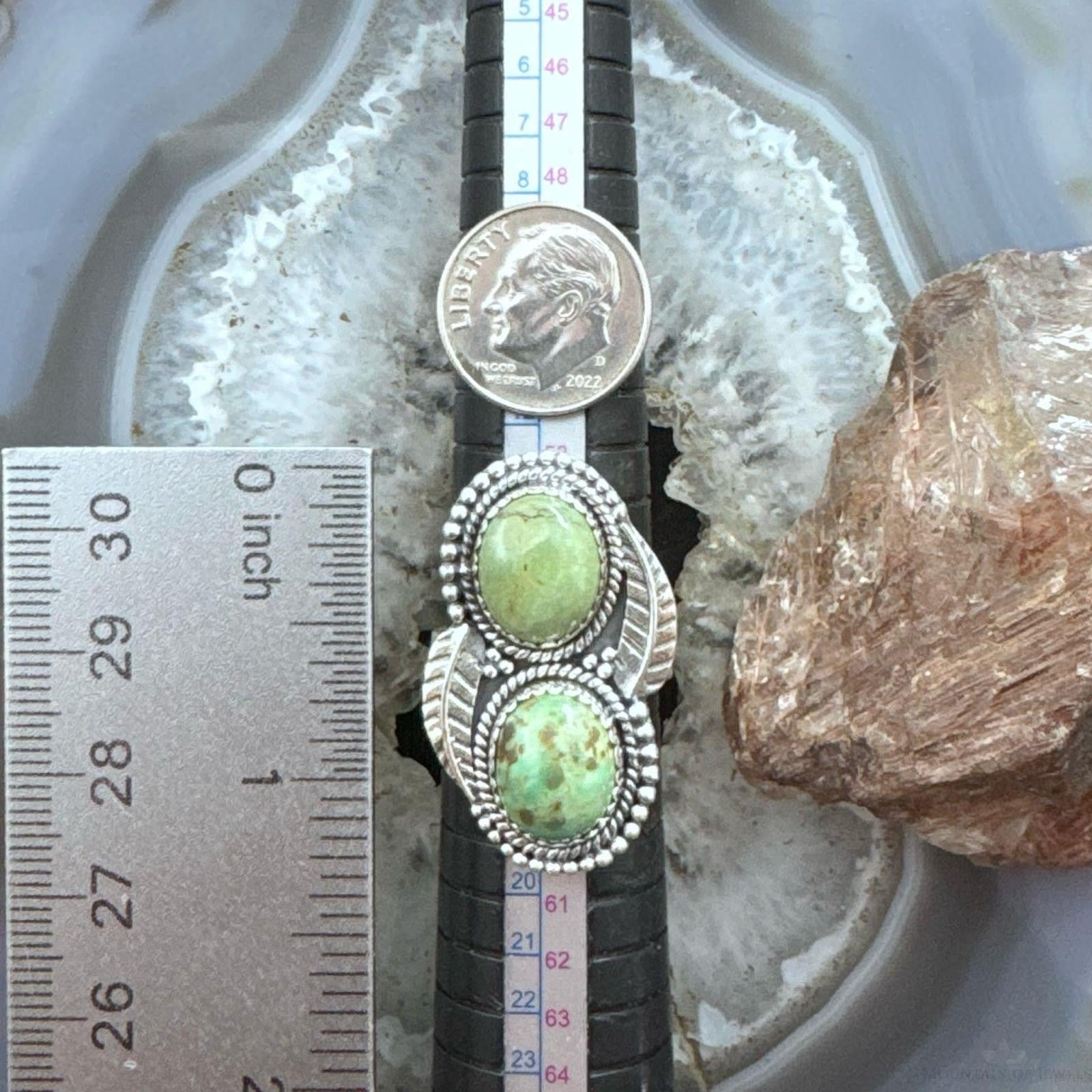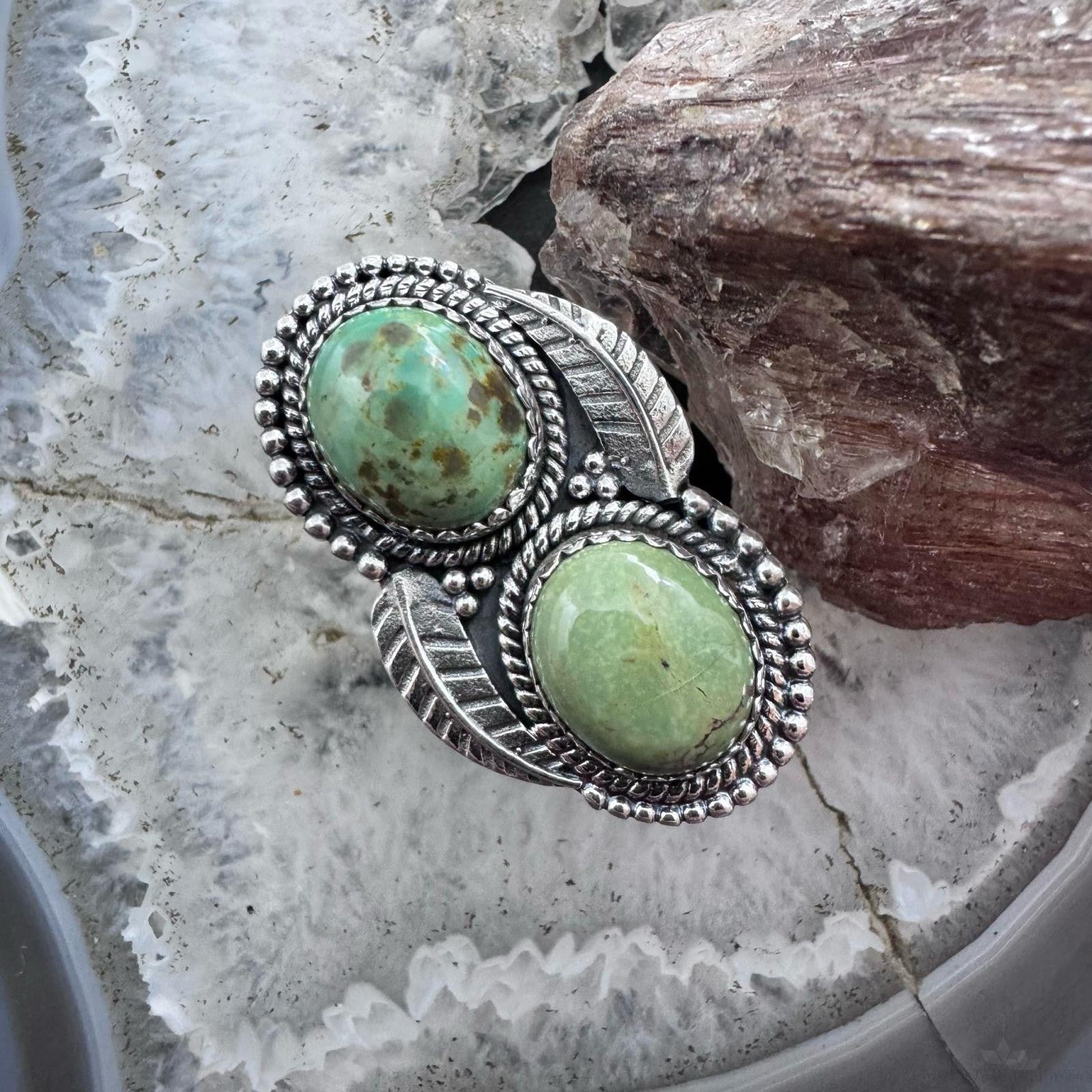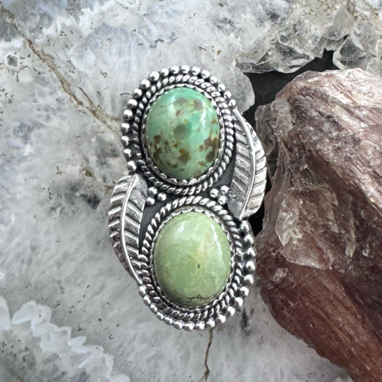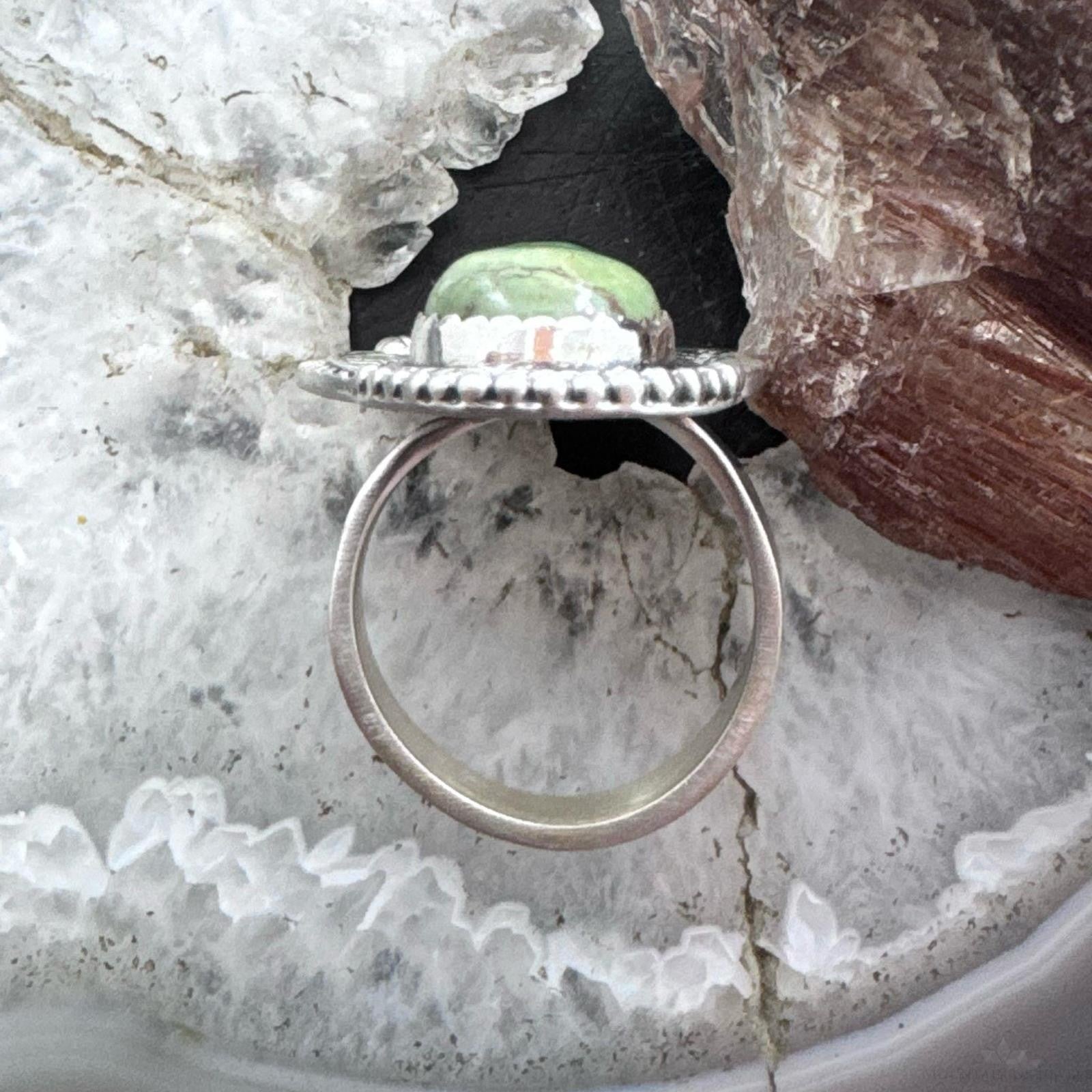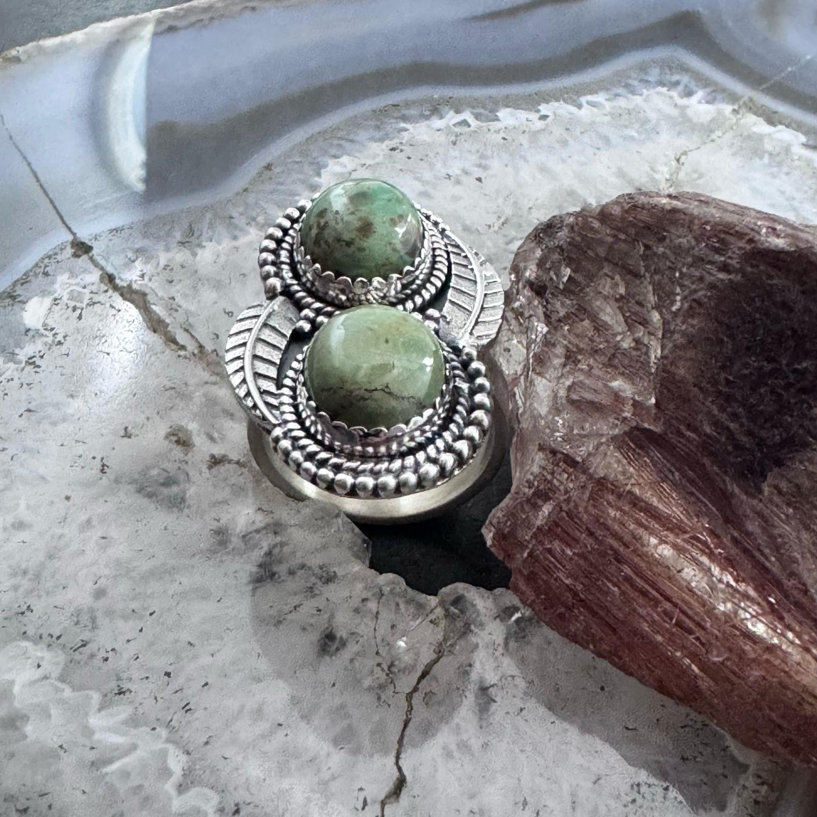 Sterling Silver Southwestern Style Green Turquoise Decorated Adjustable Ring For Women