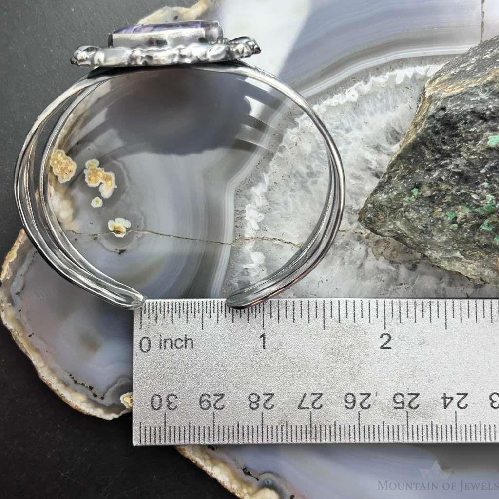 Sterling Silver Southwestern Style Large Oval Charoite Decorated Bracelet For Women