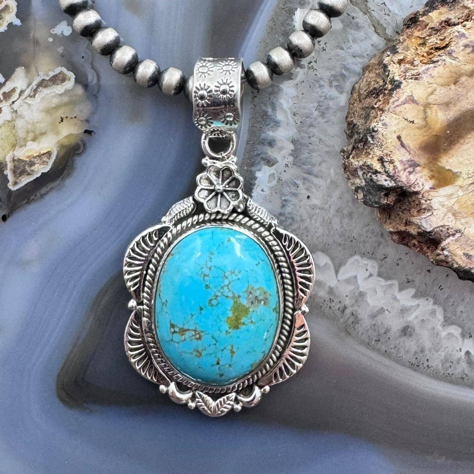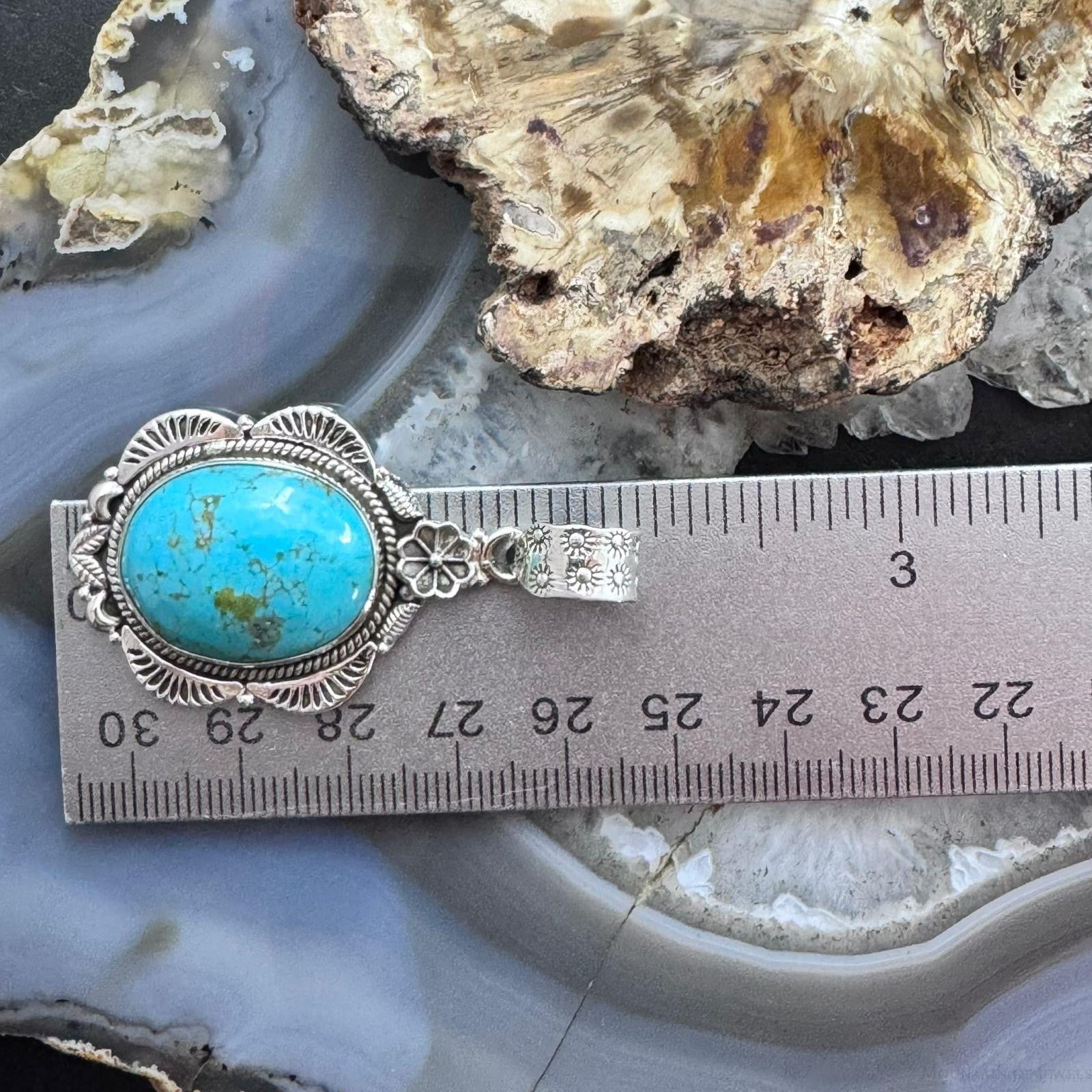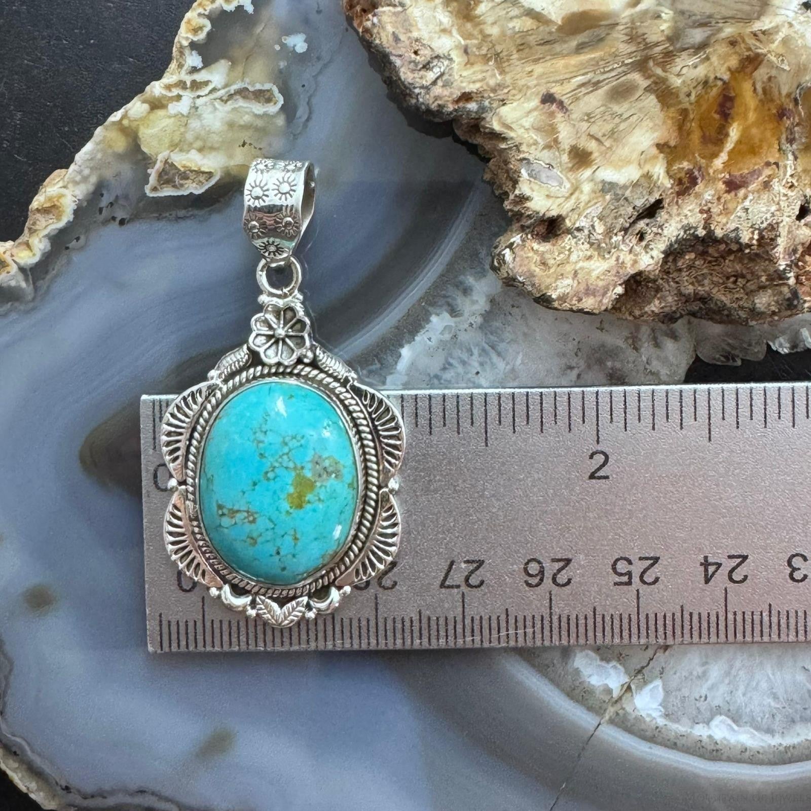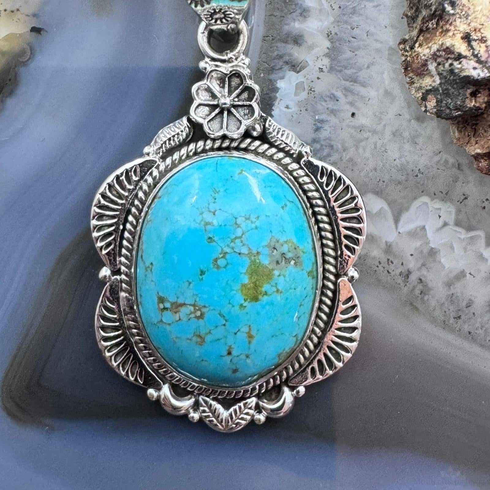 Sterling Silver Southwestern Style Large Oval Turquoise Decorated Pendant For Women