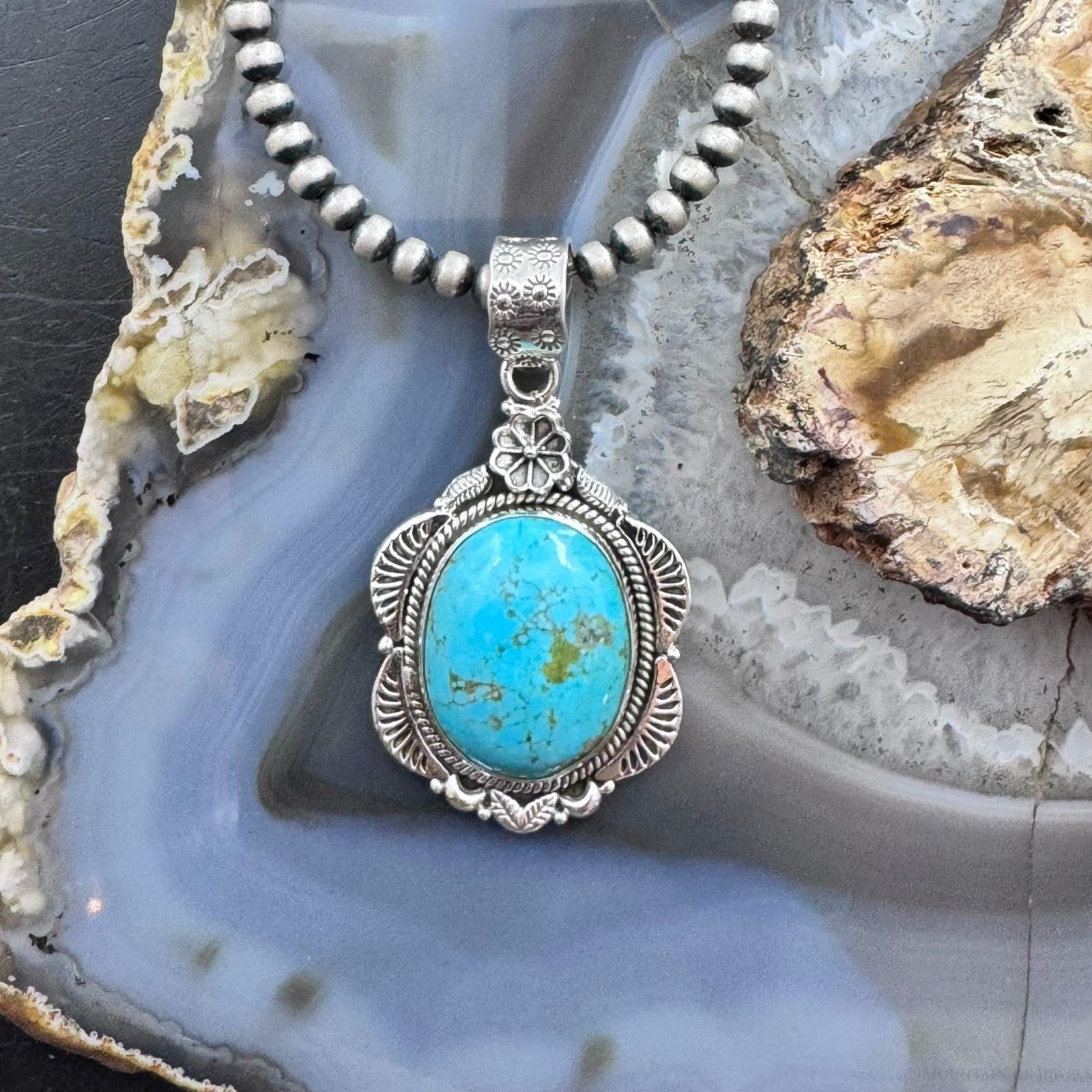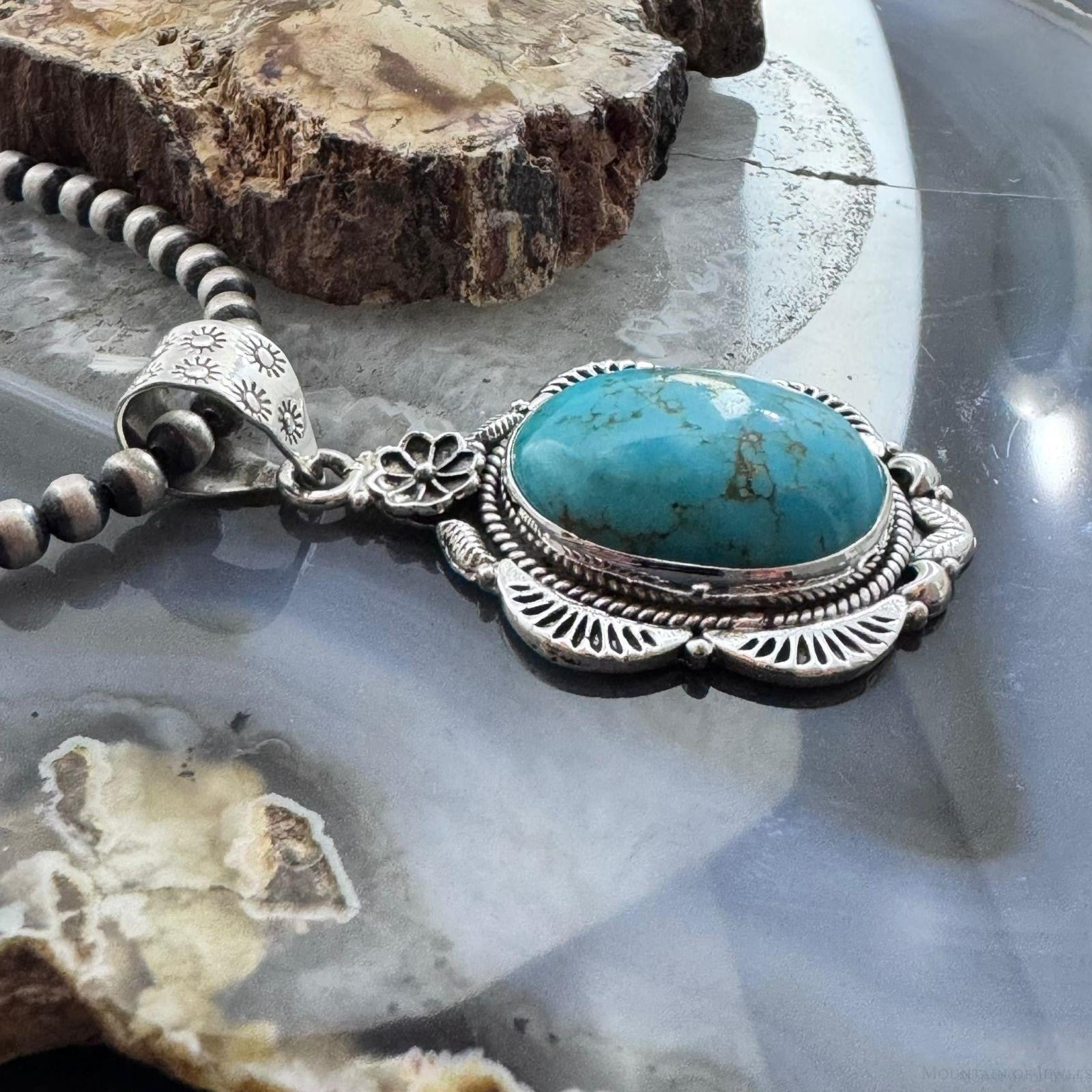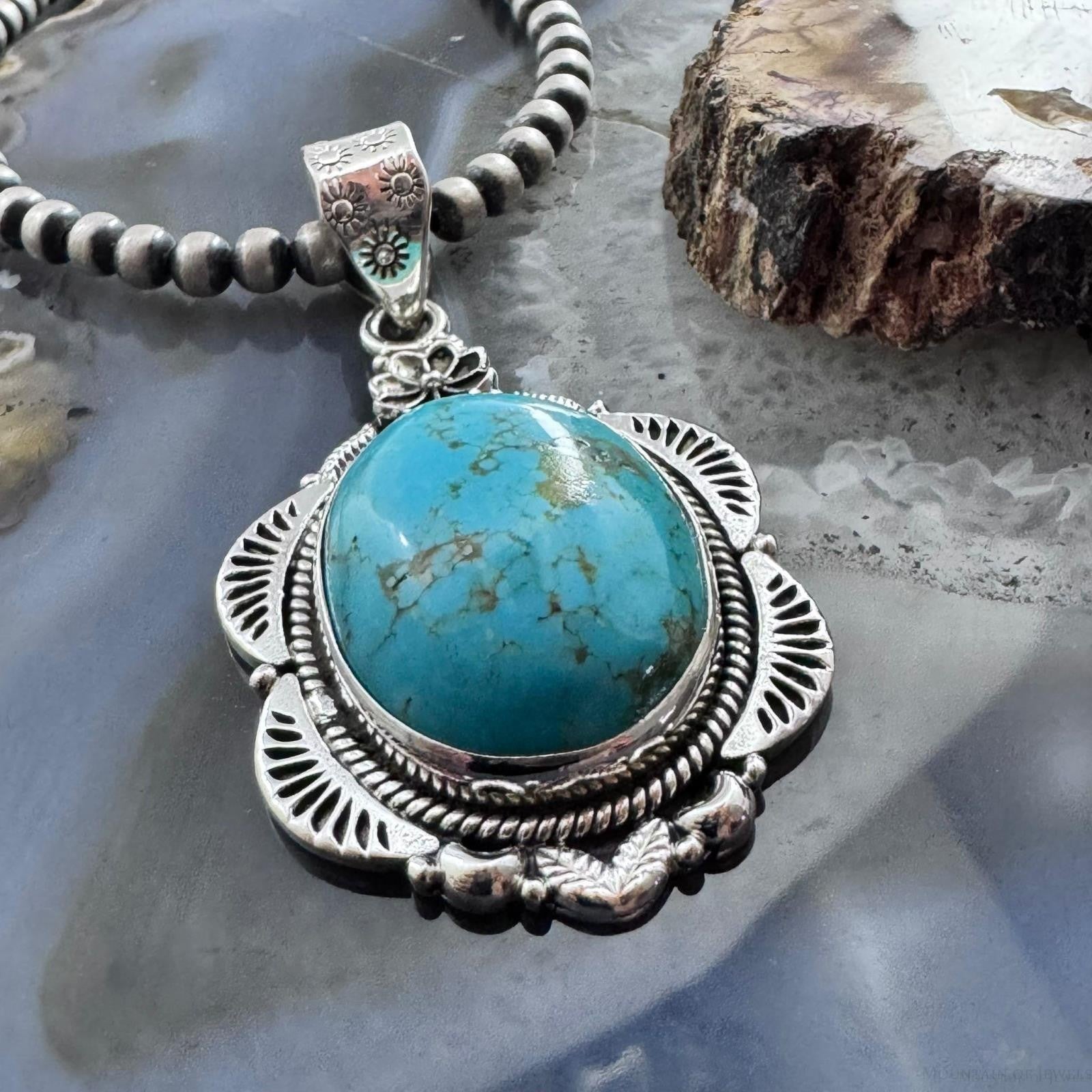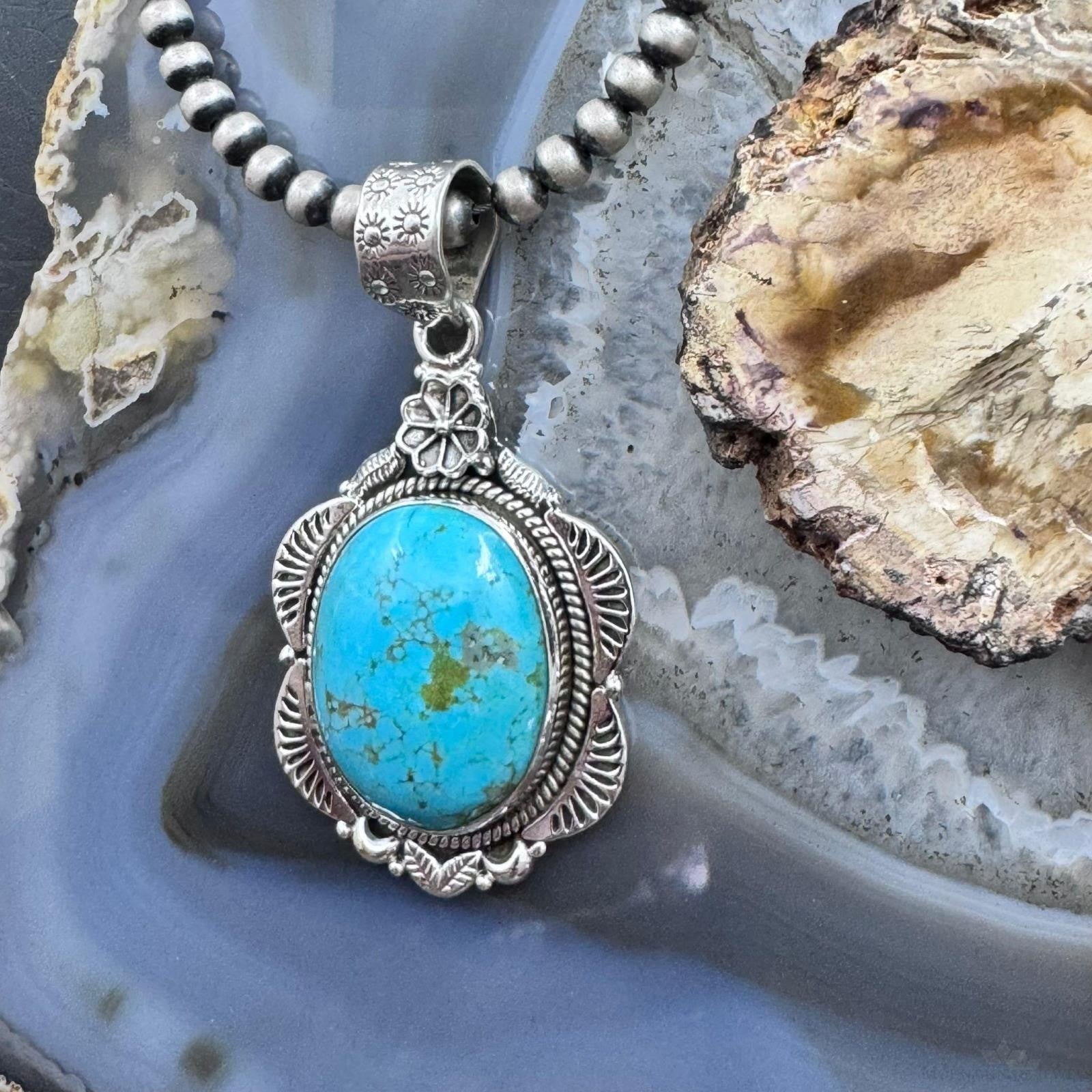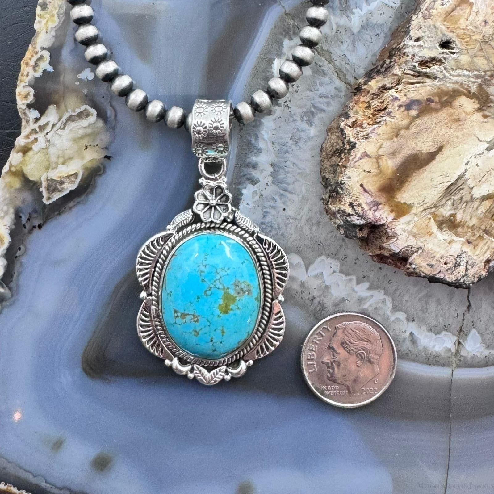 Sterling Silver Southwestern Style Large Oval Turquoise Decorated Pendant For Women