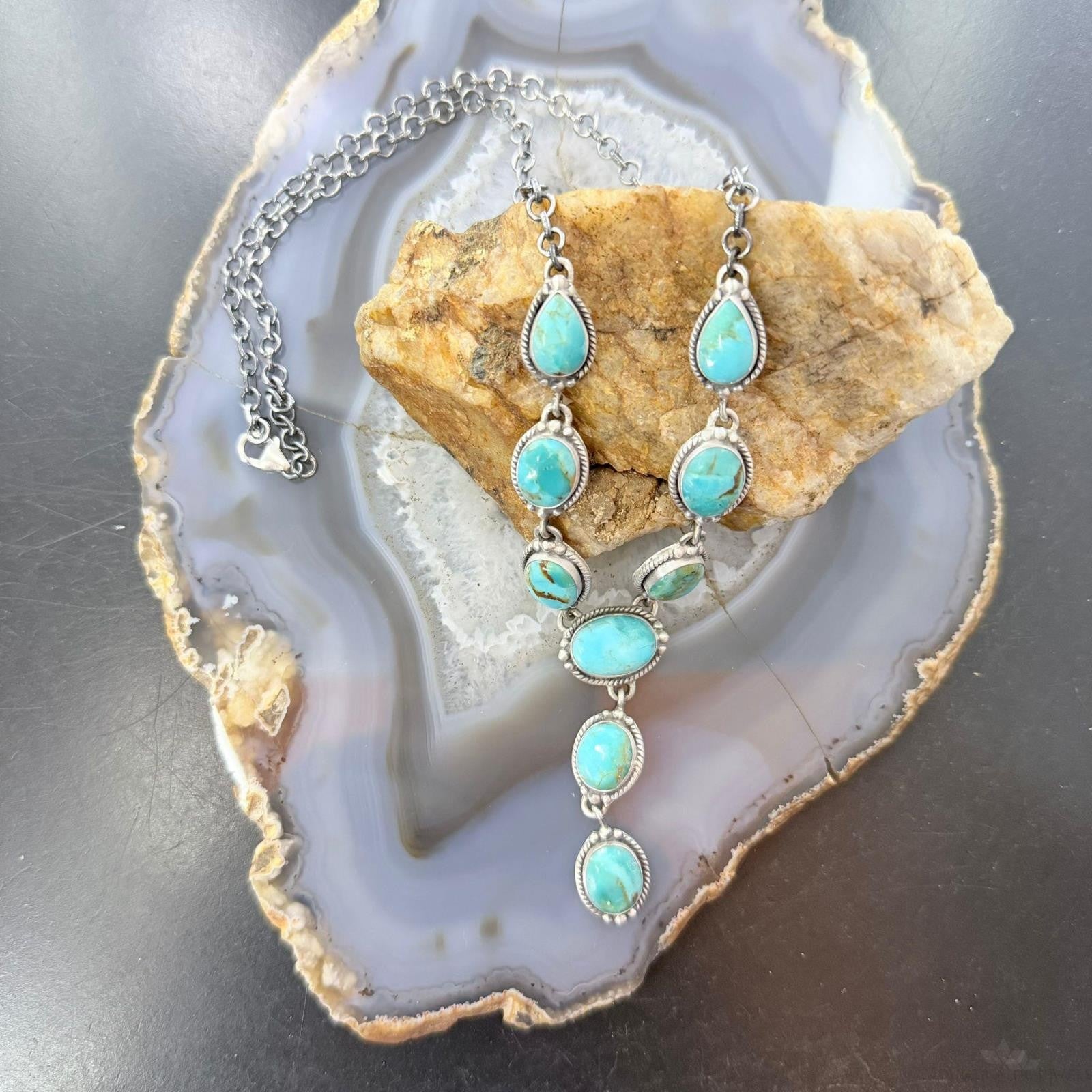 Sterling Silver Southwestern Style Mohave Turquoise Lariat 19" Necklace For Women #1