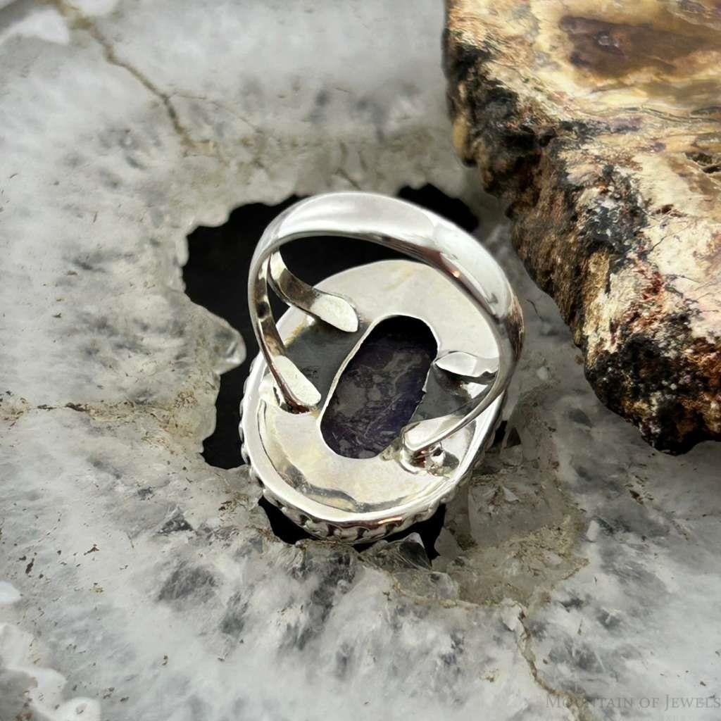 Sterling Silver Southwestern Style Oval Charoite Decorated Ring Size 6.75 For Women