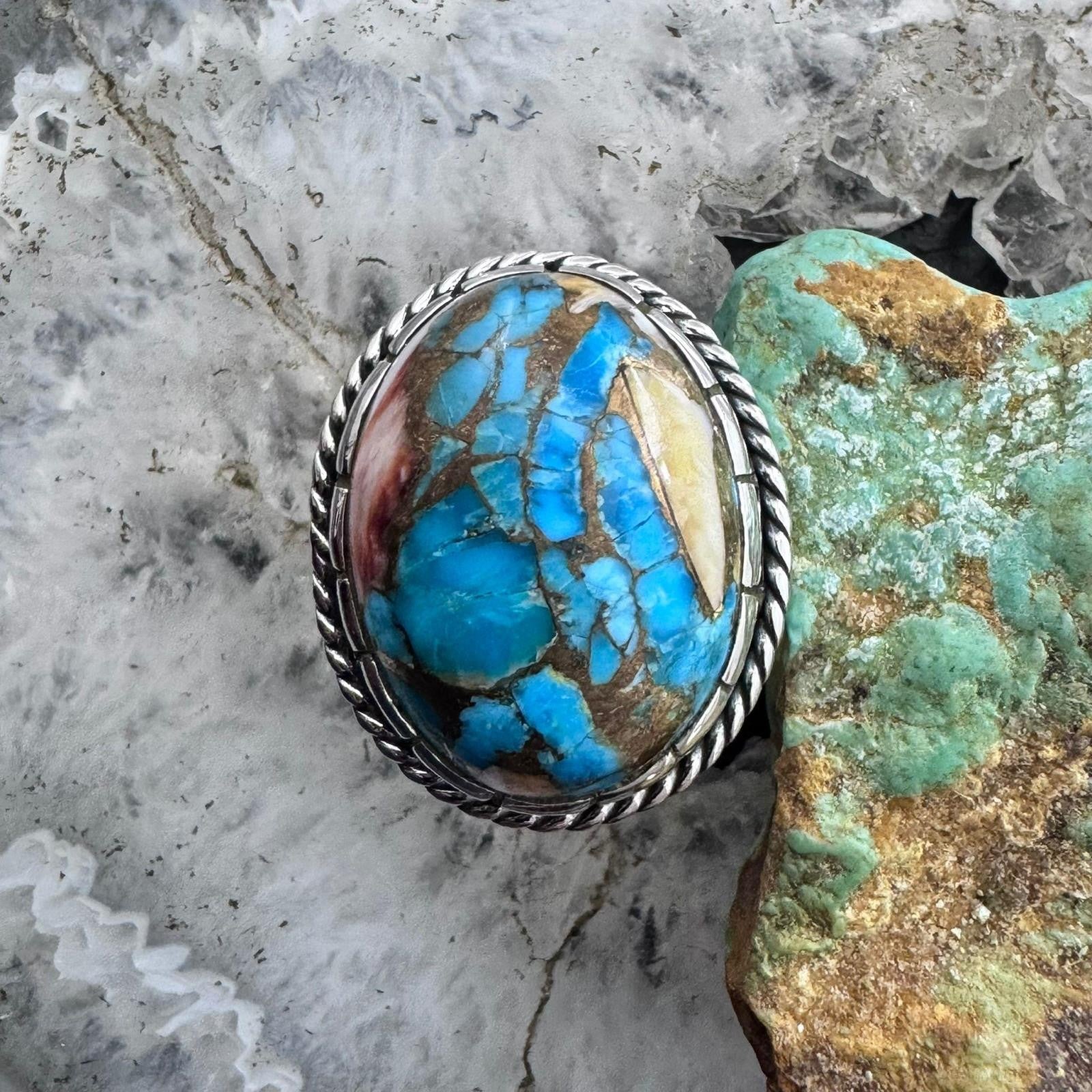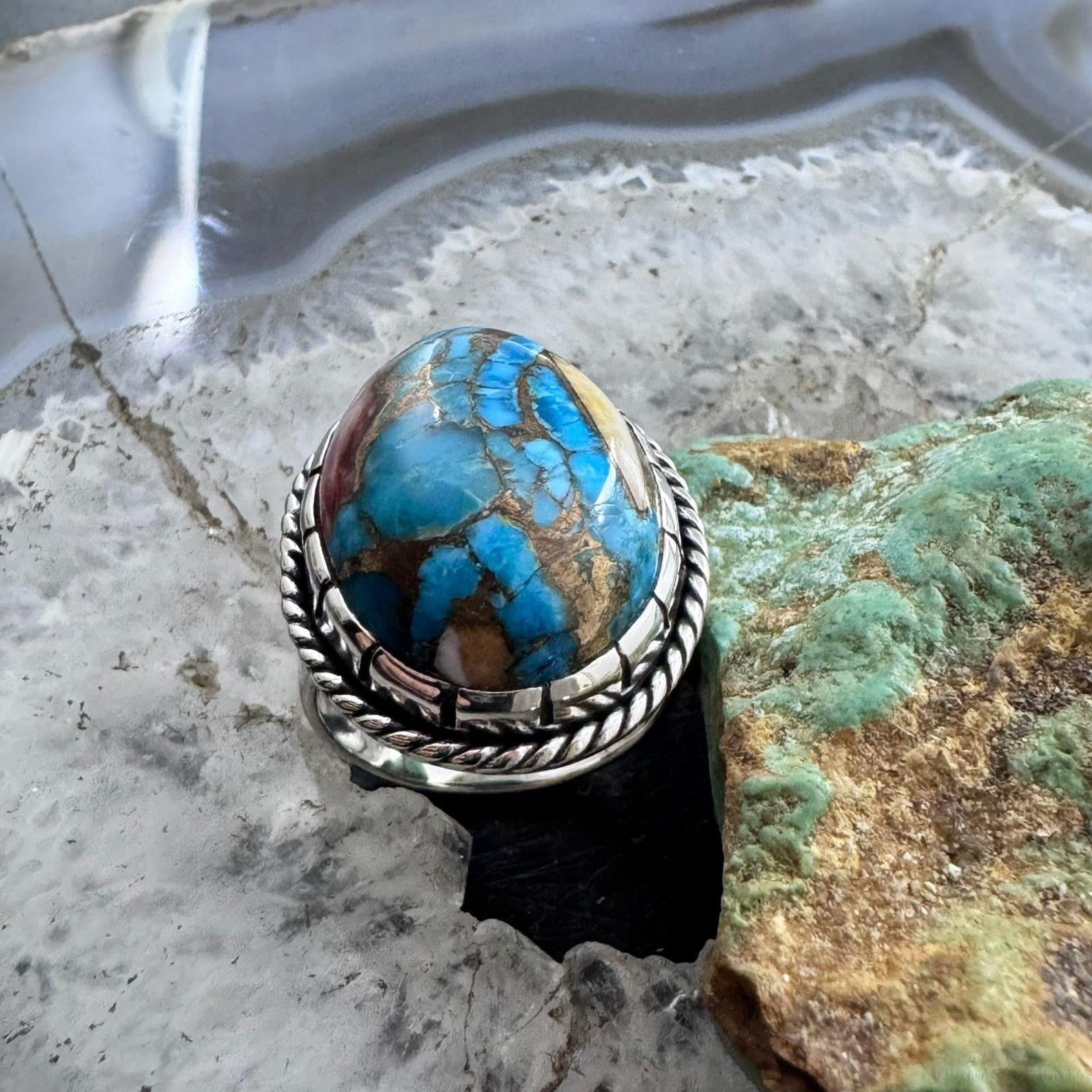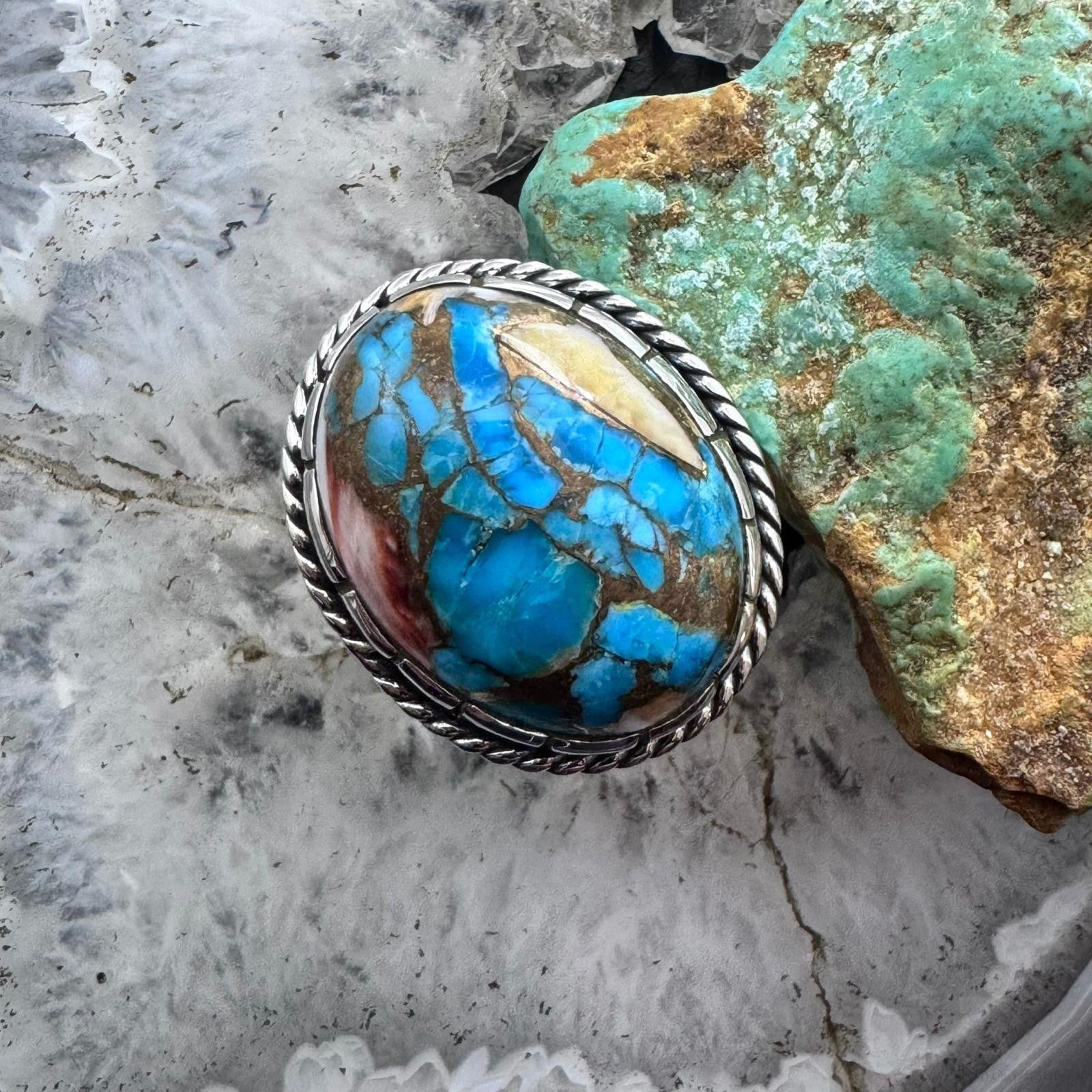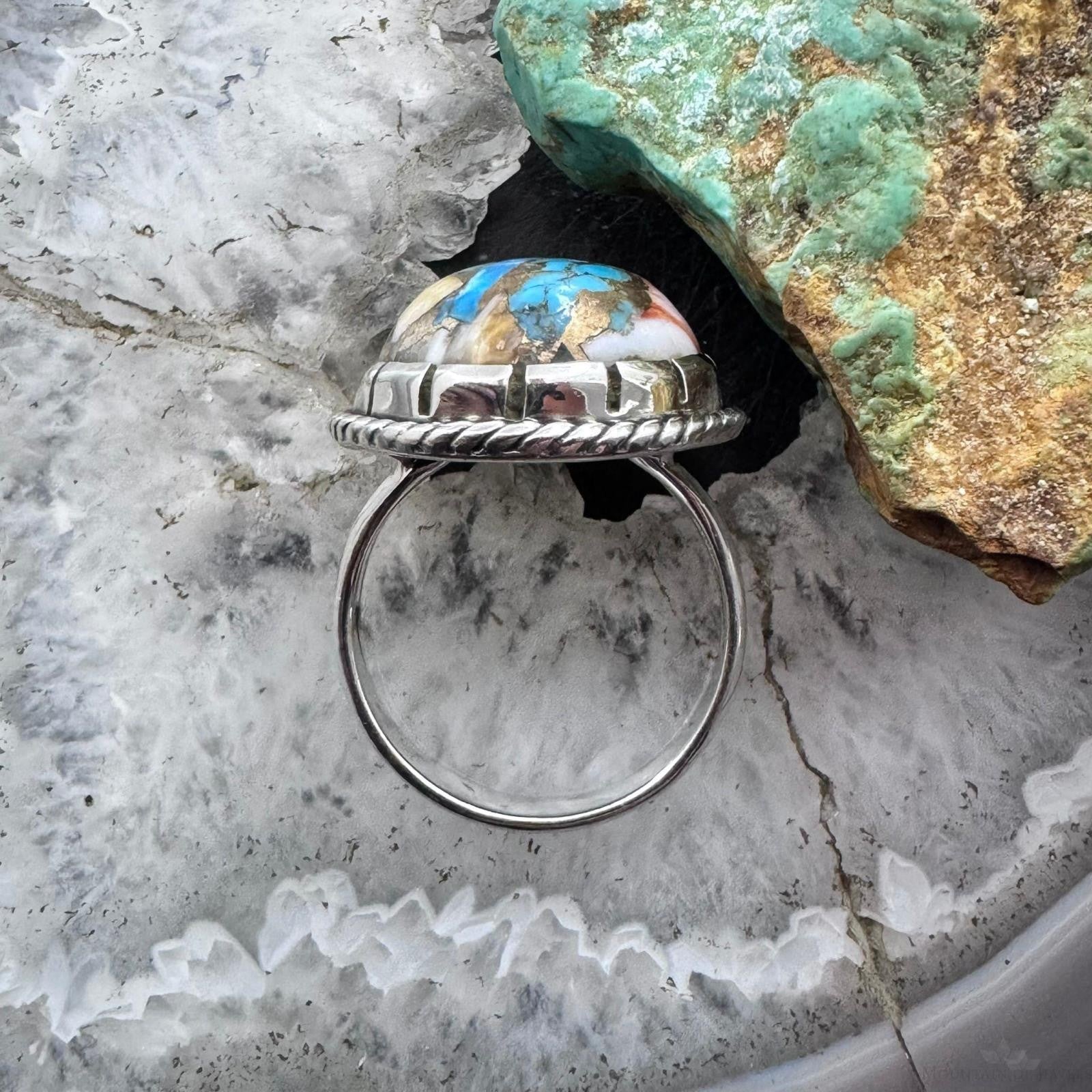 Sterling Silver Southwestern Style Oval Composite Spiny Oyster Turquoise Ring Size 8.5 For Women