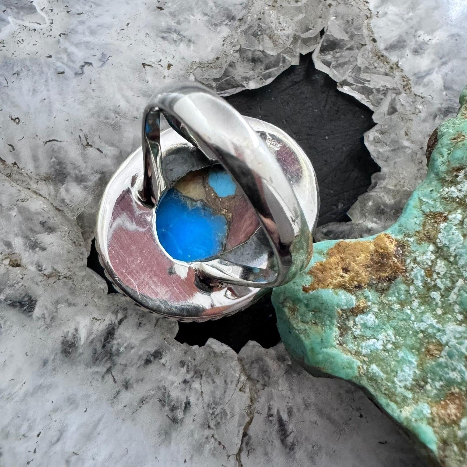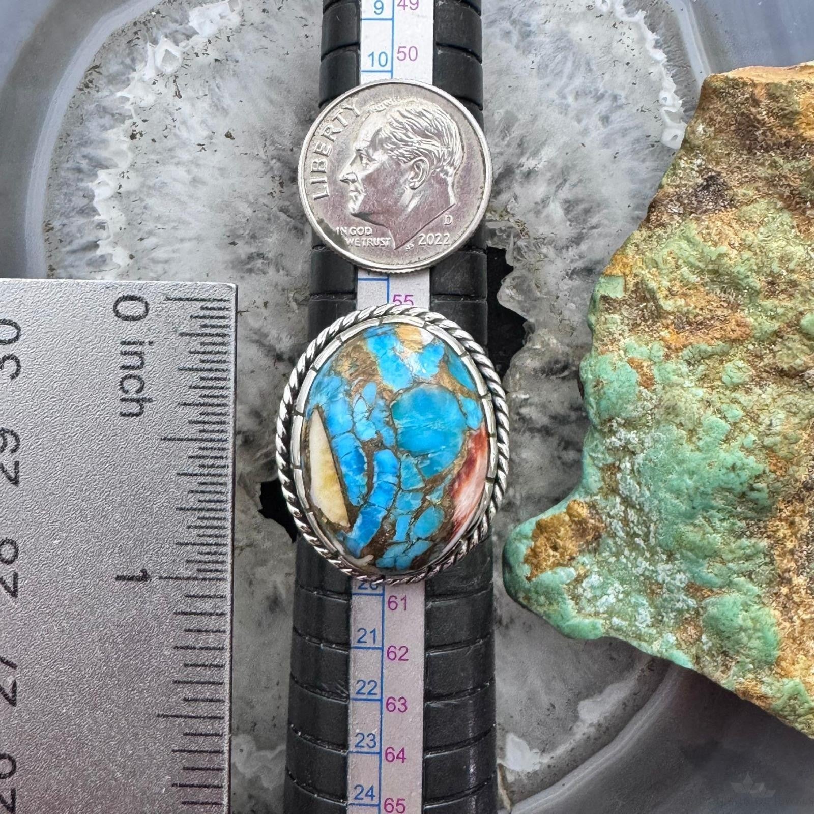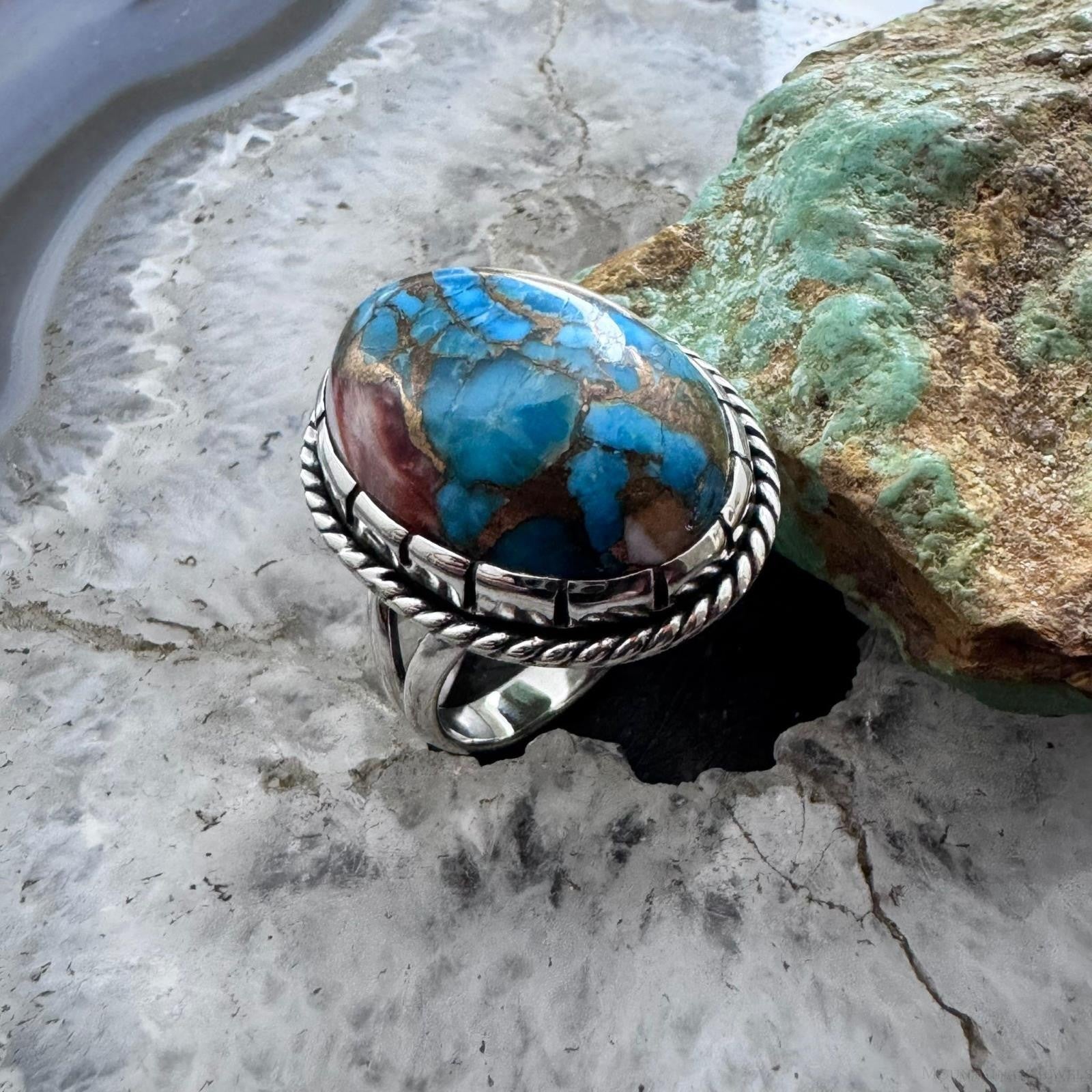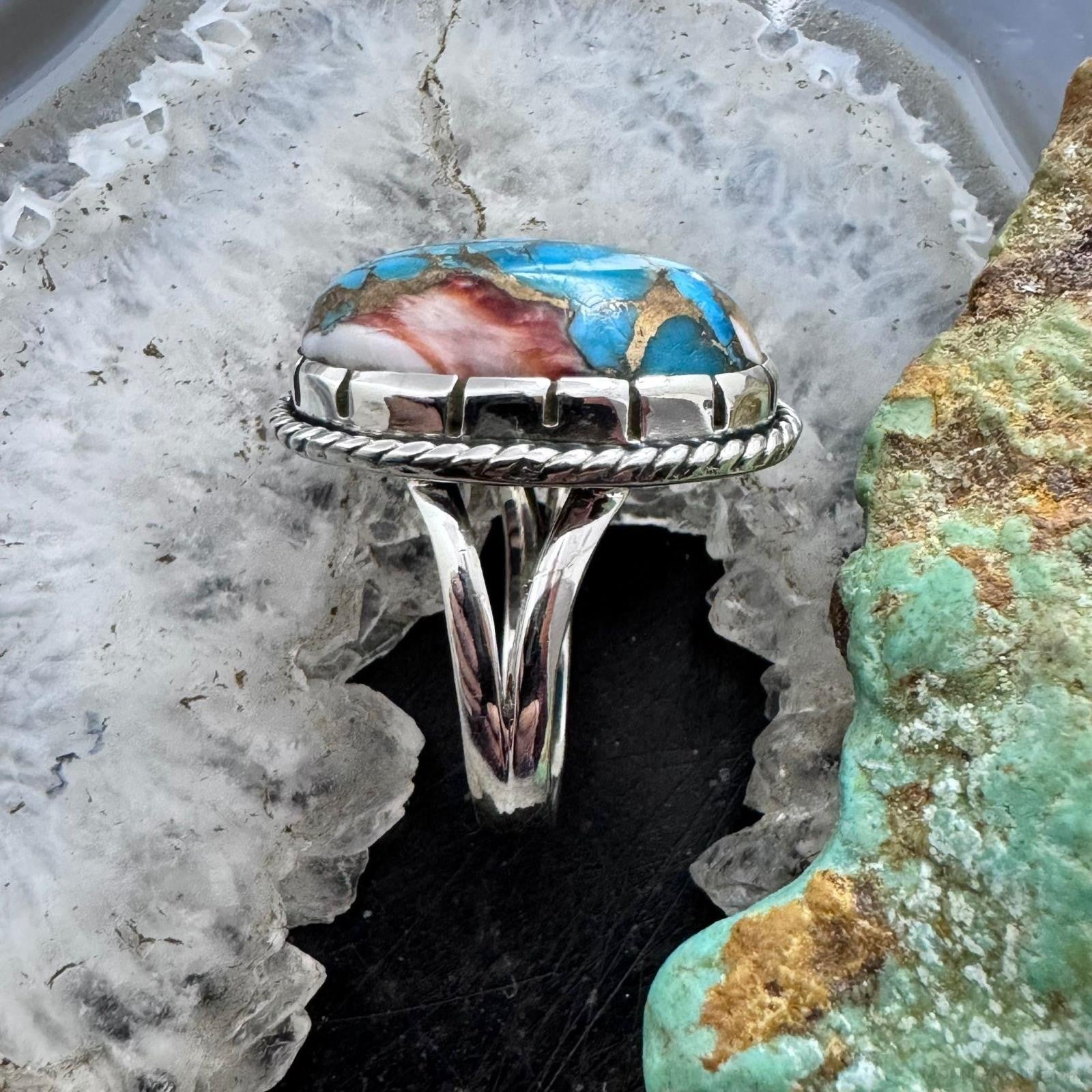 Sterling Silver Southwestern Style Oval Composite Spiny Oyster Turquoise Ring Size 8.5 For Women
