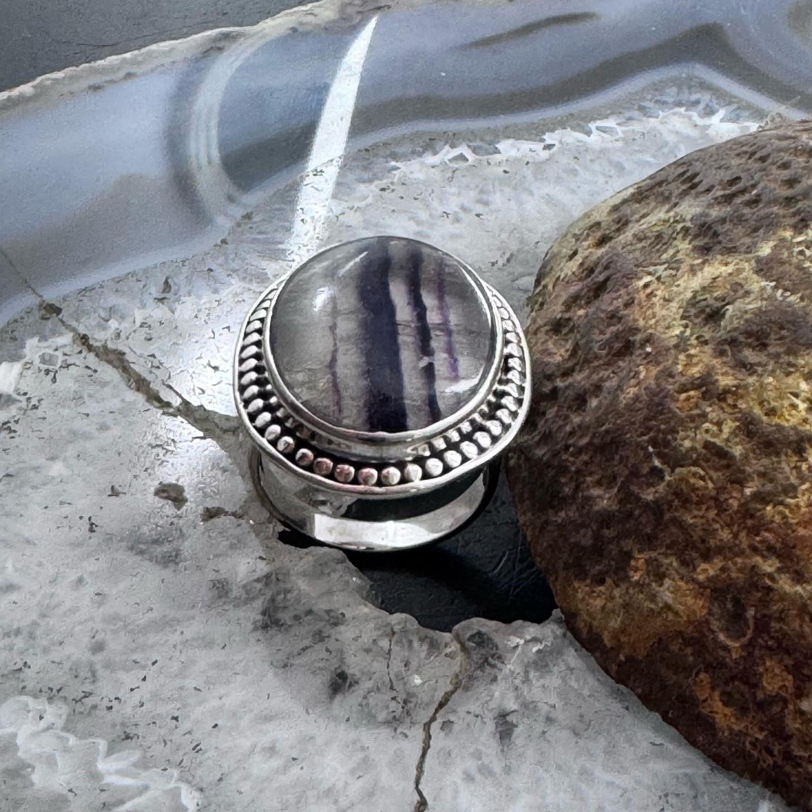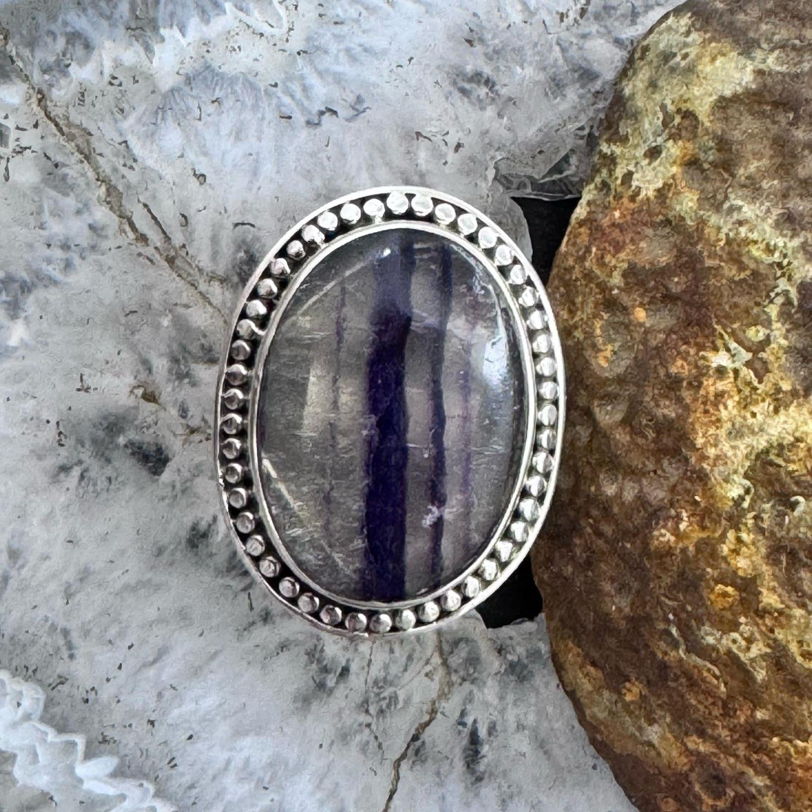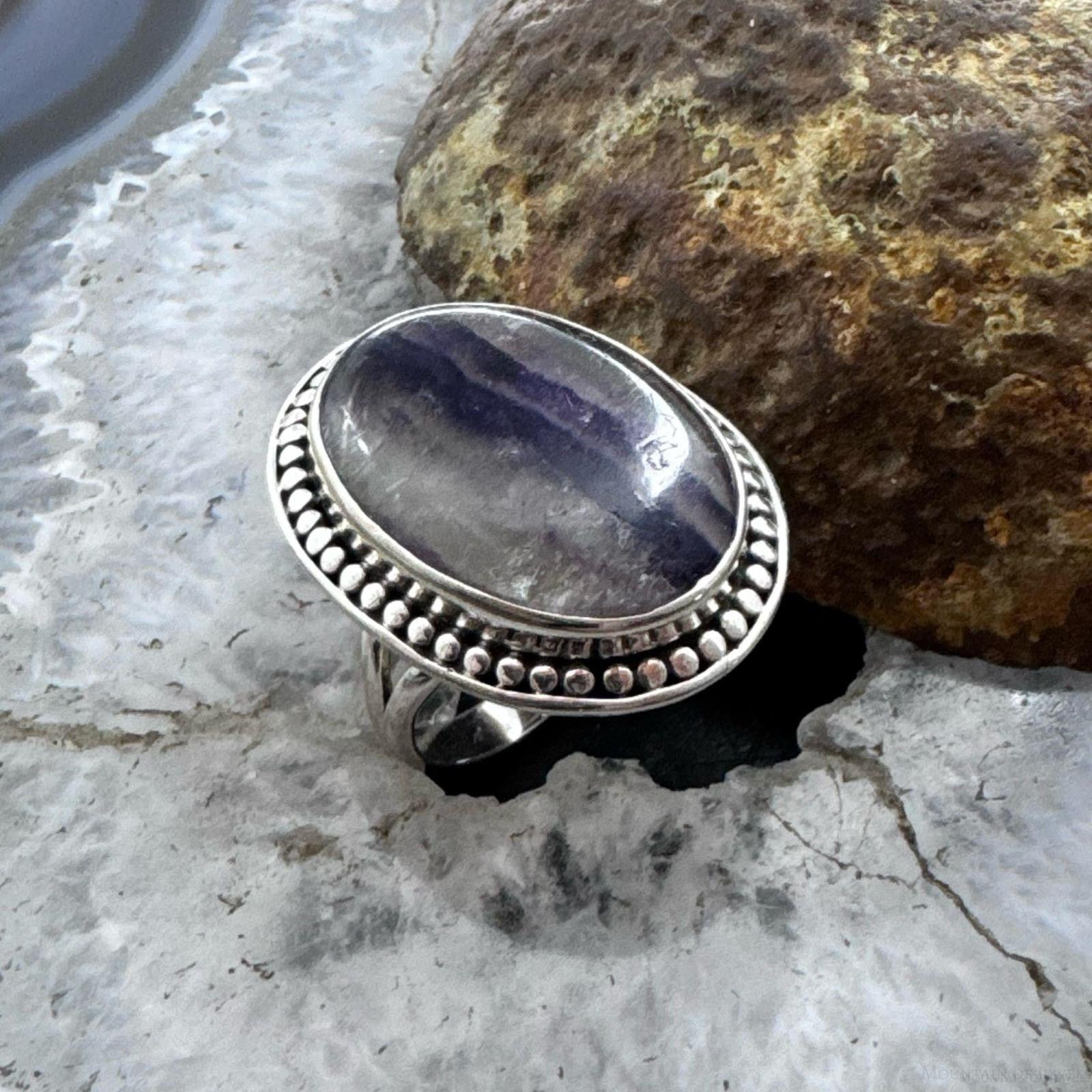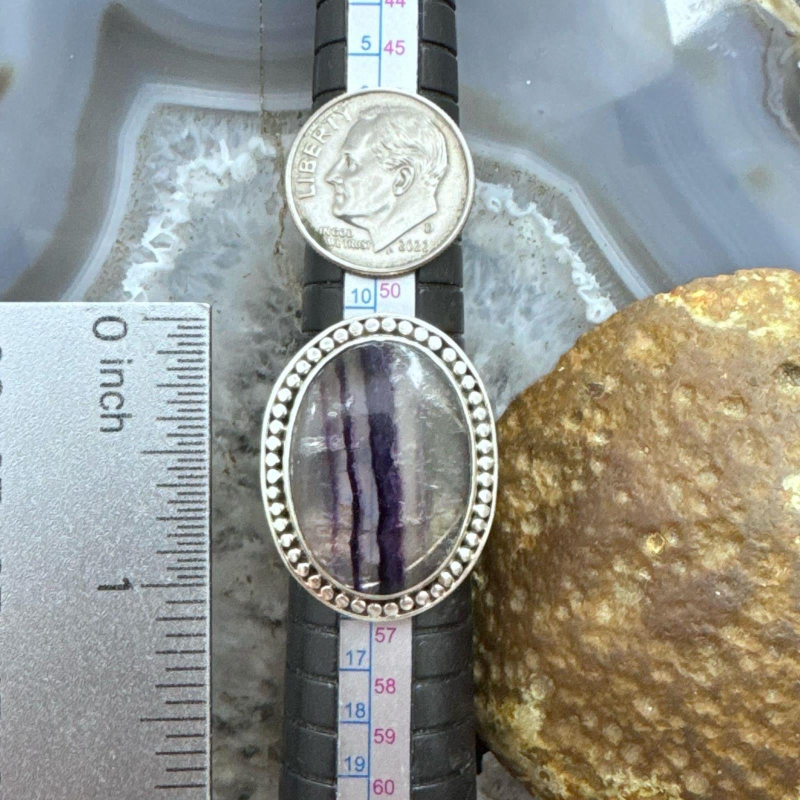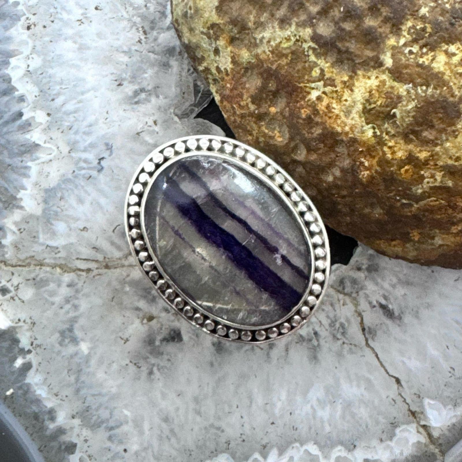 Sterling Silver Southwestern Style Oval Fluorite Crystal Ring Size 6.75 For Women