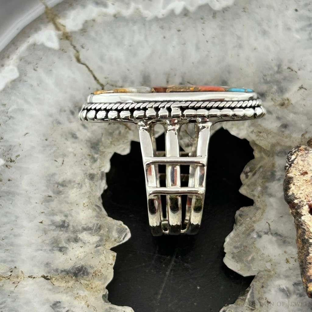 Sterling Silver Southwestern Style Oval Spiny Oyster Turquoise Ring Size 7.25 For Women