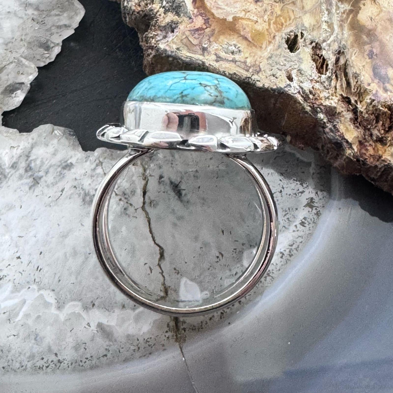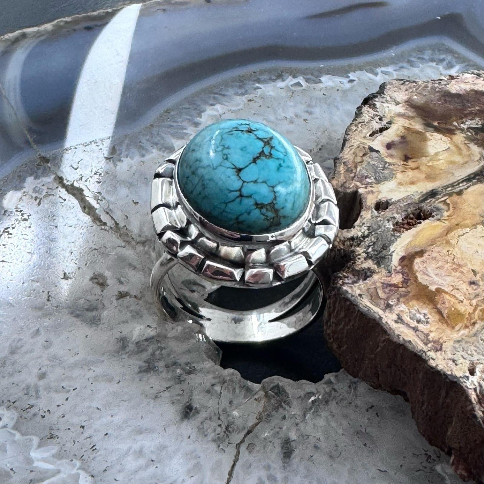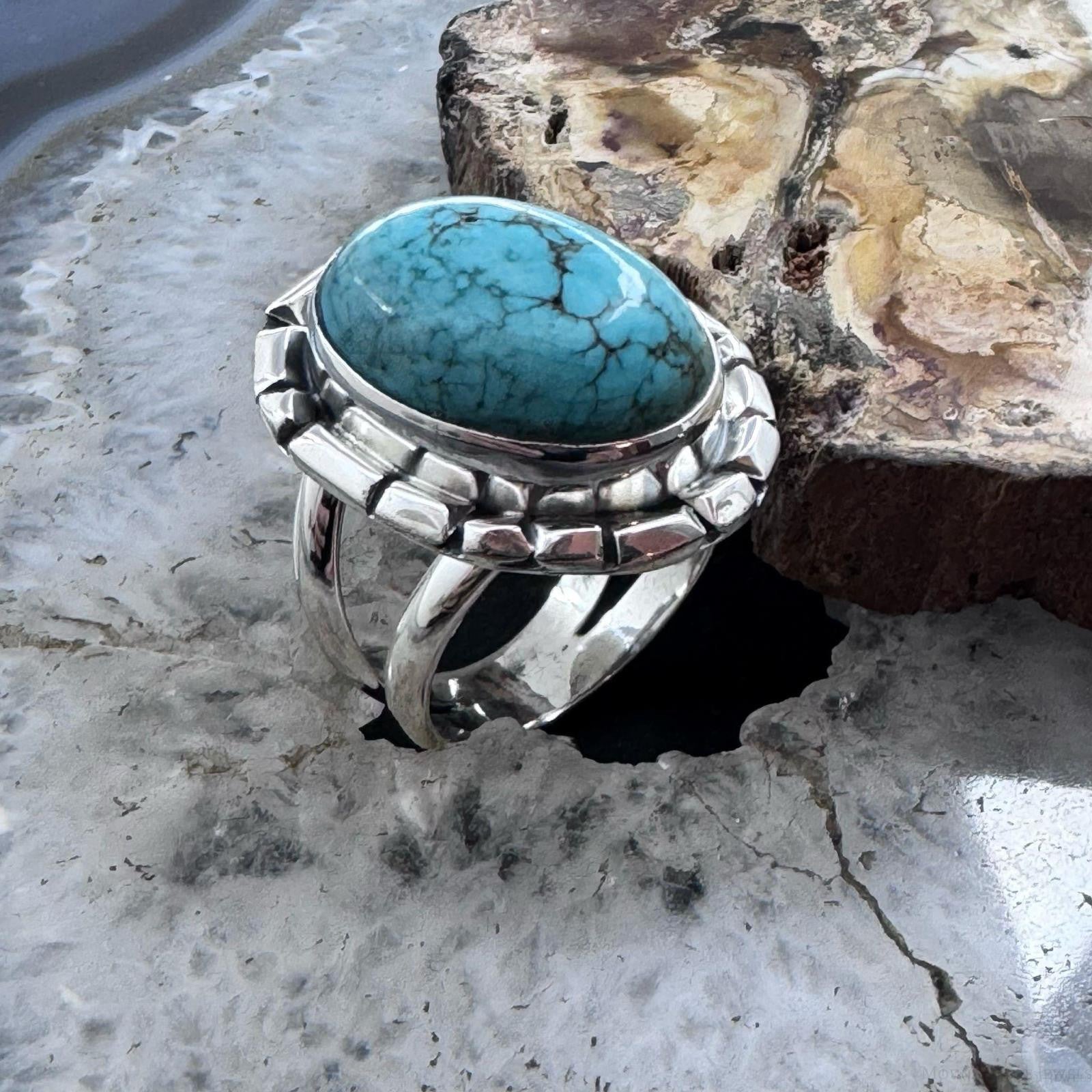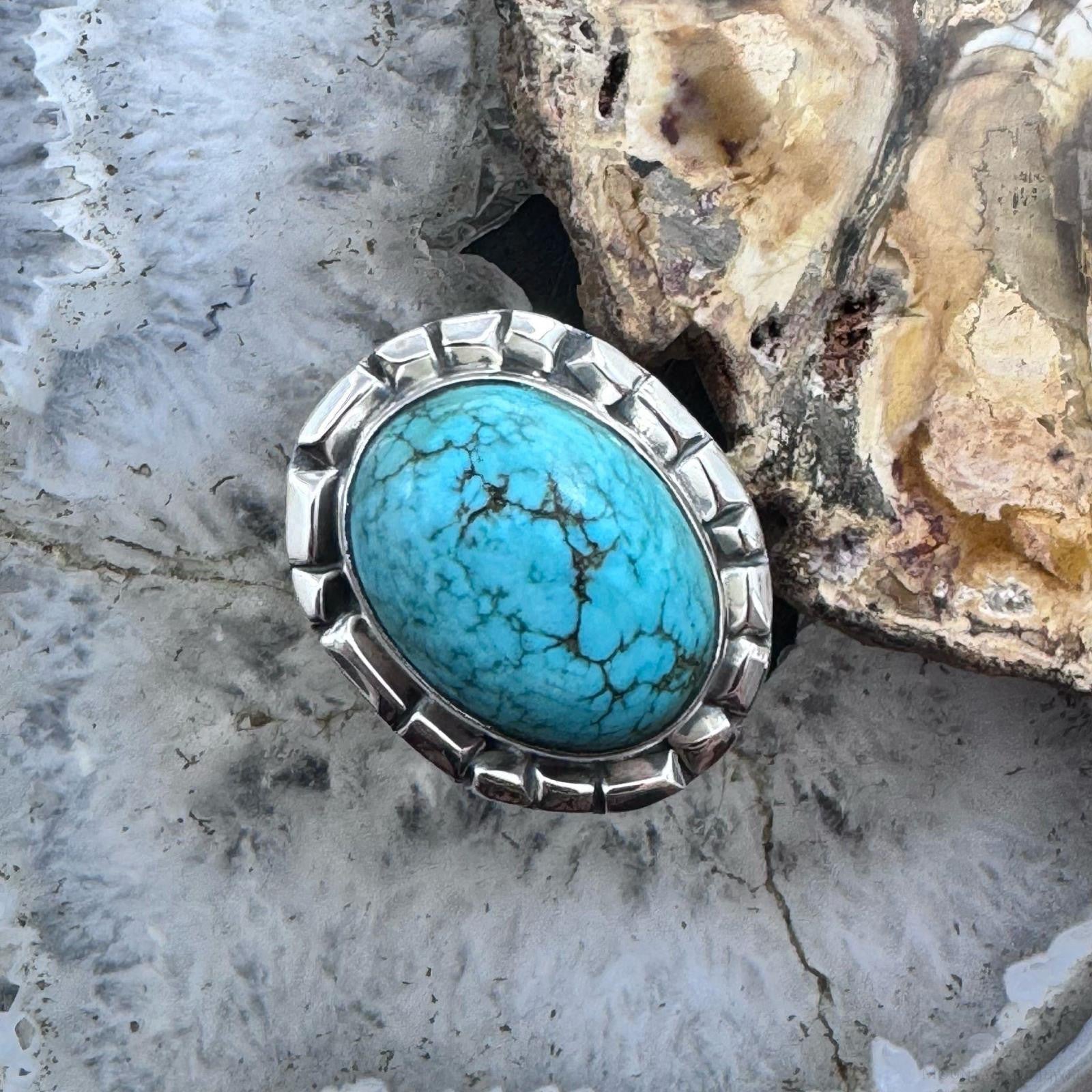 Sterling Silver Southwestern Style Oval Tibetan Turquoise Ring Size 8.75 For Women