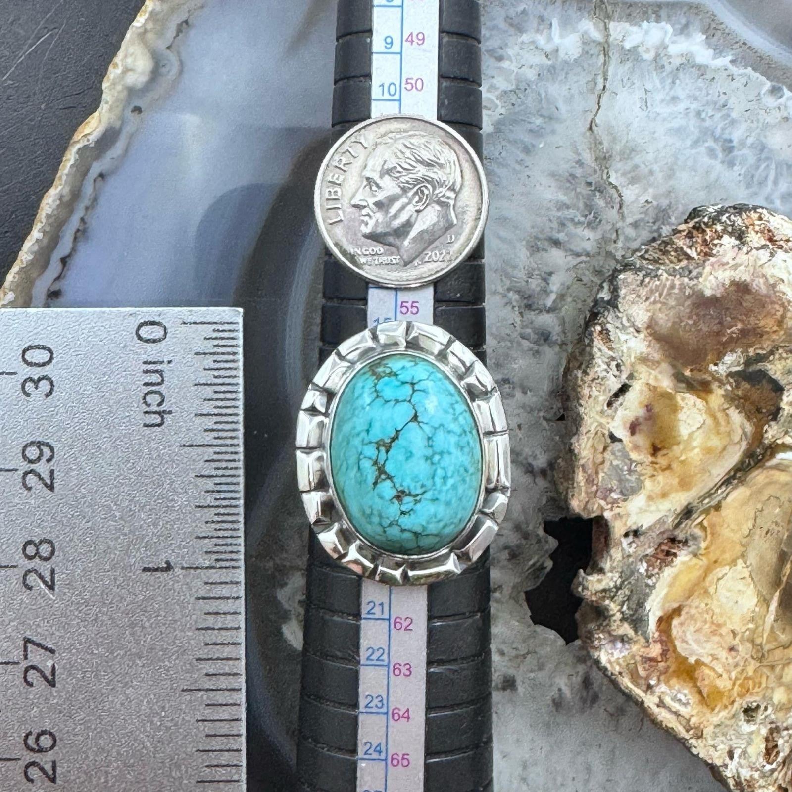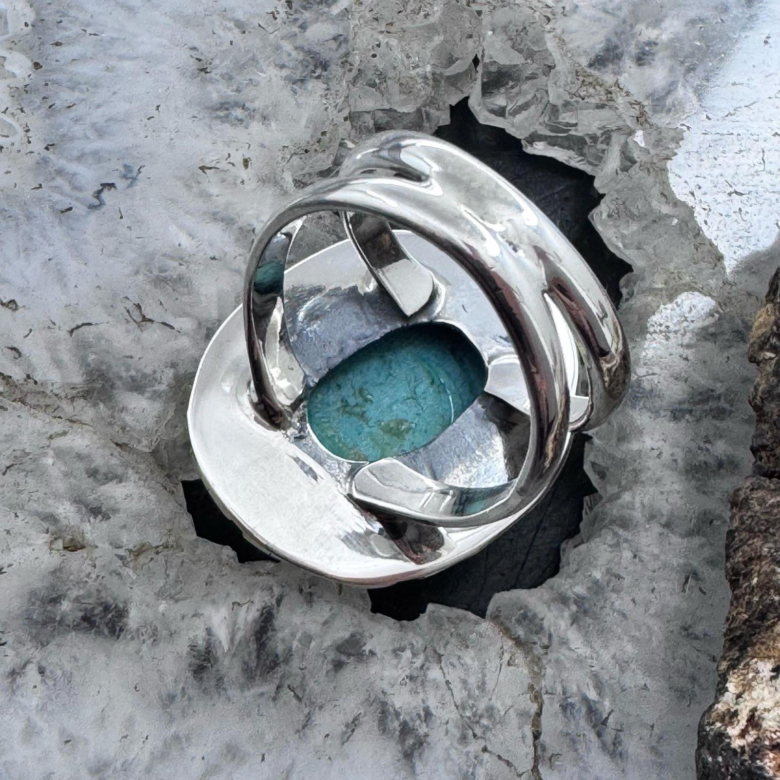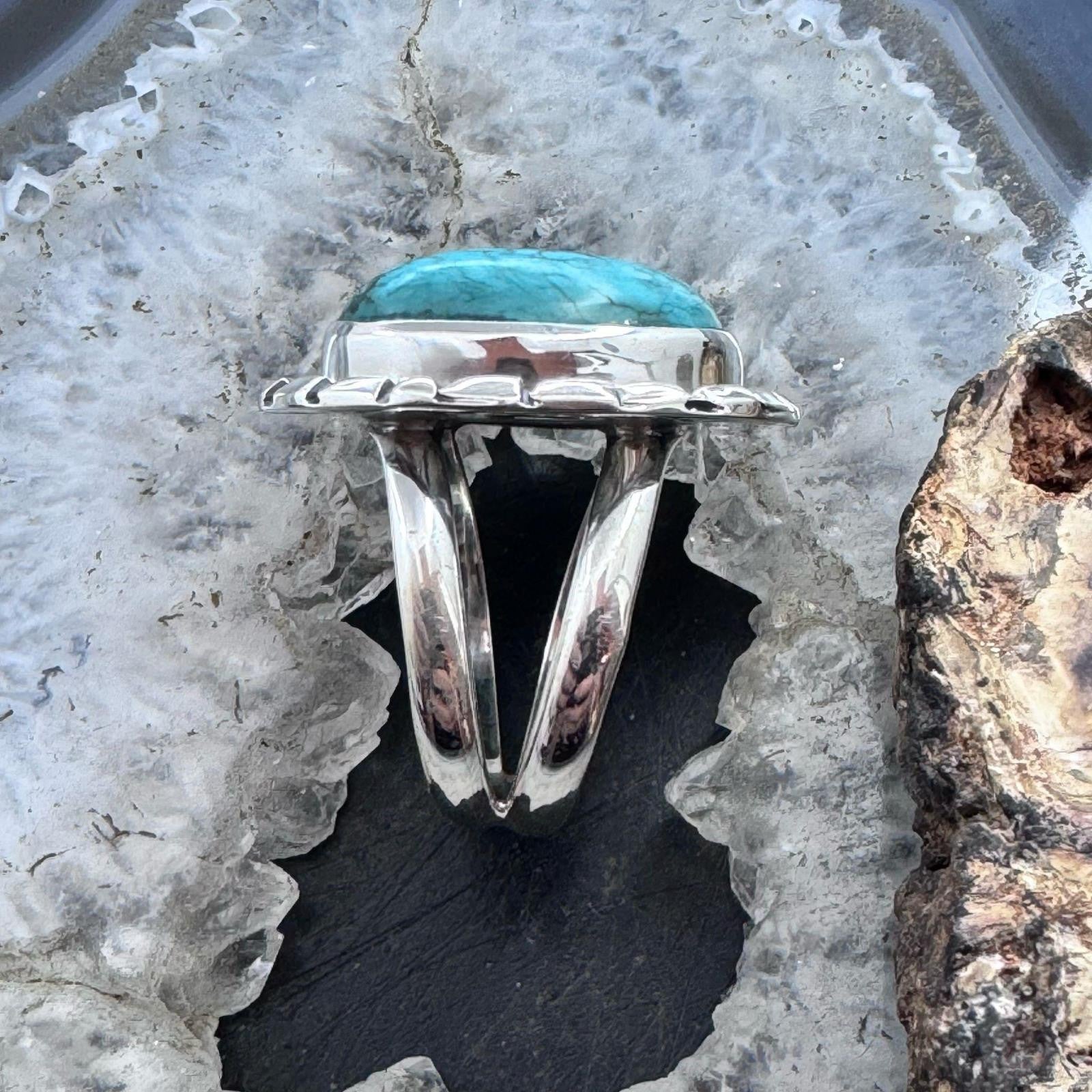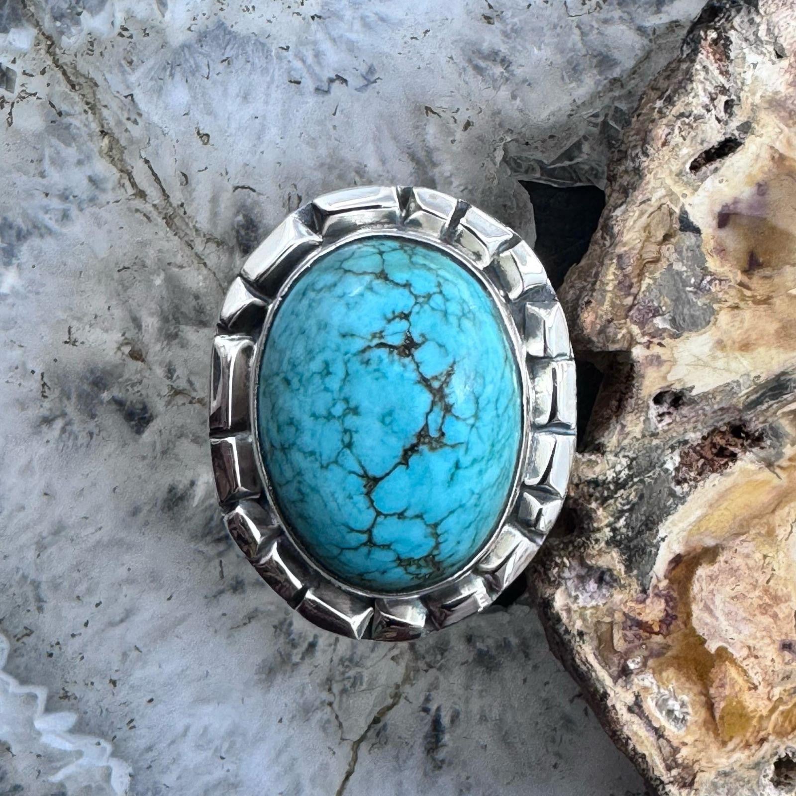 Sterling Silver Southwestern Style Oval Tibetan Turquoise Ring Size 8.75 For Women