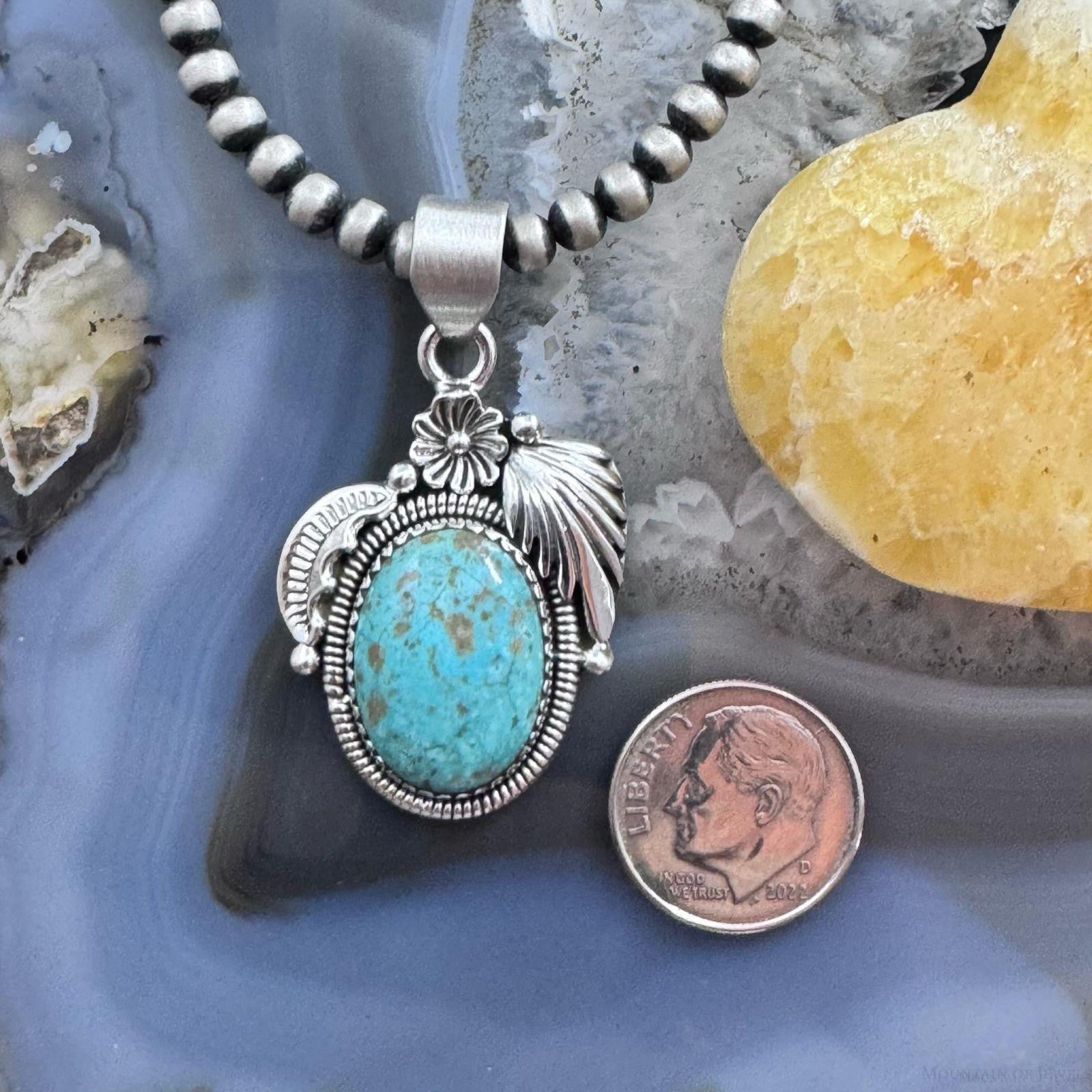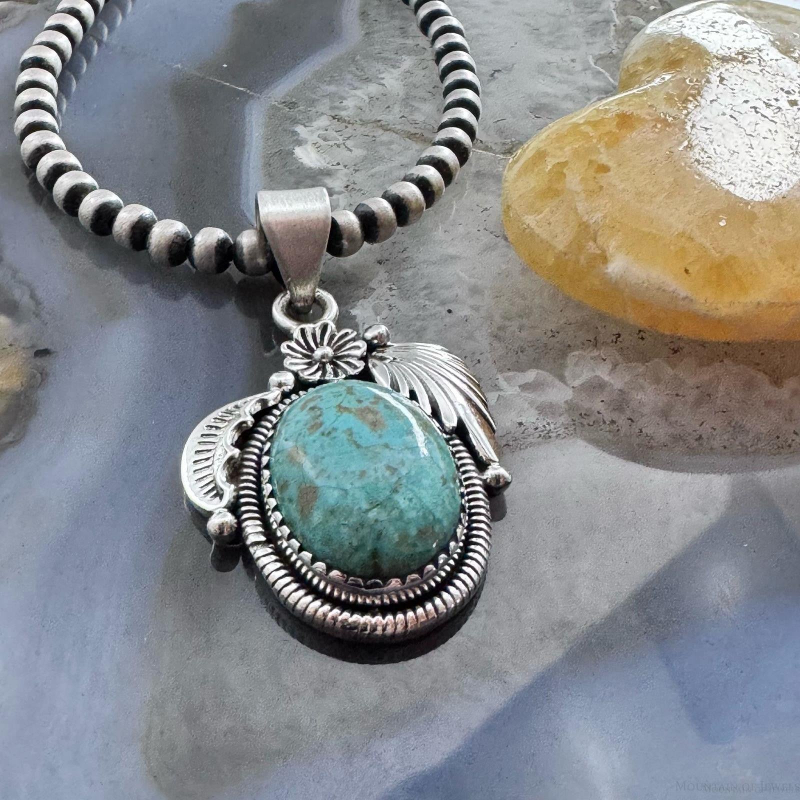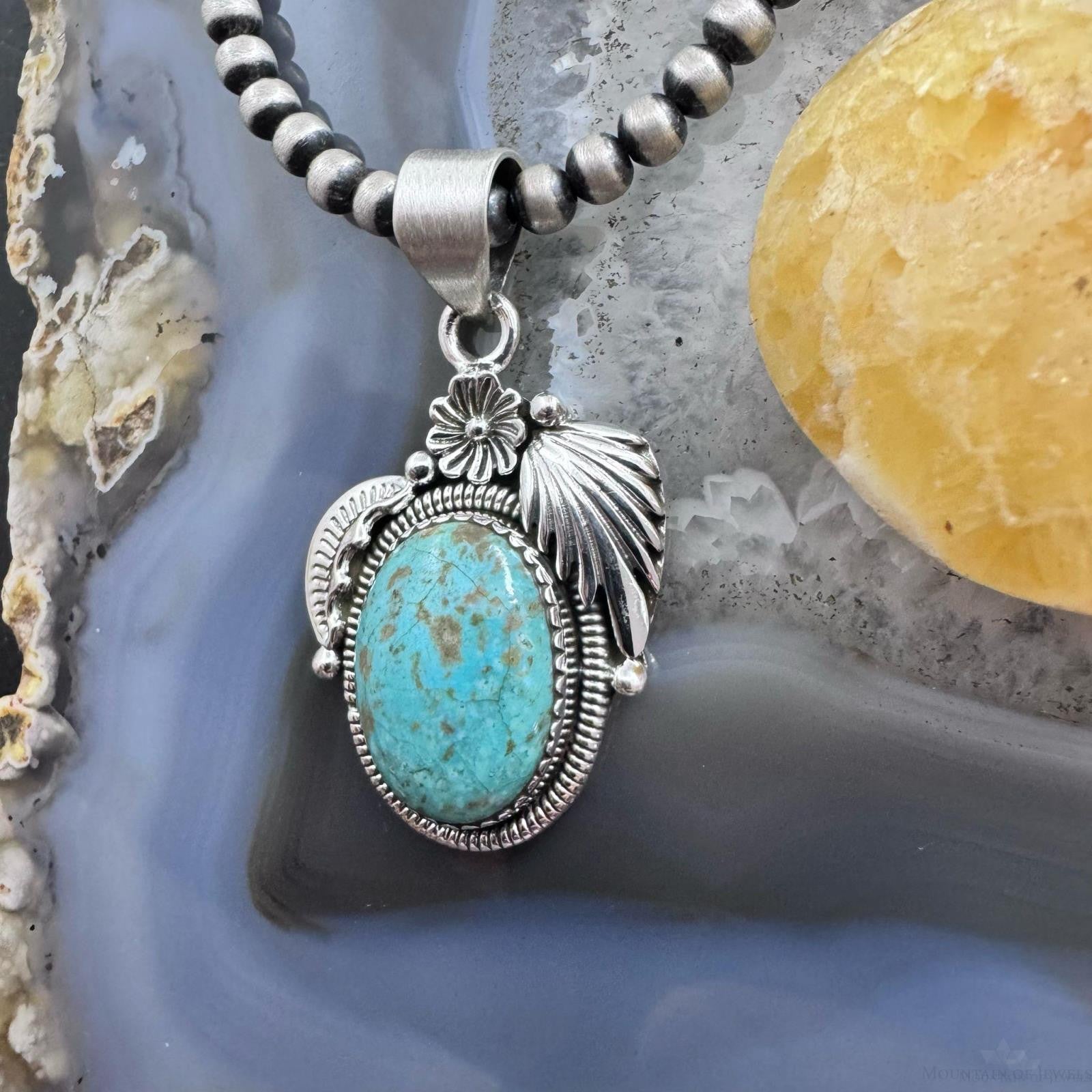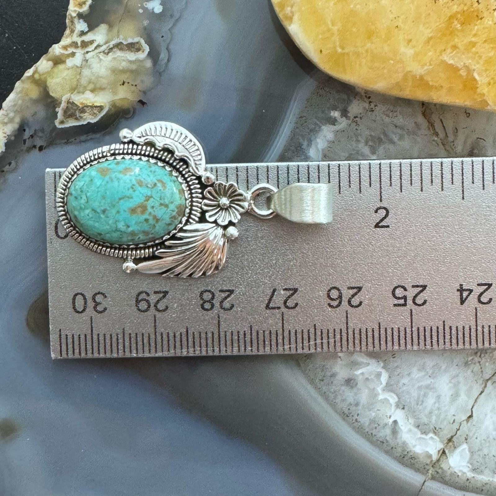 Sterling Silver Southwestern Style Oval Turquoise Leaves Decorated Pendant For Women