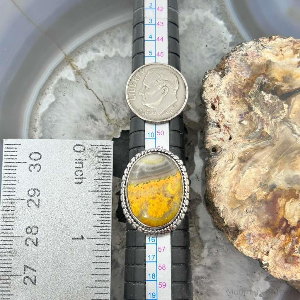 Sterling Silver Southwestern Style Oval Yellow Jasper Decorated Ring Size 6.75 For Women
