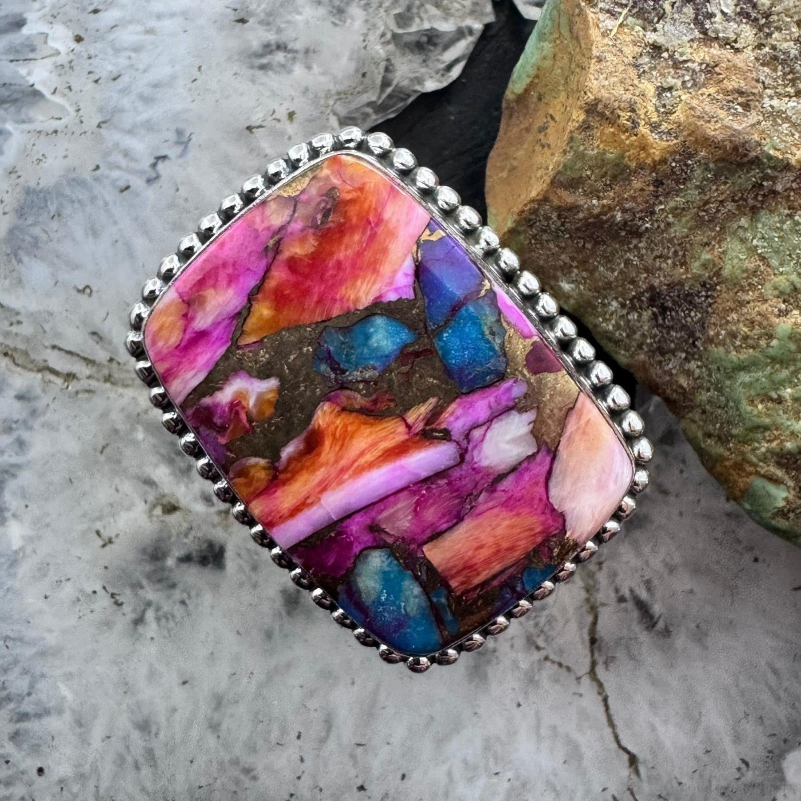 Sterling Silver Southwestern Style Rectangle Mohave Dahlia Ring Size 9.75 For Women