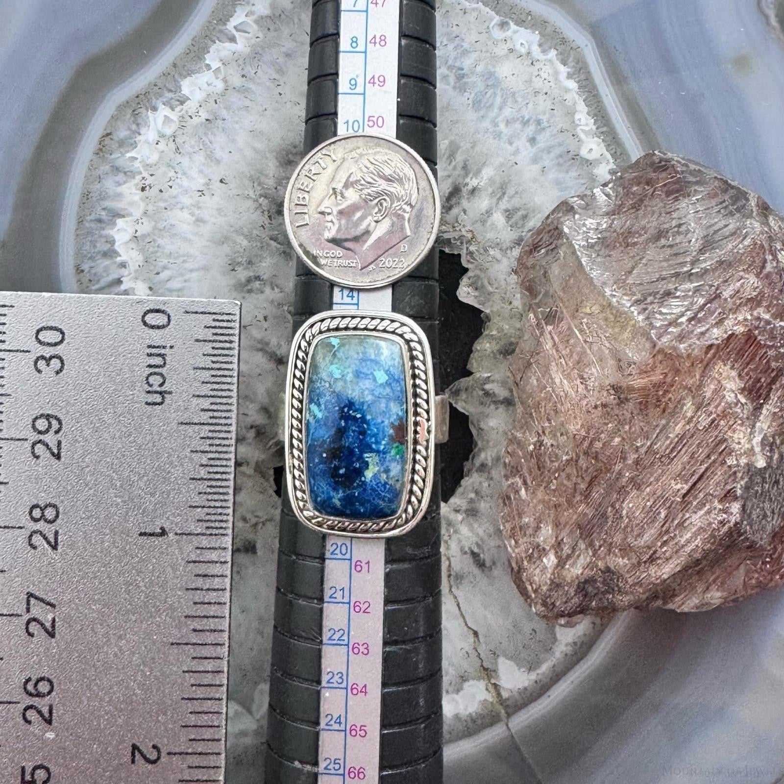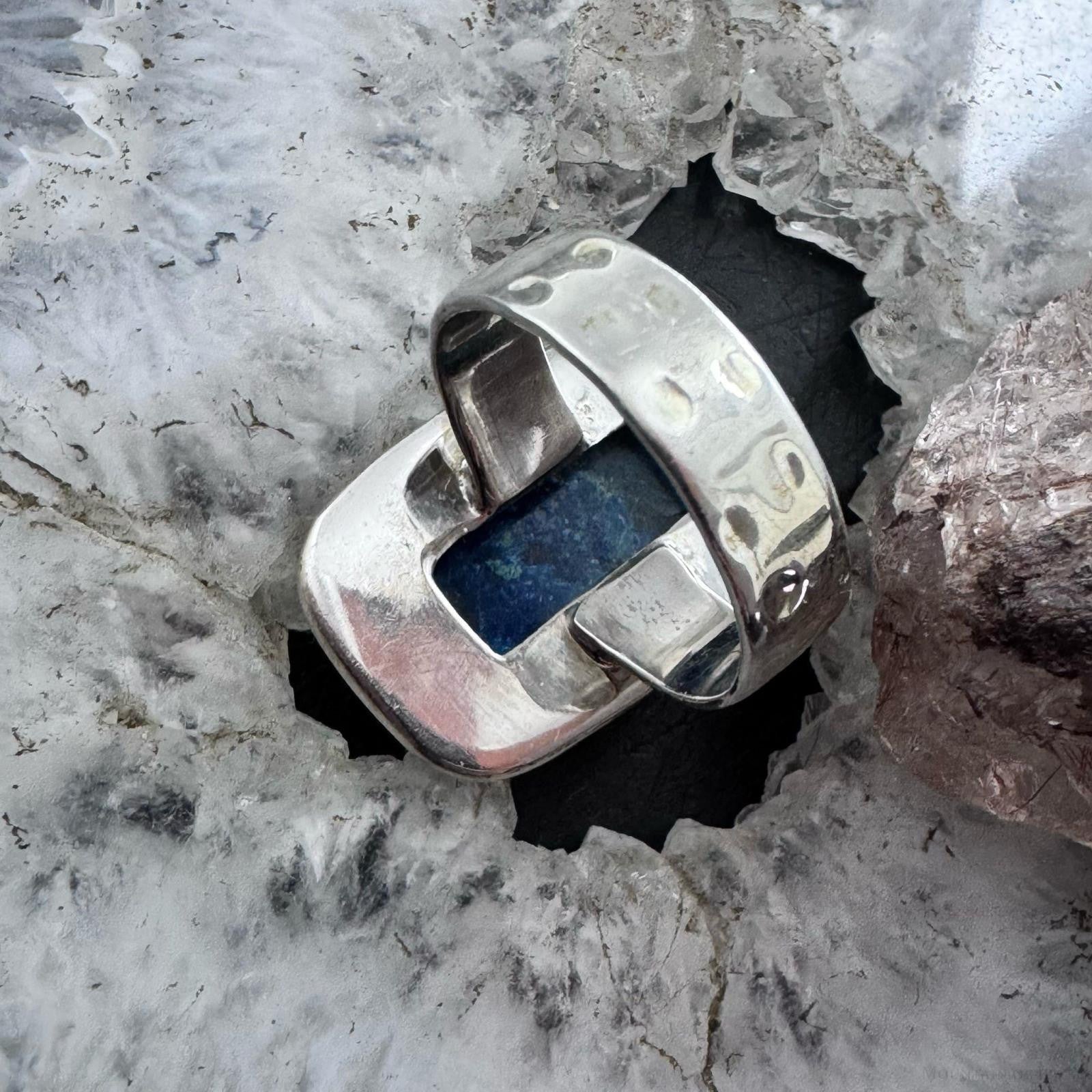 Sterling Silver Southwestern Style Rectangle Neon Apatite Decorated Ring Size 8 For Women