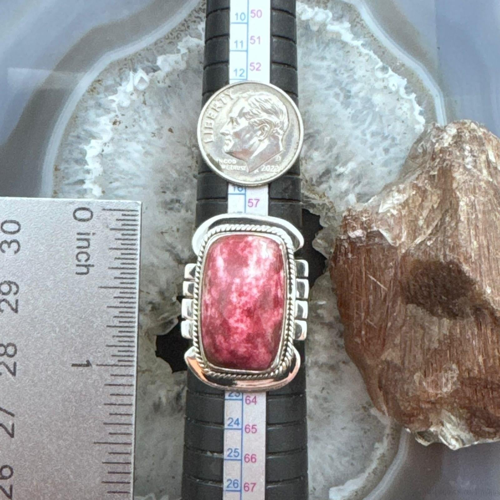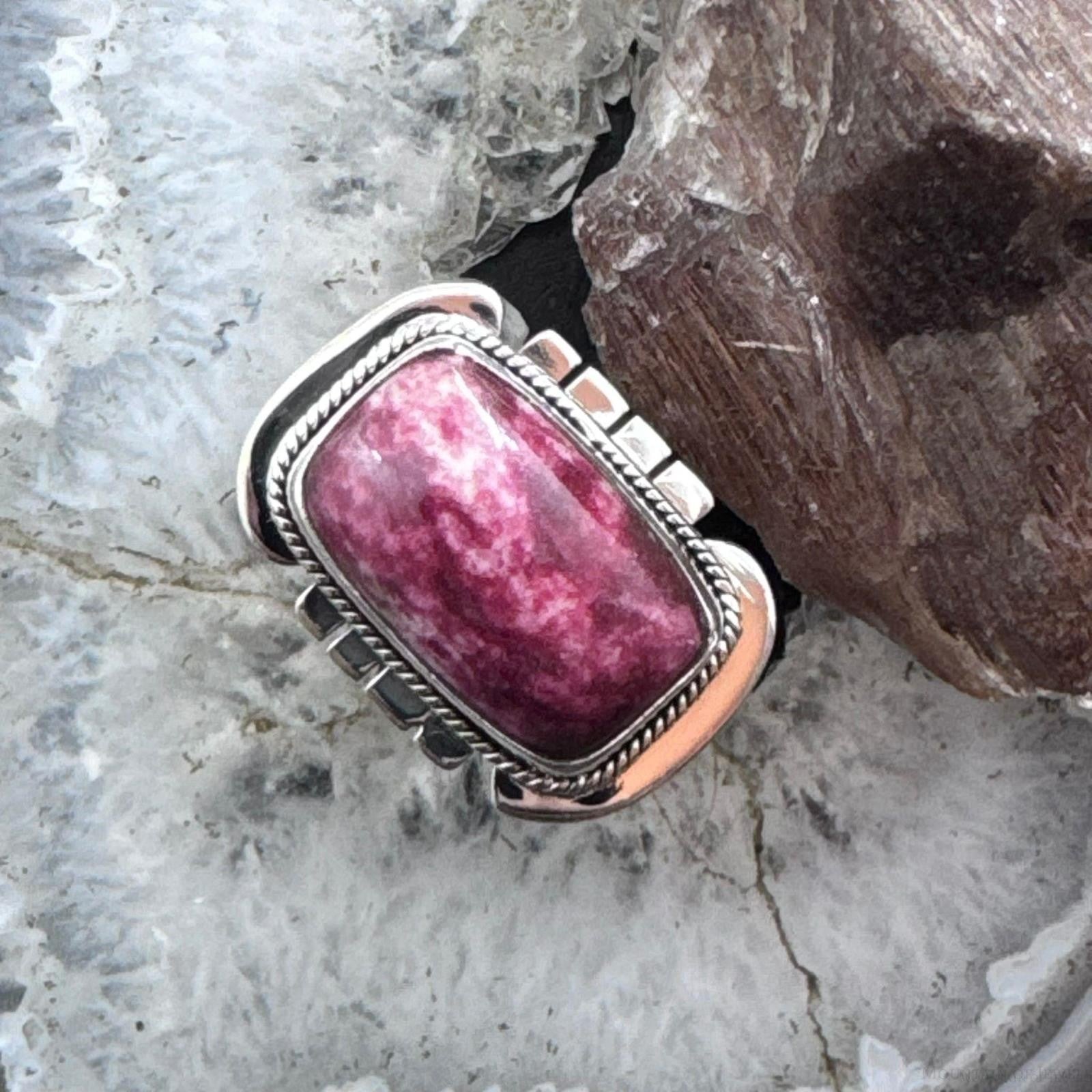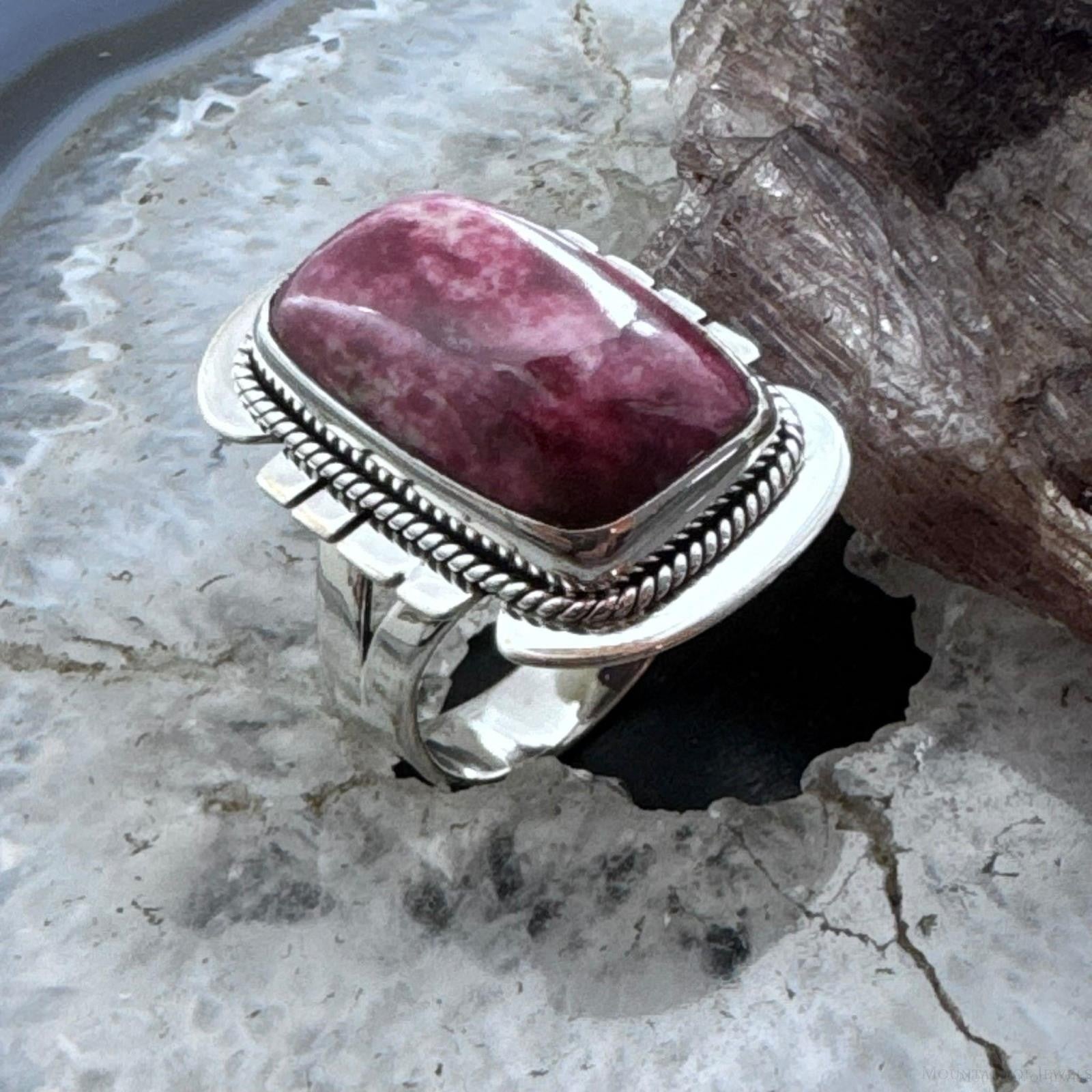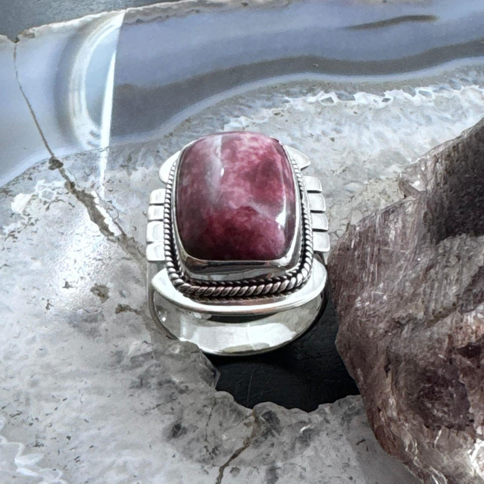 Sterling Silver Southwestern Style Rectangle Thulite Decorated Ring Size 9.5 For Women