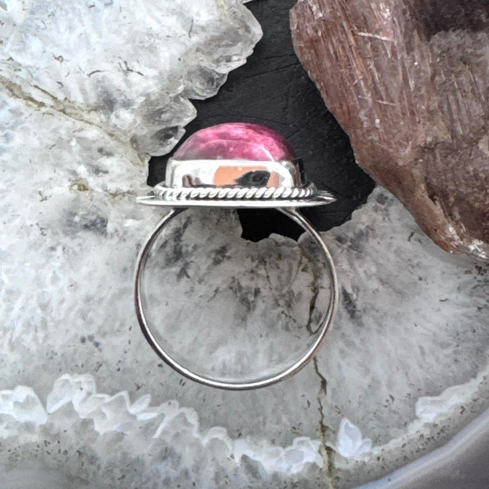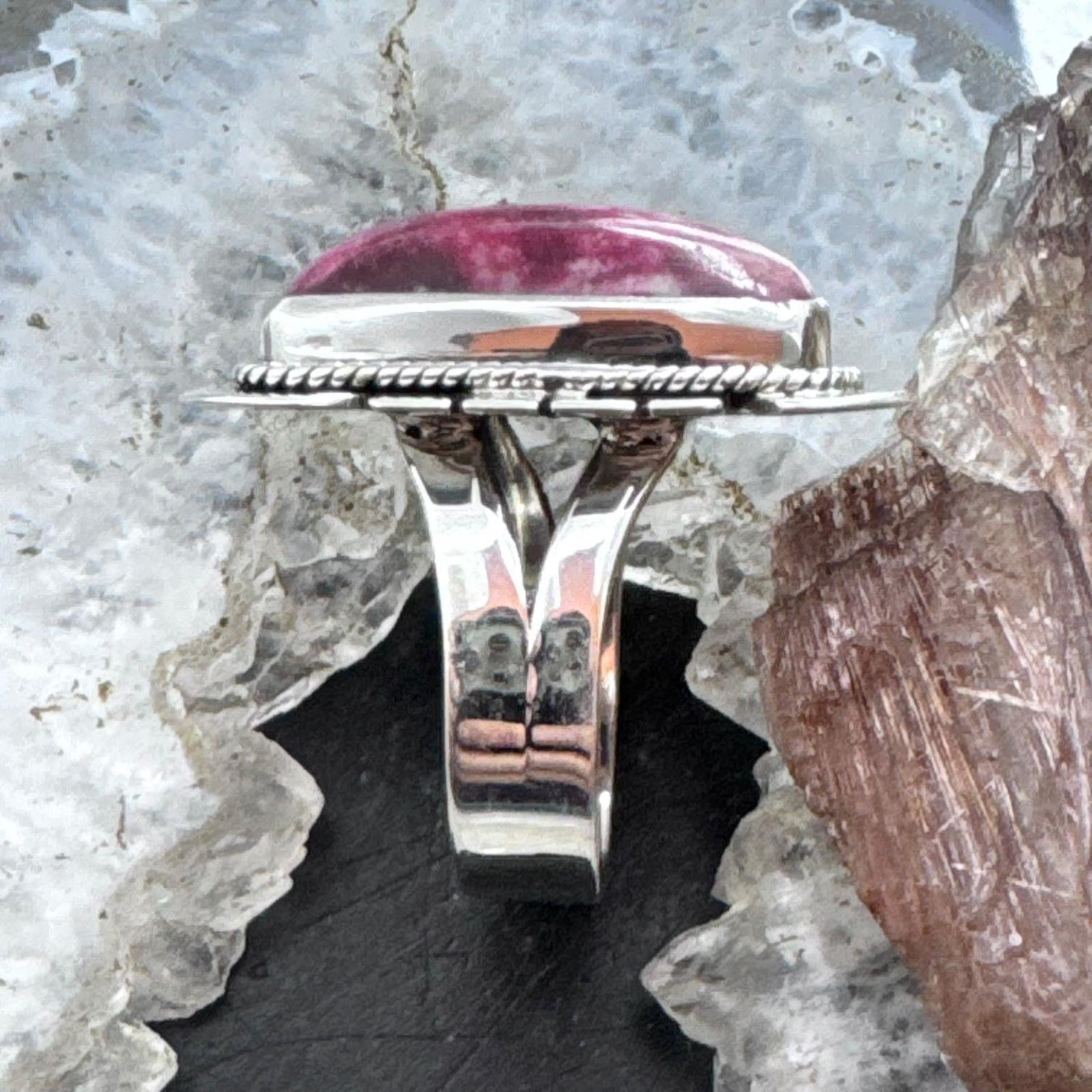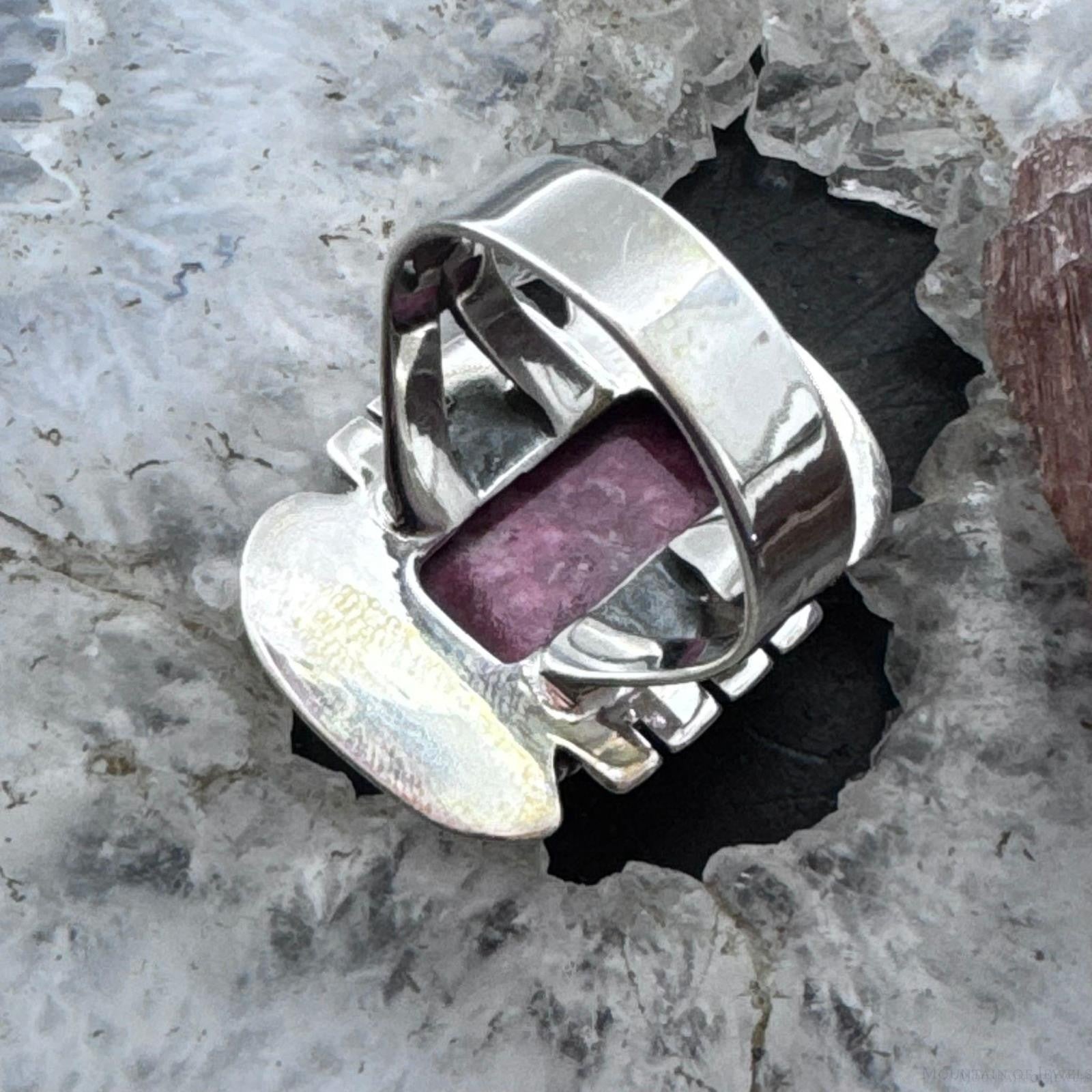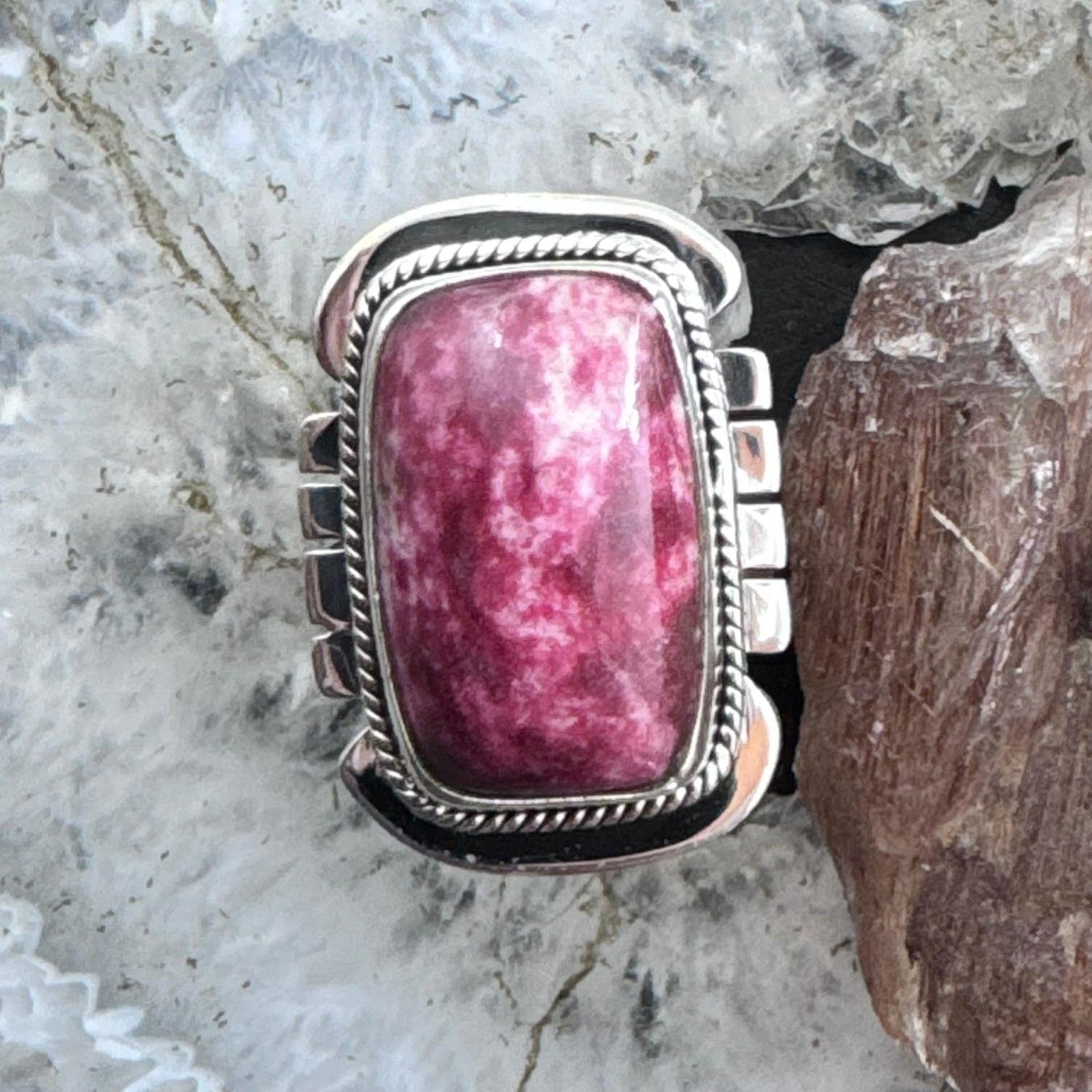 Sterling Silver Southwestern Style Rectangle Thulite Decorated Ring Size 9.5 For Women