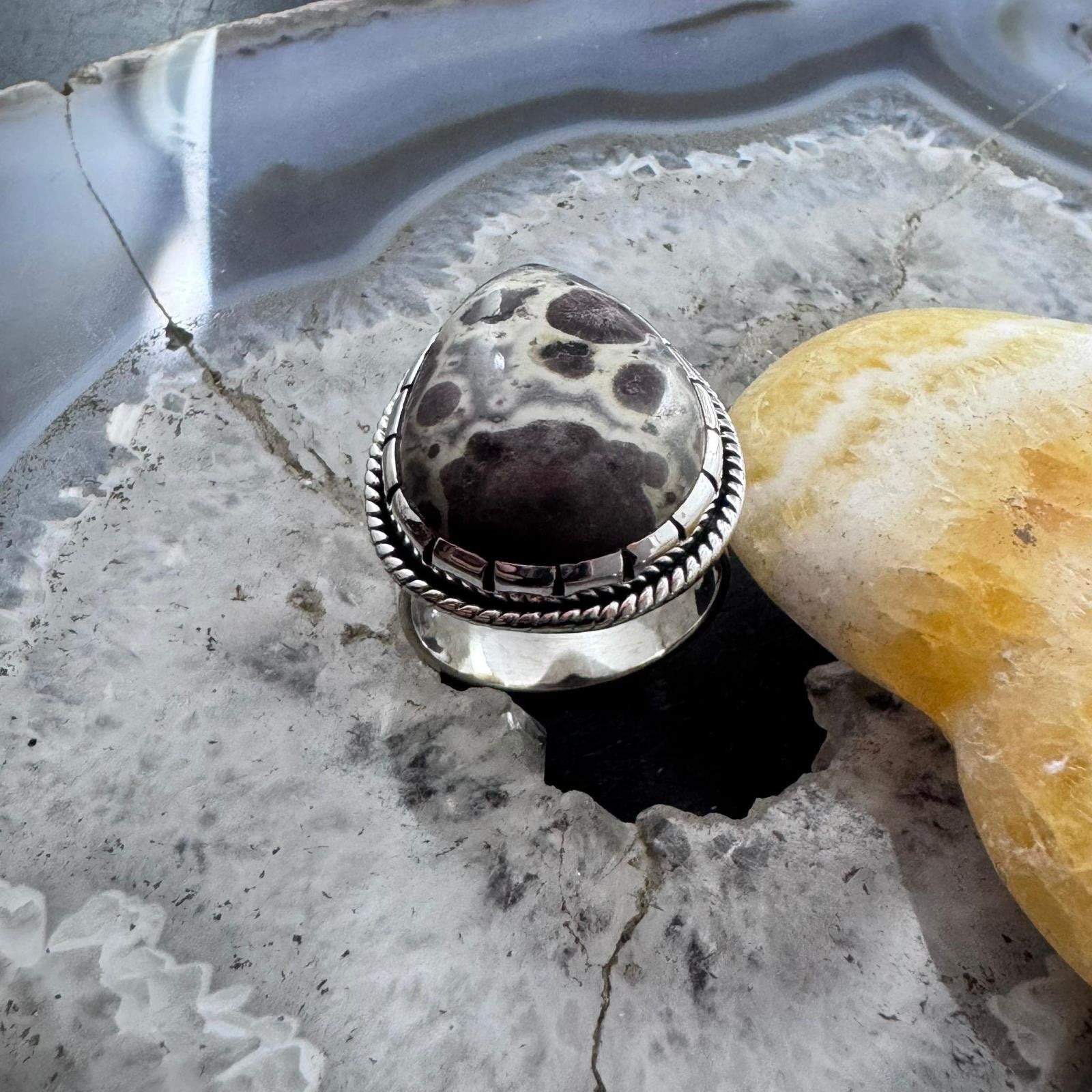 Sterling Silver Southwestern Style Teardrop Asteroid Jasper Ring Size 9.5 For Women