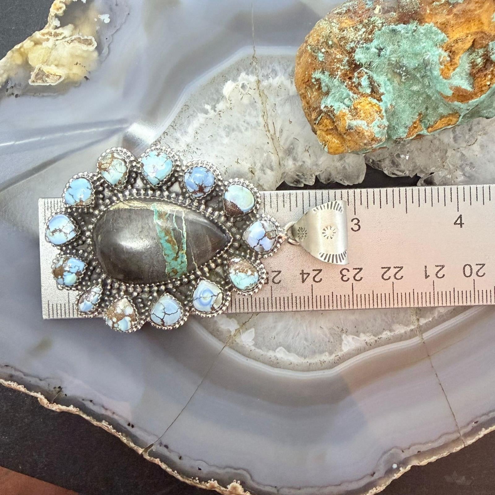 Sterling Silver Southwestern Style Teardrop Blackjack & Golden Hill Turquoise Pendant