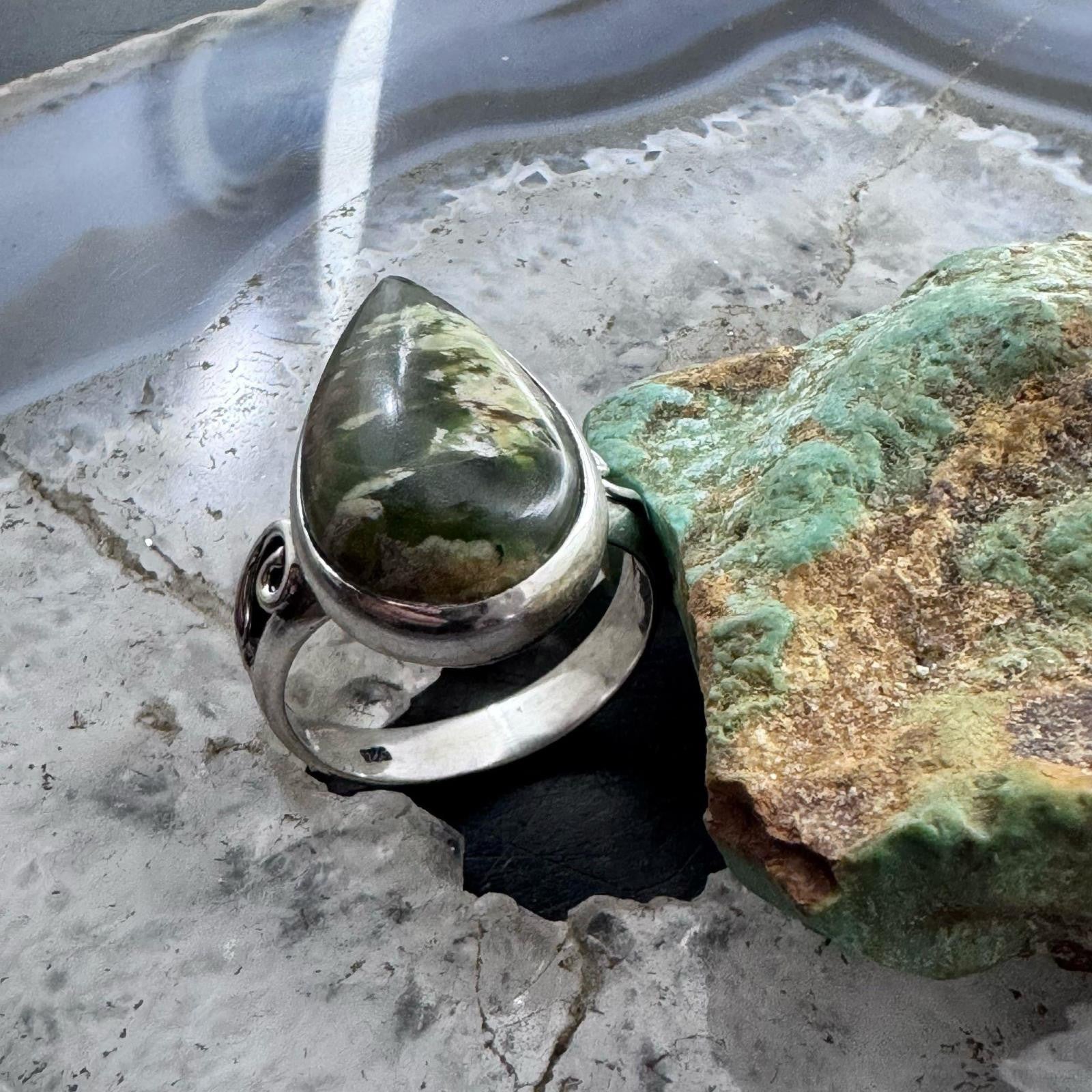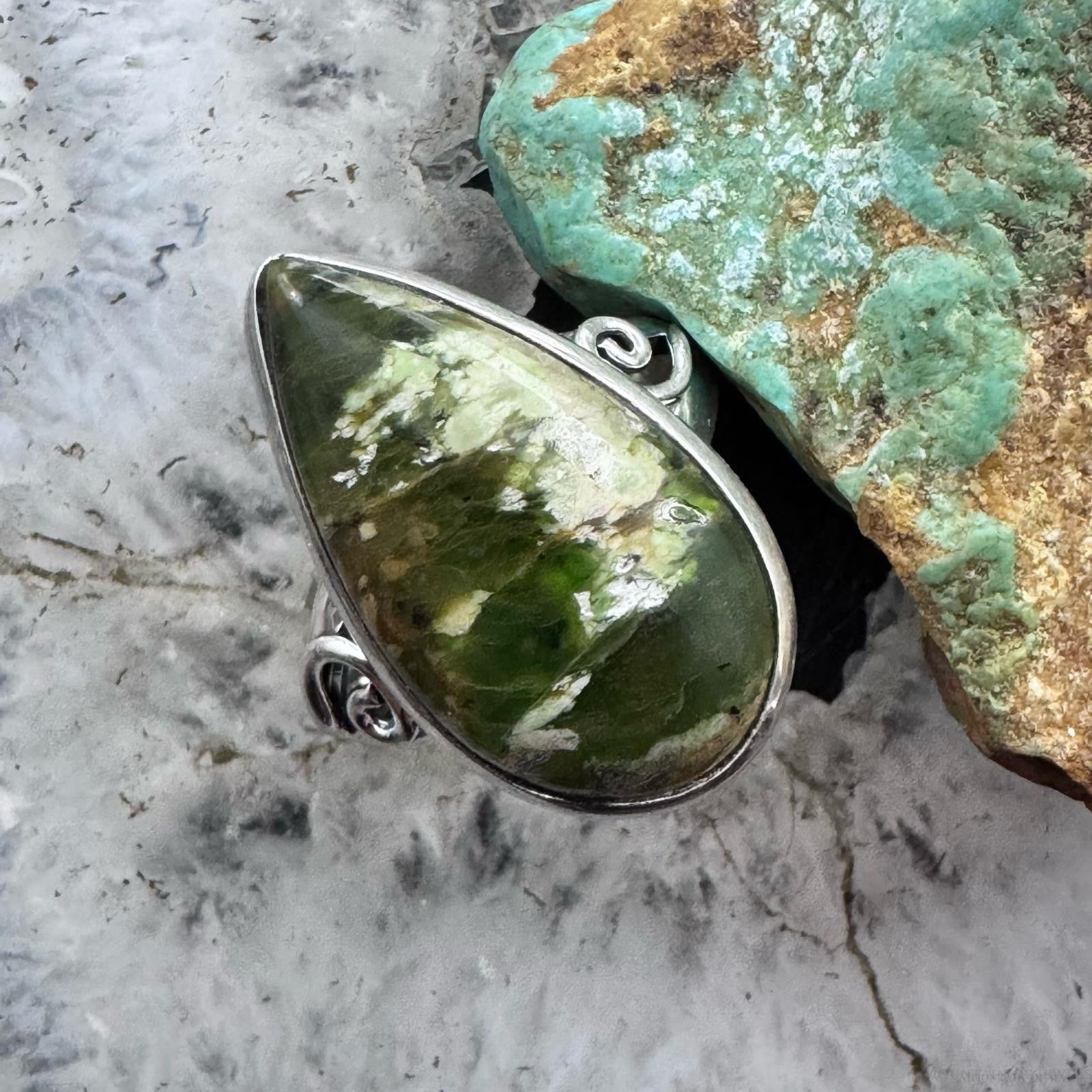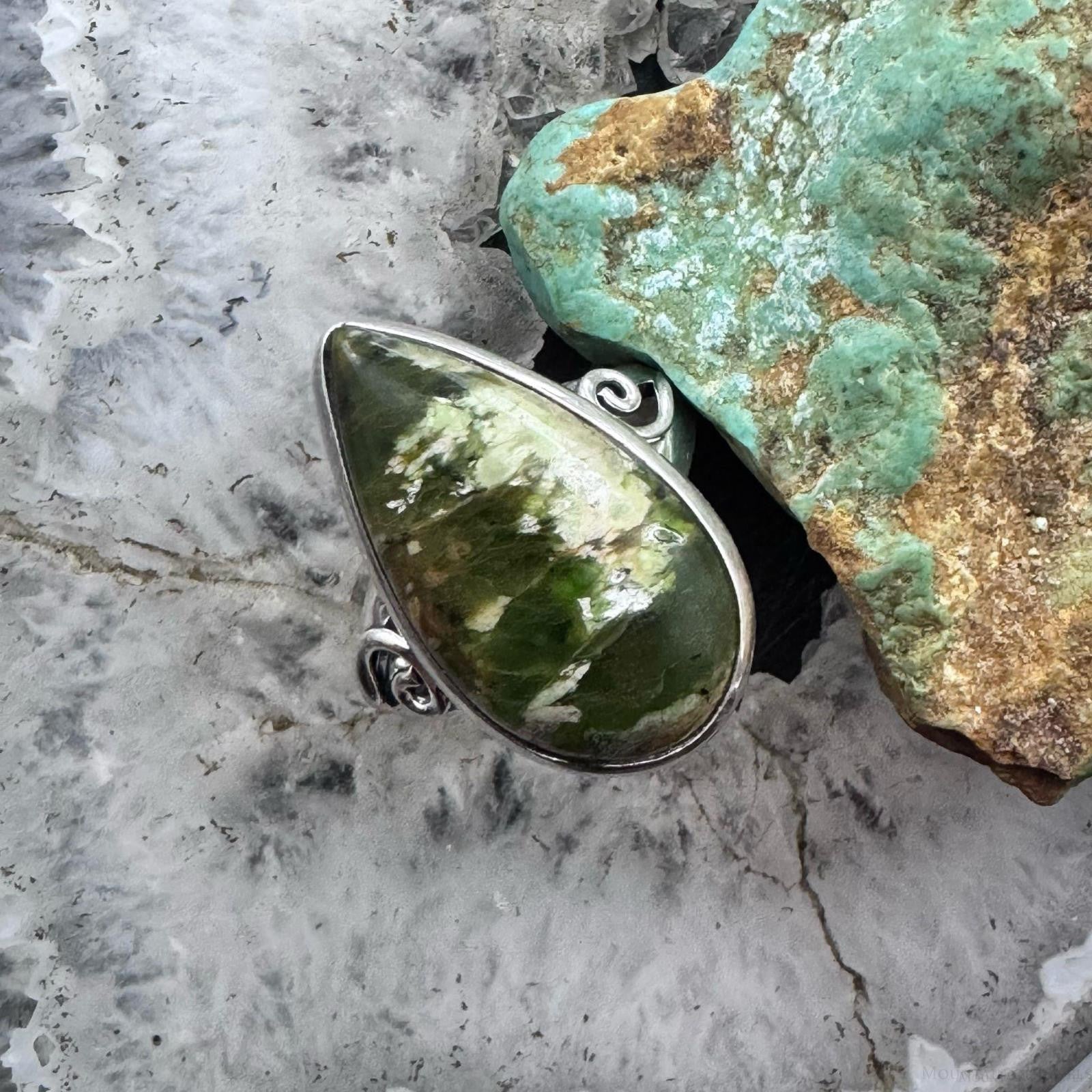 Sterling Silver Southwestern Style Teardrop Chrome Chalcedony Ring Size 9.75 For Women