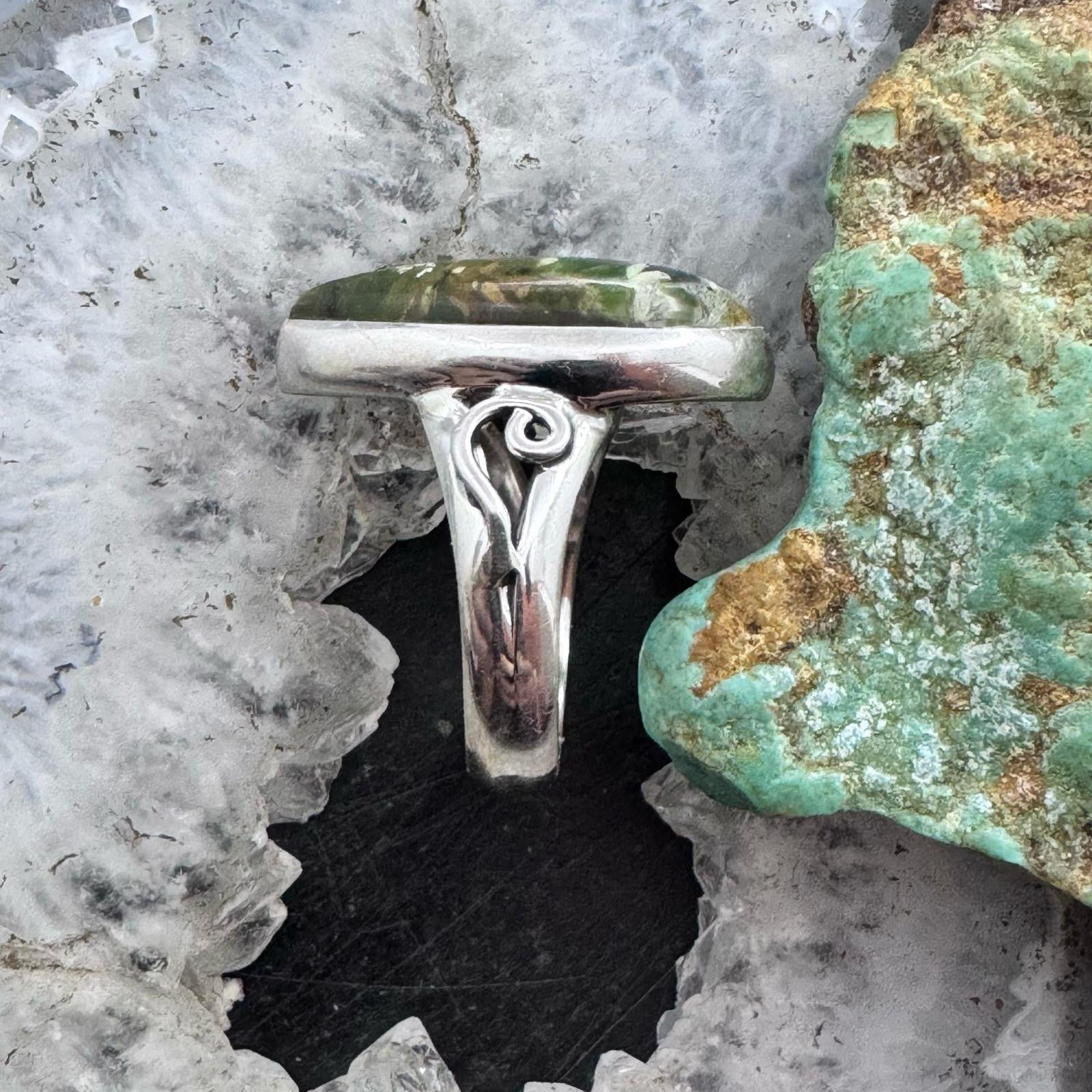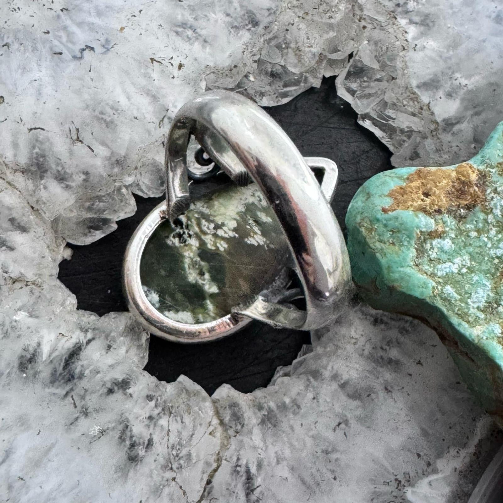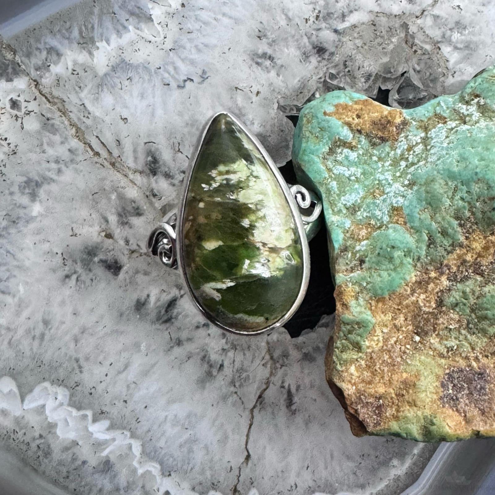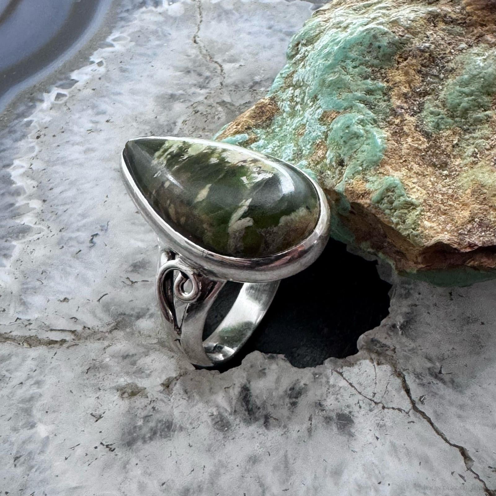 Sterling Silver Southwestern Style Teardrop Chrome Chalcedony Ring Size 9.75 For Women