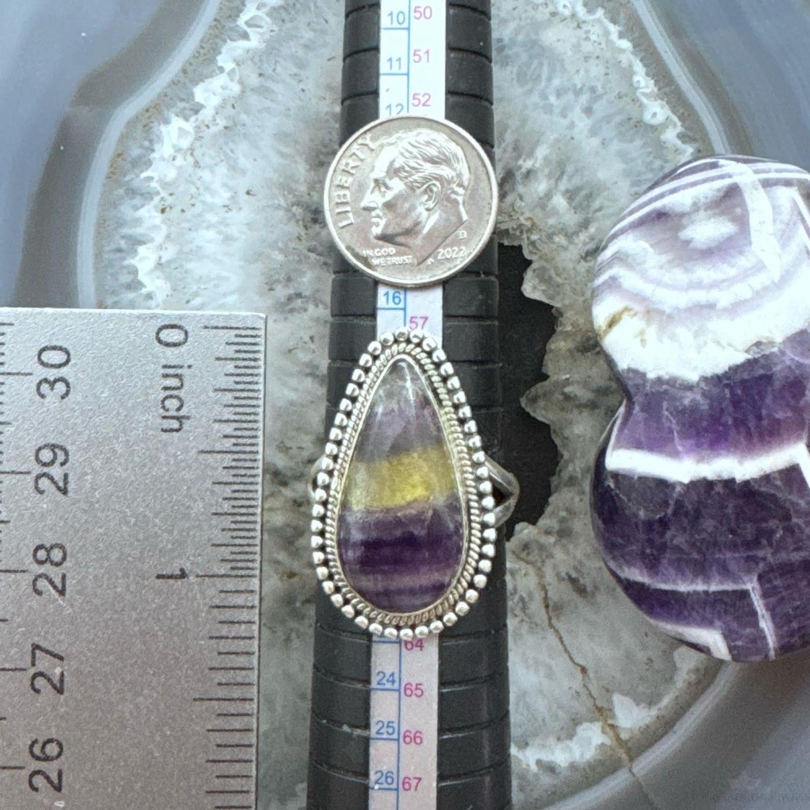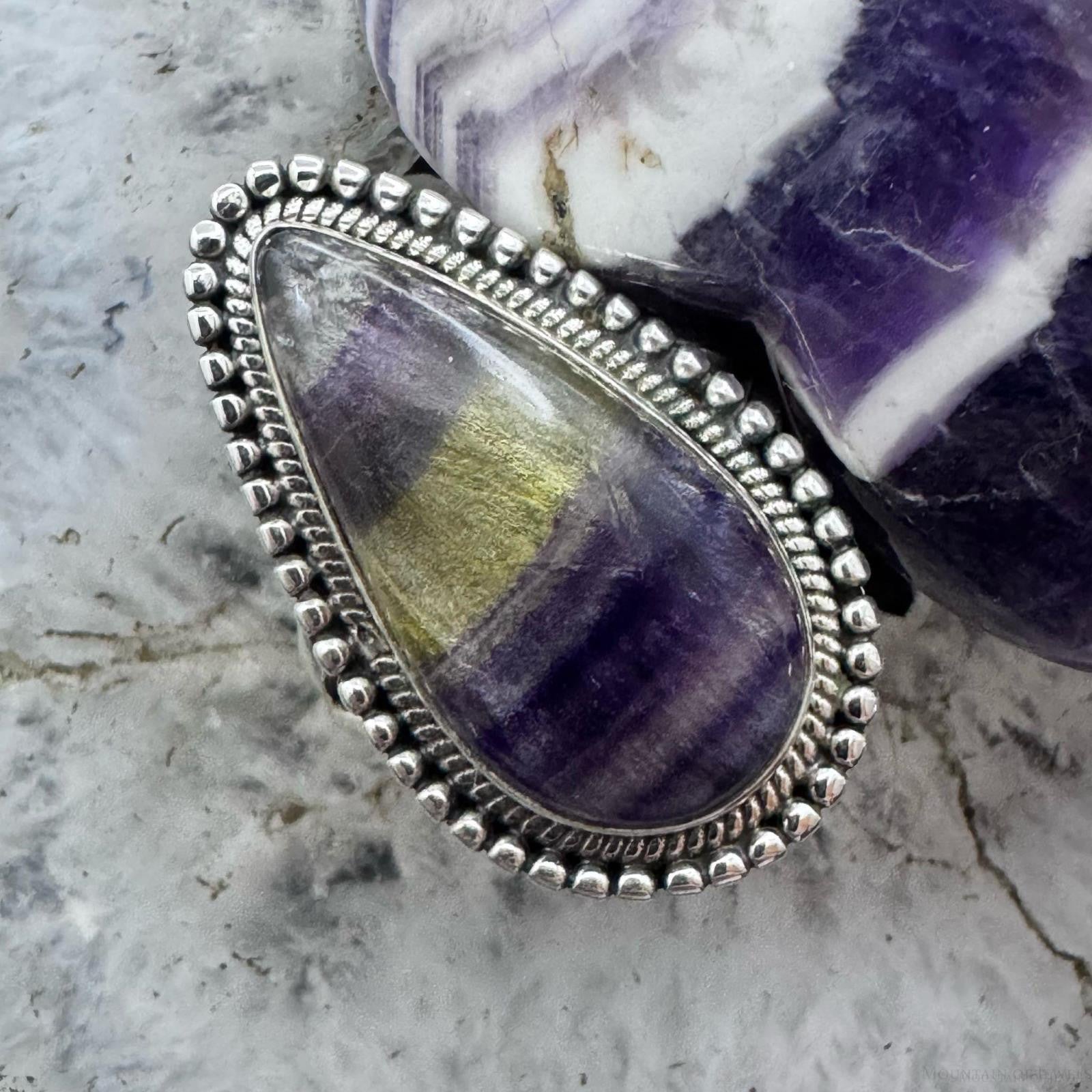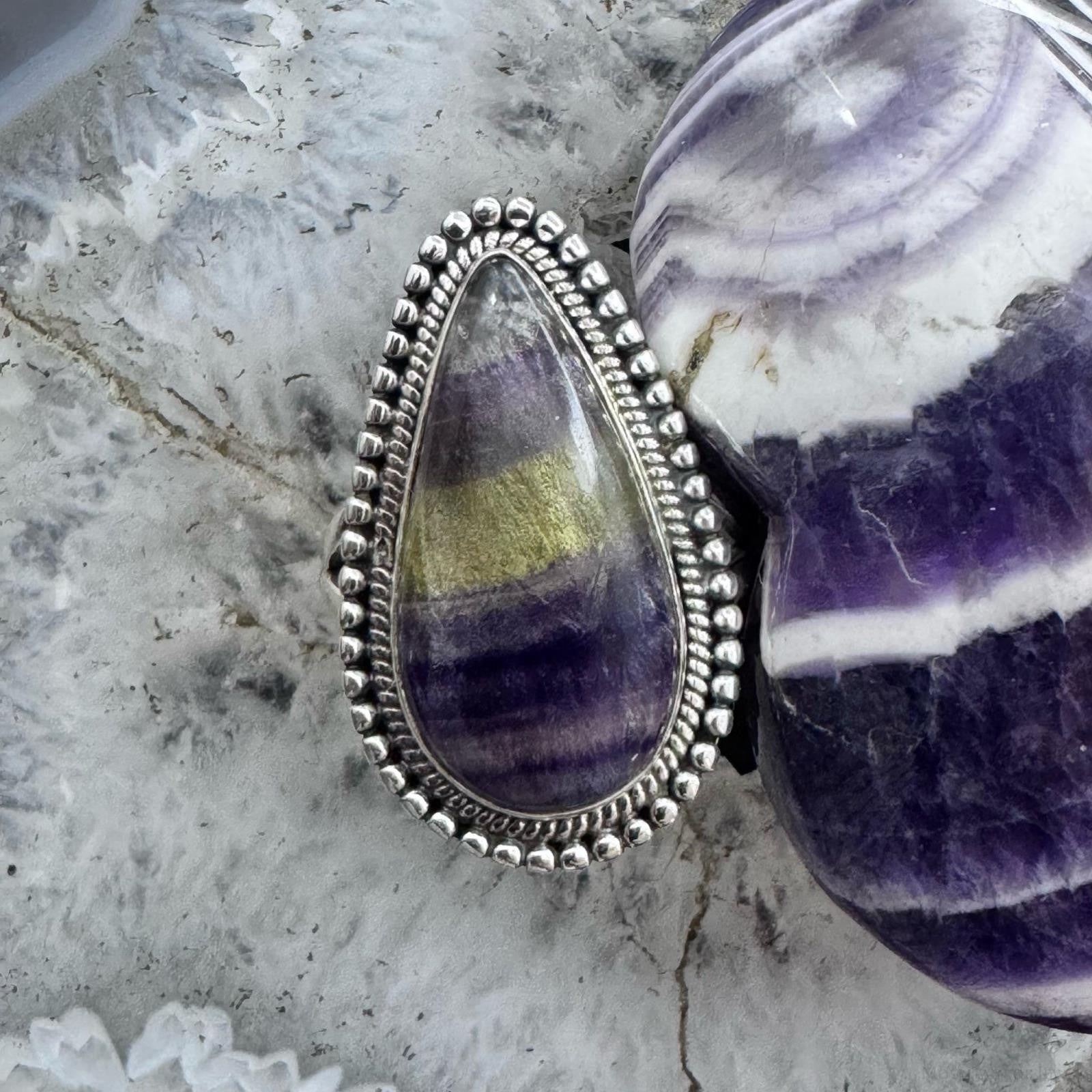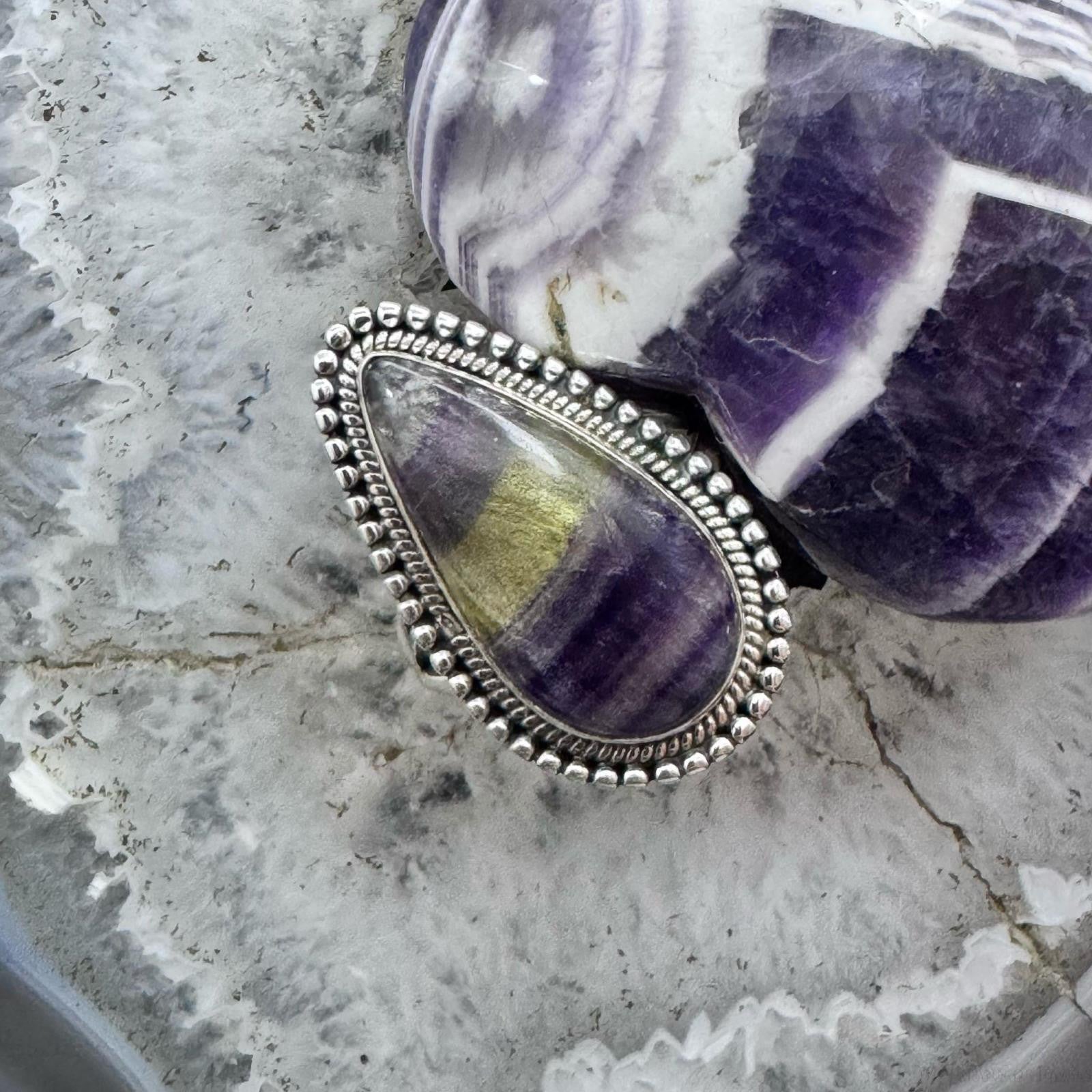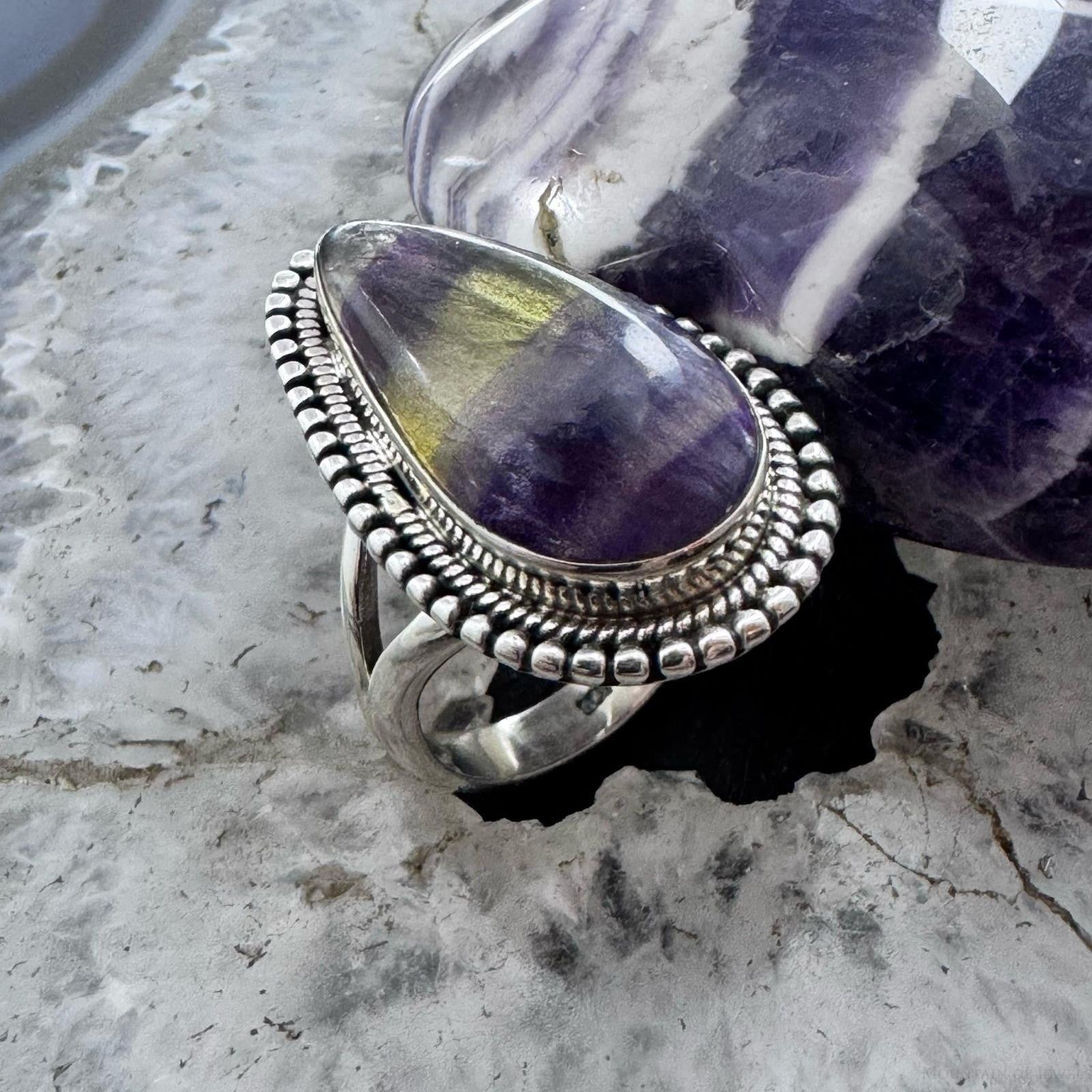 Sterling Silver Southwestern Style Teardrop Fluorite Crystal Ring Size 9.75 For Women